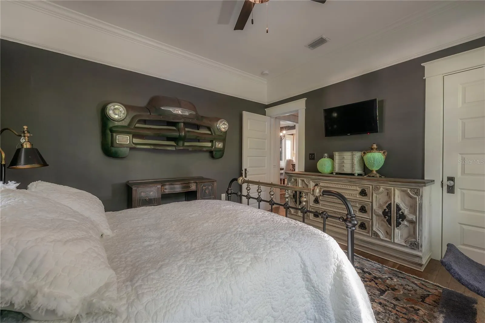- Ceiling Fans(s), Crown Molding, Open Floorplan, Thermostat, Walk-In Closet(s), Primary Bedroom Main Floor, Window Treatments, High Ceilings, Stone Counters, Chair Rail