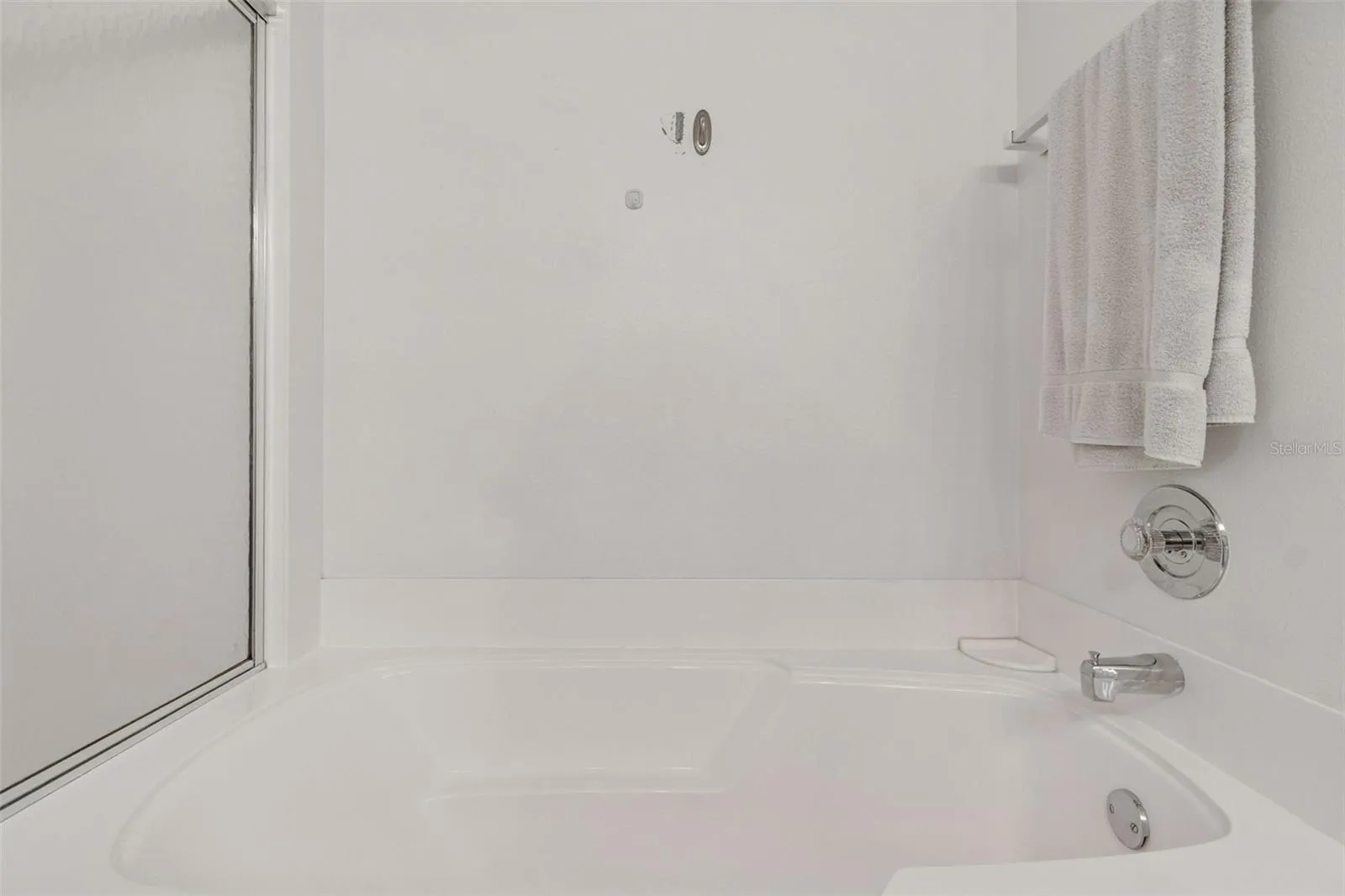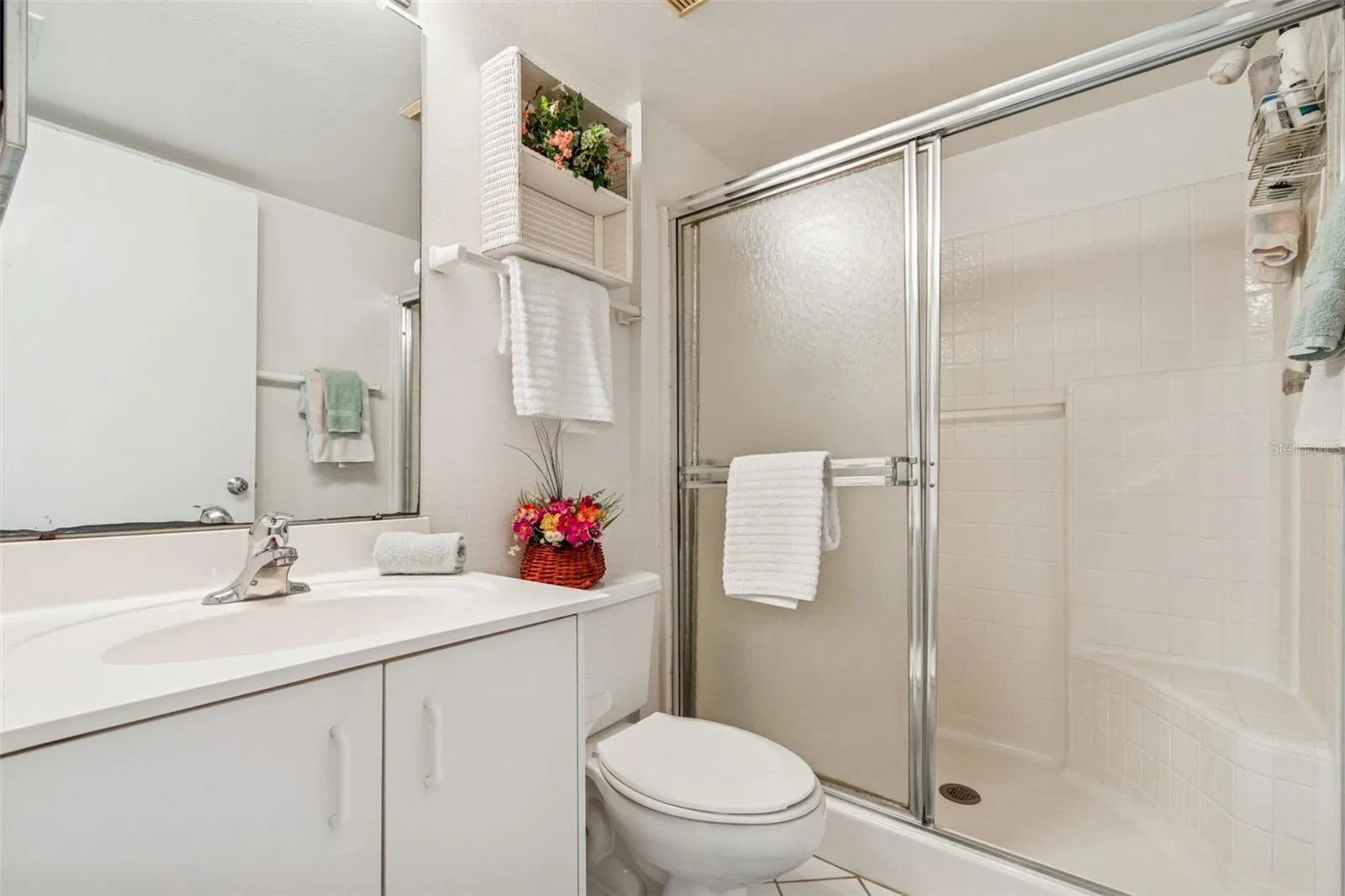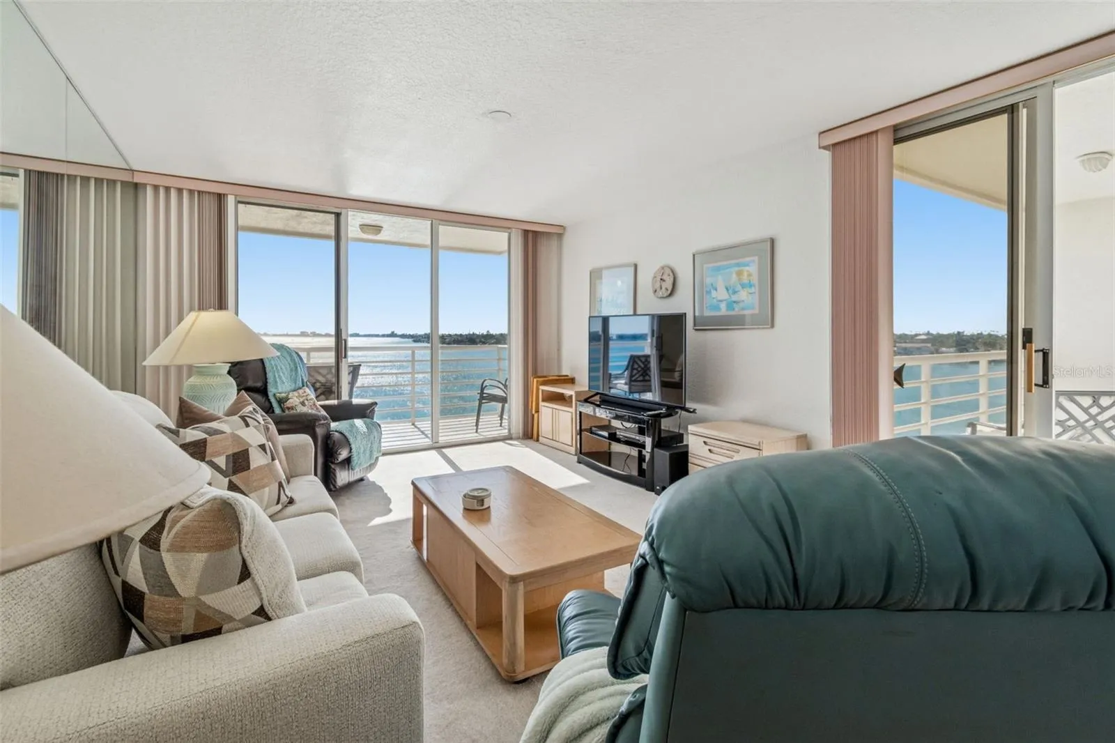 The open floor plan features a spacious primary suite with walk-out balcony showcasing water views, an ensuite bath with soaking tub and walk-in shower, and both a large walk-in closet and an additional closet. A private second bedroom and full guest bath provide comfort and flexibility. The kitchen offers ample storage and a convenient dinette area. This condo includes an assigned covered parking space in the garage, along with ample guest parking. Club Bahia offers a geothermal heated/cooled pool and hot tub – perfect for soaking in the Florida sunshine – workout room and community clubhouse.