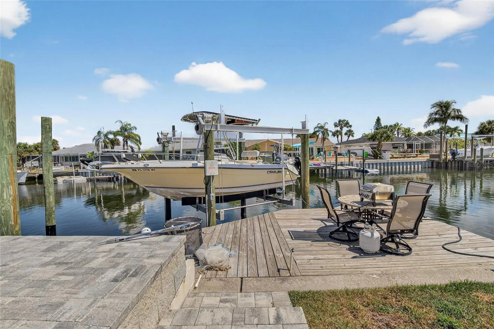 Live Where Every Day Feels Like a Vacation! This stunning waterfront home with private 12,000 lb. boat lift and dock (with water and electric) offers direct bay access right from your backyard—the ultimate setting for boating, fishing, and sunset cruises. Completely remodeled in 2024, this coastal retreat combines luxury, comfort, and peace of mind. Inside, you’ll find elegant ceramic tile flooring throughout, upgraded lighting, and modern finishes. The chef’s kitchen is a true showpiece, featuring solid wood cabinetry, granite countertops, high-end appliances, and a spacious walk-in pantry. The owner’s suite is designed for relaxation, with sliding doors leading to the private pool, a spa-like en suite bath, and a walk-in closet. Every bathroom has been beautifully updated, and all doors and trim replaced for a fresh, contemporary feel. Outdoors, enjoy your sparkling private pool with new pavers and French drain, or entertain on the expansive deck overlooking the water. The garage adds to the appeal with new epoxy flooring for style, durability, and easy maintenance. Ideally located just minutes from waterfront dining, shopping, nature parks, the Manatee Center, and Gulf beaches, this home delivers the very best of Florida waterfront living.
