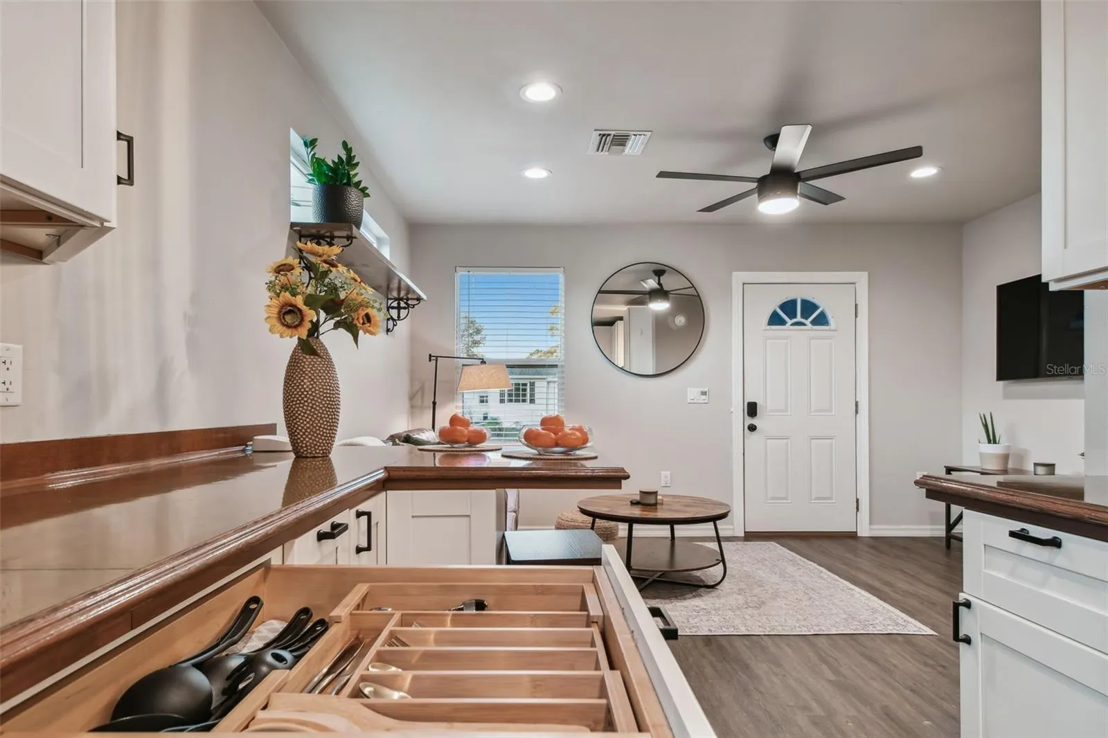 - Ceiling Fans(s), Open Floorplan, Window Treatments, Solid Surface Counters