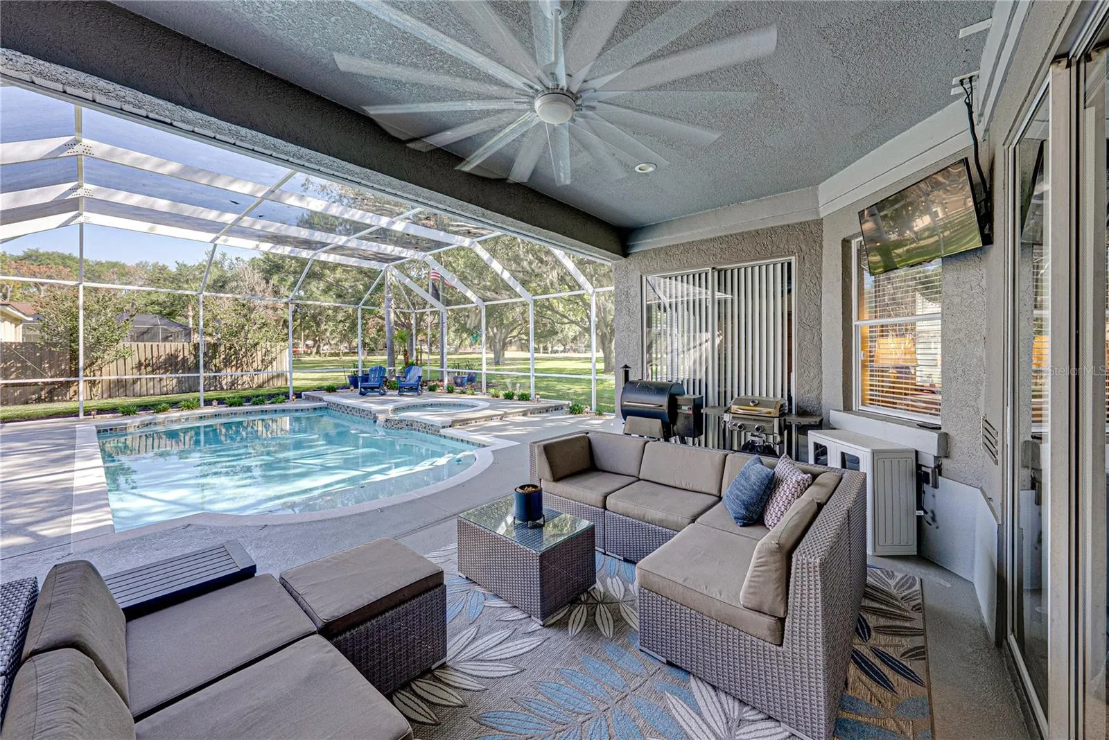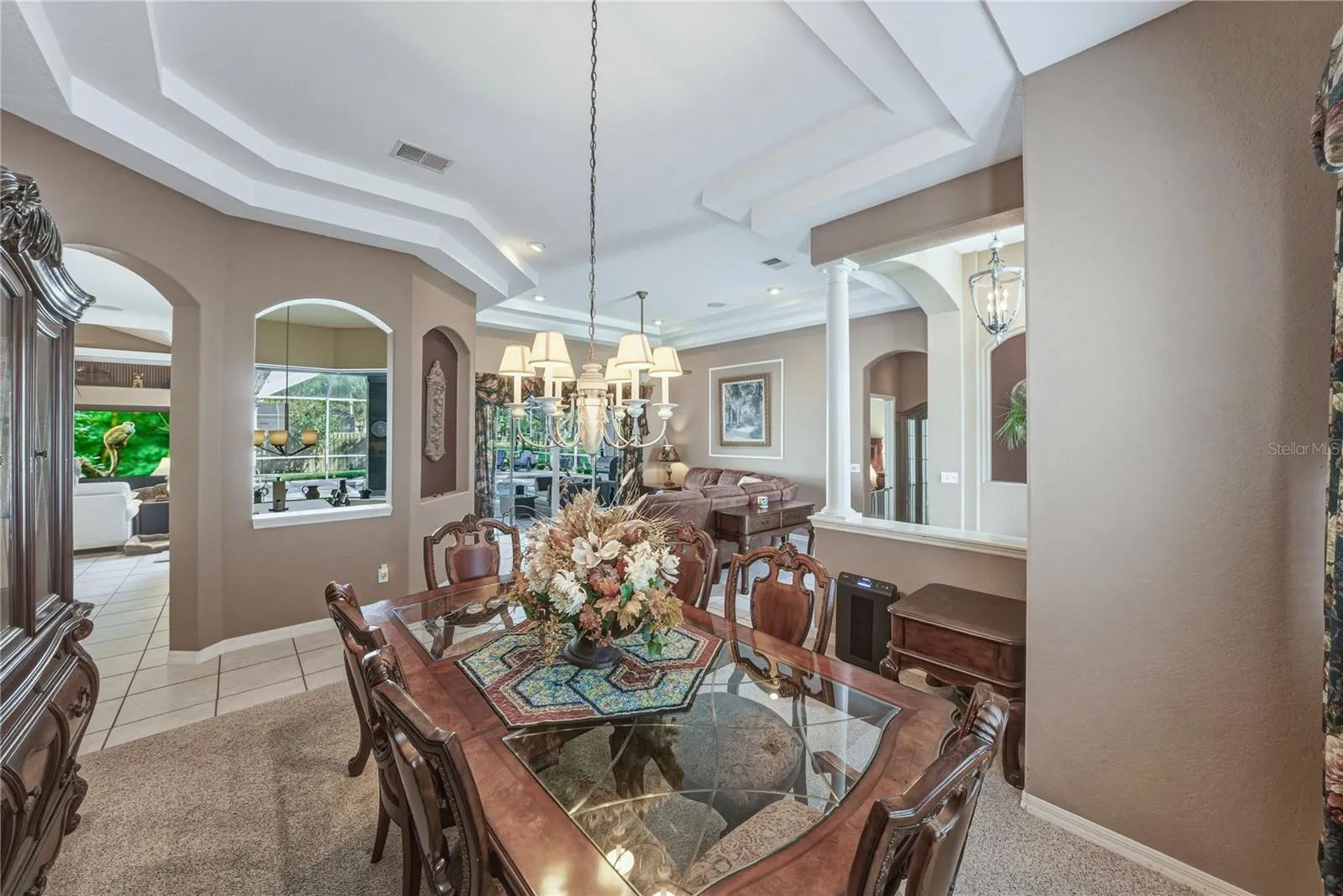 Tucked away in the highly sought-after Sutton Woods enclave of Walden Lake, this exceptional five-bedroom, three-bathroom pool home offers the perfect blend of refined comfort, thoughtful design, and timeless appeal—all set within one of Plant City’s most established and desirable communities. Positioned on an oversized corner lot, the property immediately impresses with its stately presence, expansive three-car garage, and beautifully maintained landscaping that frames the home with a welcoming sense of arrival. Step inside to discover a residence that has been meticulously cared for, where every space feels both intentional and inviting. The formal living and dining rooms set an elegant tone, highlighted by tray ceilings that add architectural interest and a sense of openness. Just beyond, the heart of the home unfolds into a stunning kitchen and family room combination designed for both everyday living and effortless entertaining. The kitchen is as functional as it is stylish, featuring sleek stainless steel appliances, rich navy cabinetry, gleaming stone countertops, and subtle under-cabinet lighting that enhances both ambiance and usability. A convenient breakfast bar provides the perfect spot for casual meals or morning coffee, while a generously sized closet pantry ensures ample storage. Flowing seamlessly from the kitchen, the family room offers a warm, elevated atmosphere with a vaulted tray ceiling, a striking slatted wood feature wall, and a statement propeller-style ceiling fan that anchors the space. Sliding glass doors line the back wall, inviting natural light to pour in while providing uninterrupted views of the outdoor living area. Retreat to the spacious primary suite, a private haven designed with comfort in mind. Tray ceilings continue here, complementing a cozy sitting area ideal for quiet mornings or unwinding at the end of the day. Dual walk-in closets provide abundant storage, while sliding glass doors offer direct access to the pool deck. The spa-inspired en suite bath is a true sanctuary, complete with dual vanities, a walk-in shower, a relaxing garden soaking tub, and convenient pool access. Four additional bedrooms and two well-appointed bathrooms provide flexibility for family, guests, or even a dedicated home office or fitness space, ensuring everyone has room to live comfortably. Step outside to your own private oasis, where a spacious covered lanai overlooks the screened-in pool, creating the perfect backdrop for year-round enjoyment. Whether hosting gatherings or enjoying a quiet evening swim, this outdoor space is designed to embrace Florida living at its finest. Living in Walden Lake means more than just owning a beautiful home—it’s about enjoying a vibrant, established community known for its scenic surroundings, walking trails, and convenient access to local shopping, dining, and everyday amenities. This is a rare opportunity to own a home that truly checks every box in one of Plant City’s most beloved neighborhoods. As part of a thoughtful ownership experience, the seller is offering a home warranty through Fidelity National, providing an added layer of protection and peace of mind.