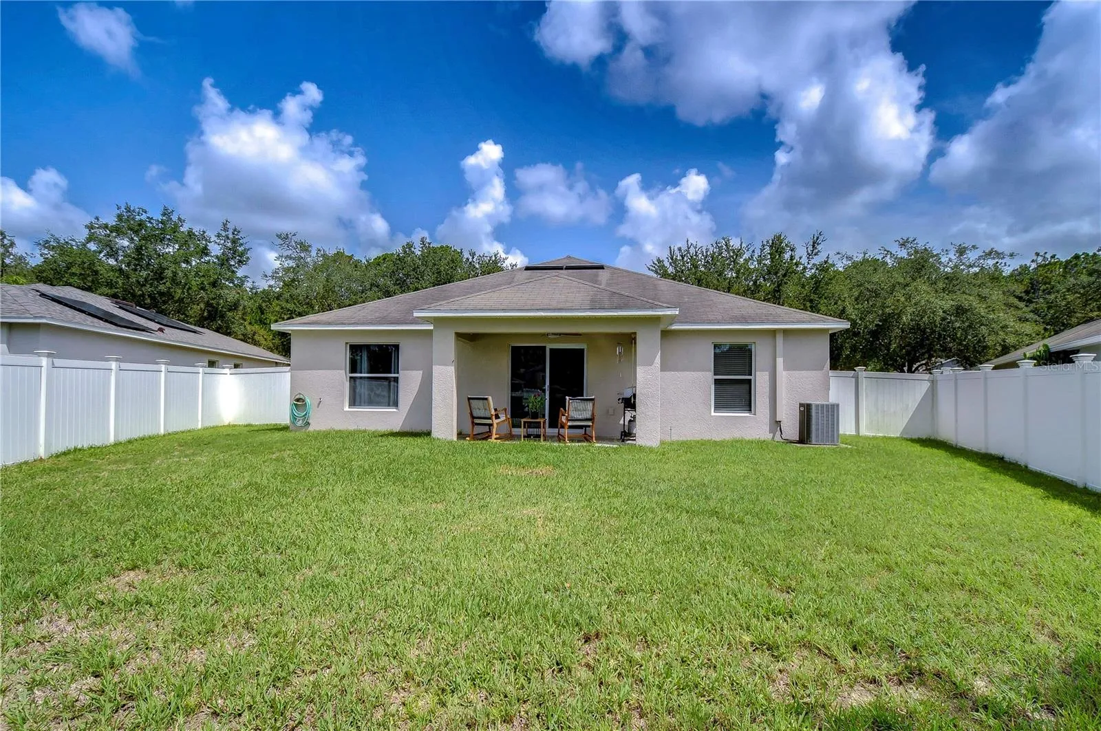 Welcome to this charming 4 bedroom, 2 bath home nestled in the gated community of the Verandahs. Perfectly situated, this residence boasts a delightful backyard ideal for entertaining, complete with a picturesque pond view. Inside, discover a well-designed split floor plan featuring spacious rooms throughout. The master suite offers an inviting en-suite bathroom with a soaking tub and walk-in shower, providing a private retreat within your own home. The kitchen includes a convenient breakfast bar and opens seamlessly to the great room, perfect for family gatherings and enjoying the serene water view. The home provides peace of mind and access to excellent amenities. Vaulted ceilings and an open floor plan enhance the spacious feel and appeal of the interior. The property is fully fenced with a vinyl fence, ensuring privacy and security. A wonderful opportunity for first-time buyers and families looking to establish themselves in a cozy neighborhood setting. Conveniently located to everyday shopping, medical facilities and so much more. Easy access to the Suncoast Parkway to commute to Tampa International Airport – downtown Tampa – minutes to the sandy white beaches of Florida’s gulf coast. Don’t miss out—schedule a visit today and envision yourself living in this inviting and comfortable residence on a tranquil street.