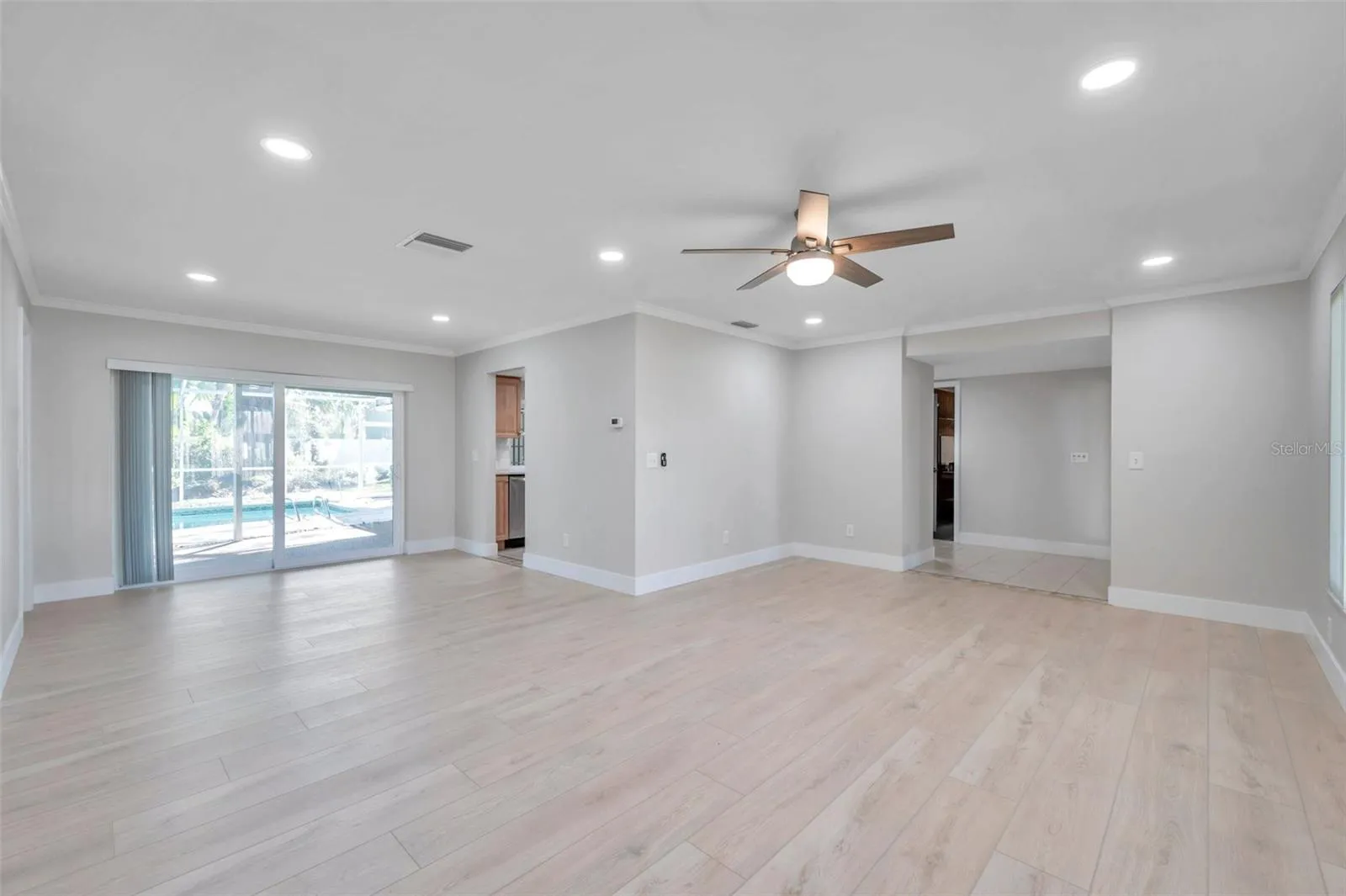 4 sets of sliding glass doors leading to a screened pool and lanai with electric Jenn-Air grill — ideal for entertaining