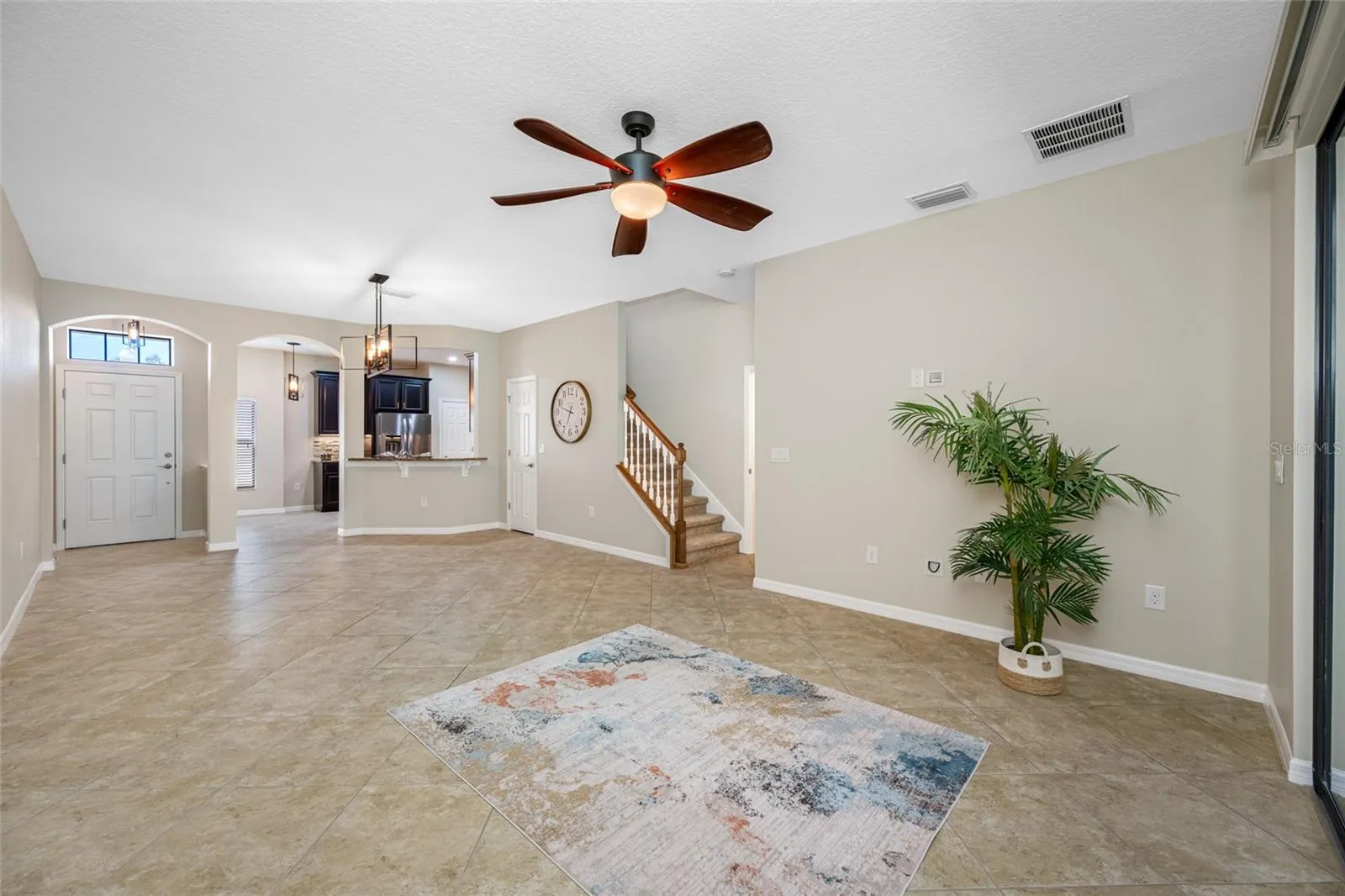- Ceiling Fans(s), Open Floorplan, Walk-In Closet(s), Living Room/Dining Room Combo, Eat-in Kitchen, Primary Bedroom Main Floor, Split Bedroom, Window Treatments, High Ceilings, Stone Counters