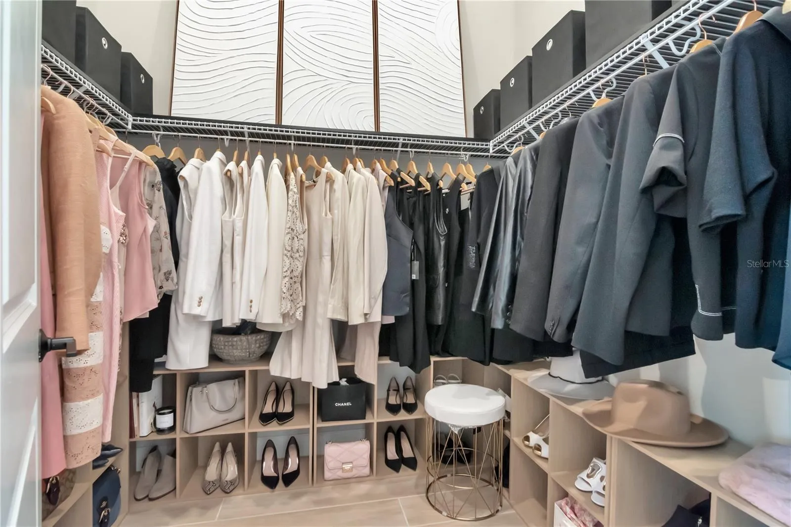 - Ceiling Fans(s), Crown Molding, Open Floorplan, Thermostat, Walk-In Closet(s), Eat-in Kitchen, Kitchen/Family Room Combo, Primary Bedroom Main Floor, Split Bedroom, Window Treatments, High Ceilings, Smart Home, Solid Wood Cabinets, Tray Ceiling(s), Dry Bar
