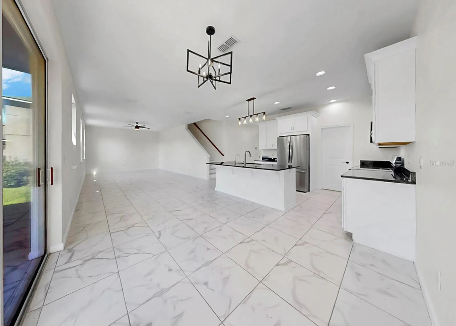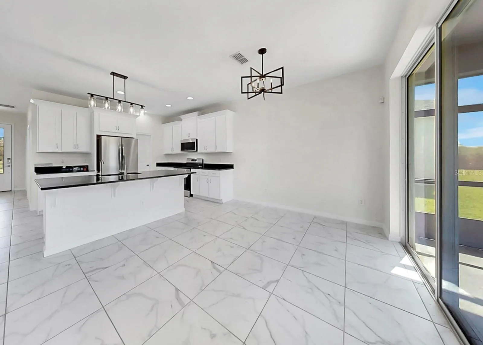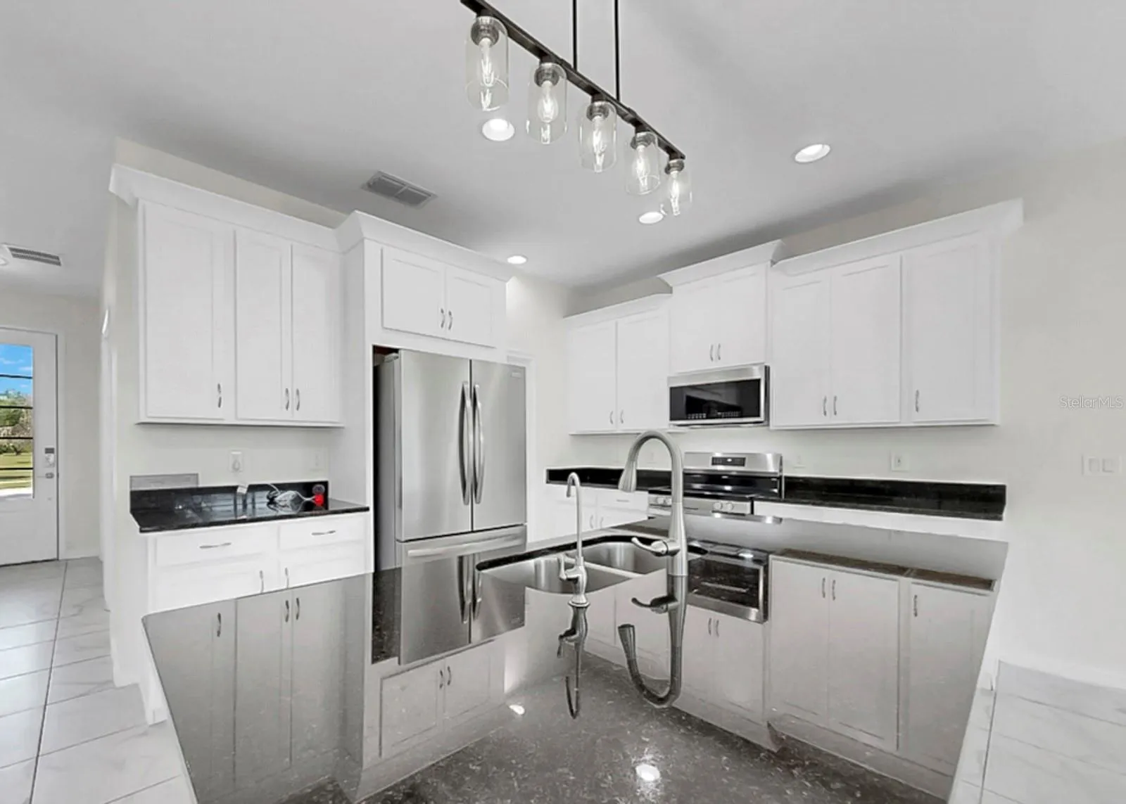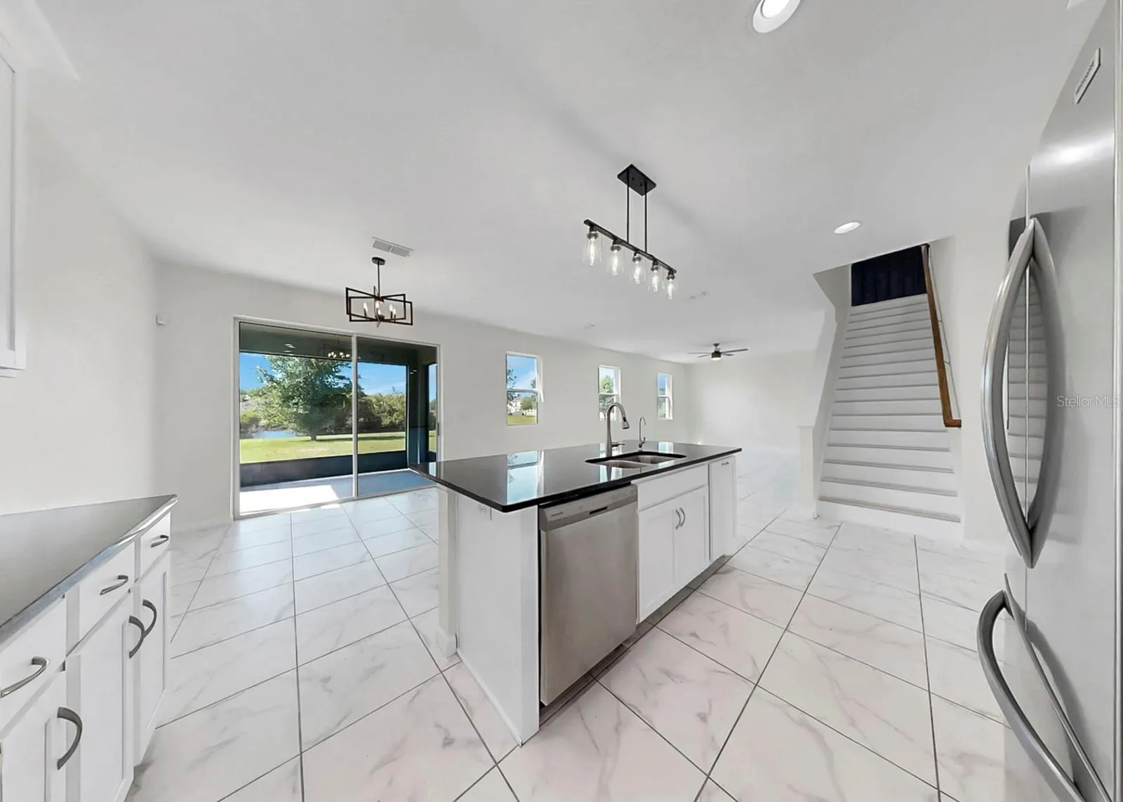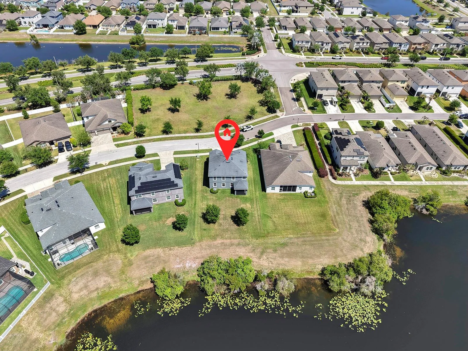 Welcome home to this STUNNING 4-bedroom, 2.5-bath home situated on a LARGE, PREMIUM LOT with peaceful WATER VIEWS! From the moment you arrive, you’ll notice the EXCEPTIONAL CURB APPEAL with manicured landscaping, fresh mulch, vibrant plants, a stone accented entryway, and a welcoming front door with a glass insert to allow natural light to flood the home. Step inside to an open-concept floor plan where the first floor showcases beautiful MARBLE-LOOK TILE flooring. A spacious flex room at the front of the home enclosed with FRENCH DOORS offers the perfect space for a home office or study. The gourmet kitchen is a true centerpiece, featuring stylish black countertops, stainless steel appliances, a MASSIVE walk-in pantry, and an oversized island ideal for entertaining. The great room is filled with natural light from oversized sliding glass doors that look out to a beautiful yard and pond views. Upstairs, you’ll find elegant WOOD-LOOK flooring throughout, along with a spacious loft, perfect for use as a media center or game room. The LARGE PRIMARY SUITE is a relaxing retreat with abundant natural light, a HUGE walk-in closet, and a spa-like en suite bathroom complete with dual vanities, a walk-in shower, soaking tub, and private commode. Three additional generously sized bedrooms share a full bathroom. An upstairs laundry room adds everyday convenience. Step outside to enjoy the expansive backyard and screened lanai, perfect for relaxing or entertaining. Located in the sought-after Triple Creek community, residents enjoy resort-style amenities including THREE community pools, playgrounds, fitness center with group exercise classes, basketball, pickleball, sand volleyball and tennis courts, scenic walking trails, and more—all with convenient access to shopping, dining, parks, and beautiful beaches!