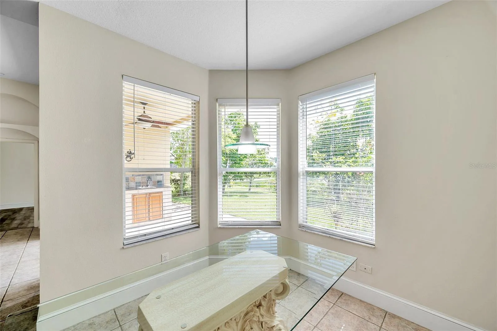 - Ceiling Fans(s), Open Floorplan, Thermostat, Walk-In Closet(s), Living Room/Dining Room Combo, Eat-in Kitchen, Kitchen/Family Room Combo, Primary Bedroom Main Floor, Split Bedroom, Window Treatments, High Ceilings, Vaulted Ceiling(s), Stone Counters, Solid Wood Cabinets, Solid Surface Counters, Cathedral Ceiling(s), Wet Bar