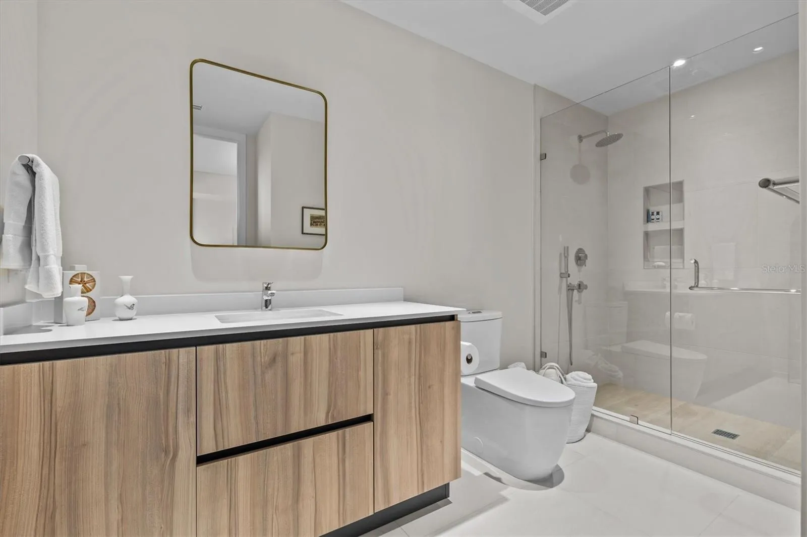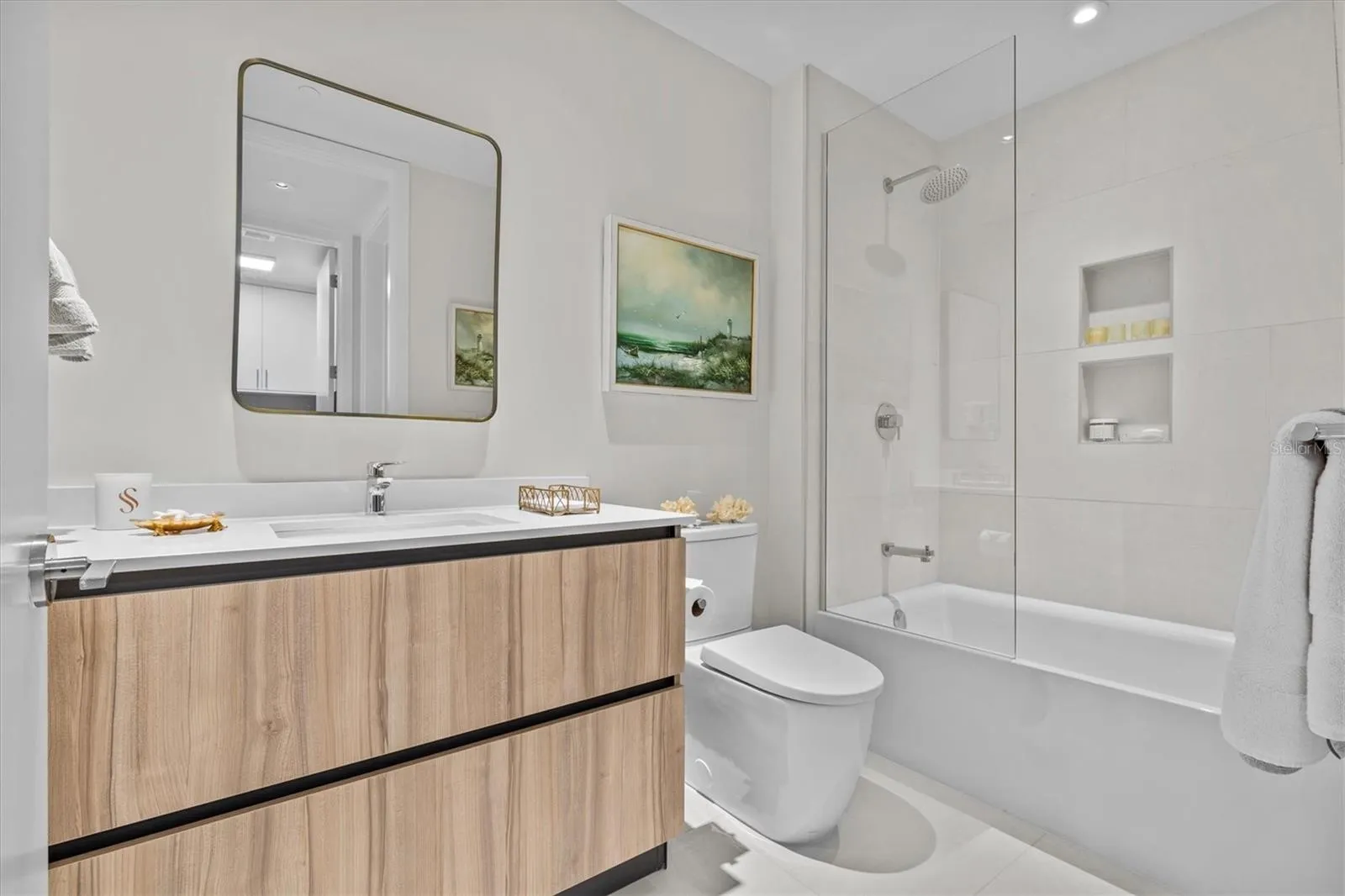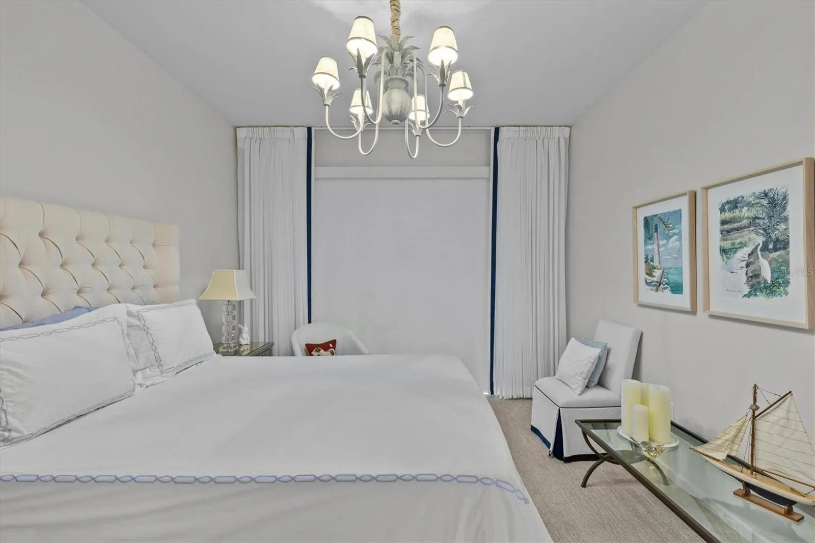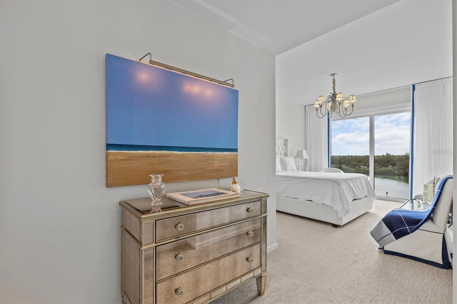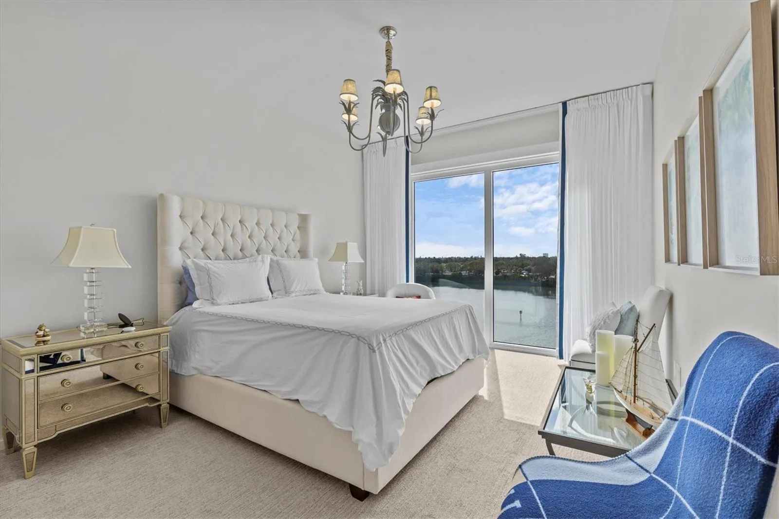 Available for Rent! Luxury living at Serena by the Sea with 23,000+ square feet of resort-style amenities overlooking picturesque Clearwater intracoastal waterway. Unit 510 is a south-facing 2 Bedroom + Guest Room with California Closets throughout, 3 FULL Bathrooms, 1833 interior SF unit high on the 5th floor with direct water and city view and expansive private covered terrace providing added living space and shade from the Florida sun. Custom chandeliers add stylish designer lighting over the open Living & Dining Room, along with recessed lighting over the Kitchen. High-end features throughout include Bosch and Gaggenau appliances including new smart refrigerator/freezer integrated within the cabinetry with filtered water dispenser, Wi-Fi connection and interior cameras (to remind yourself what you need while at the grocery store!); 5-burner gas cooktop, upgraded wall oven, microwave and dishwasher set in large island with waterfall edges; beverage cabinet with wine fridge. In-unit Laundry Room features Maytag front-loading washer & dryer with pedestals and custom built-in cabinetry with hanging rack. Crestron Smart-home features include custom lighting and remote-controlled window shades and blackout curtains. THREE (3) reserved parking spaces with this unit include 2 covered garage spaces (tandem) plus 1 outdoor parking space, and climate-controlled storage unit. Enjoy the abundance of amenities for Serena by the Sea residents including a beautiful 2-story lobby with 24/7 front desk concierge, resort-style saltwater swimming pool and jacuzzi surrounded by lounge chairs, daybeds, and cabanas, his & her bathrooms & outdoor shower, 2 summer kitchens with BBQ grills and televisions, fire pit lounge, interior Spa with second jacuzzi, sauna, relaxation area, massage room, hair salon, locker room, and more. State of the art fitness center on the second level offers vibrant water views and a spacious outdoor area perfect for your morning yoga. Rent includes most utilities (included: gas, water & sewer, trash, high-speed internet, use of amenities), tenant only responsible for electricity. Inquire about lease start date. Located conveniently between downtown Clearwater, Clearwater Beach, and downtown Dunedin and Honeymoon Island – enjoy the coastal lifestyle just a short drive from Tampa and St-Pete-Clearwater International Airports.