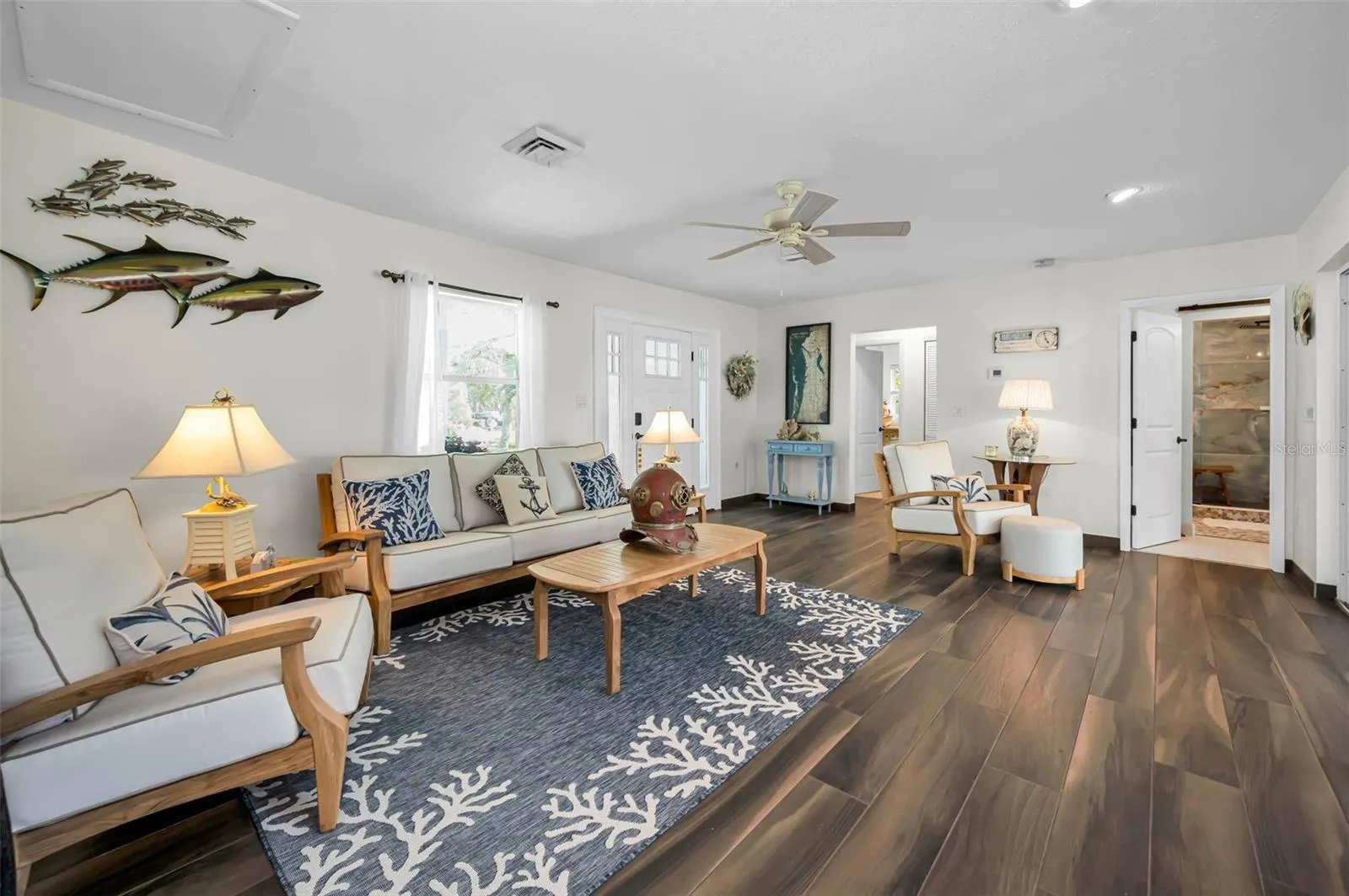 Additional features include a hurricane-rated smart garage door, two-car garage, central air with supplemental mini-split systems, and premium finishes throughout.