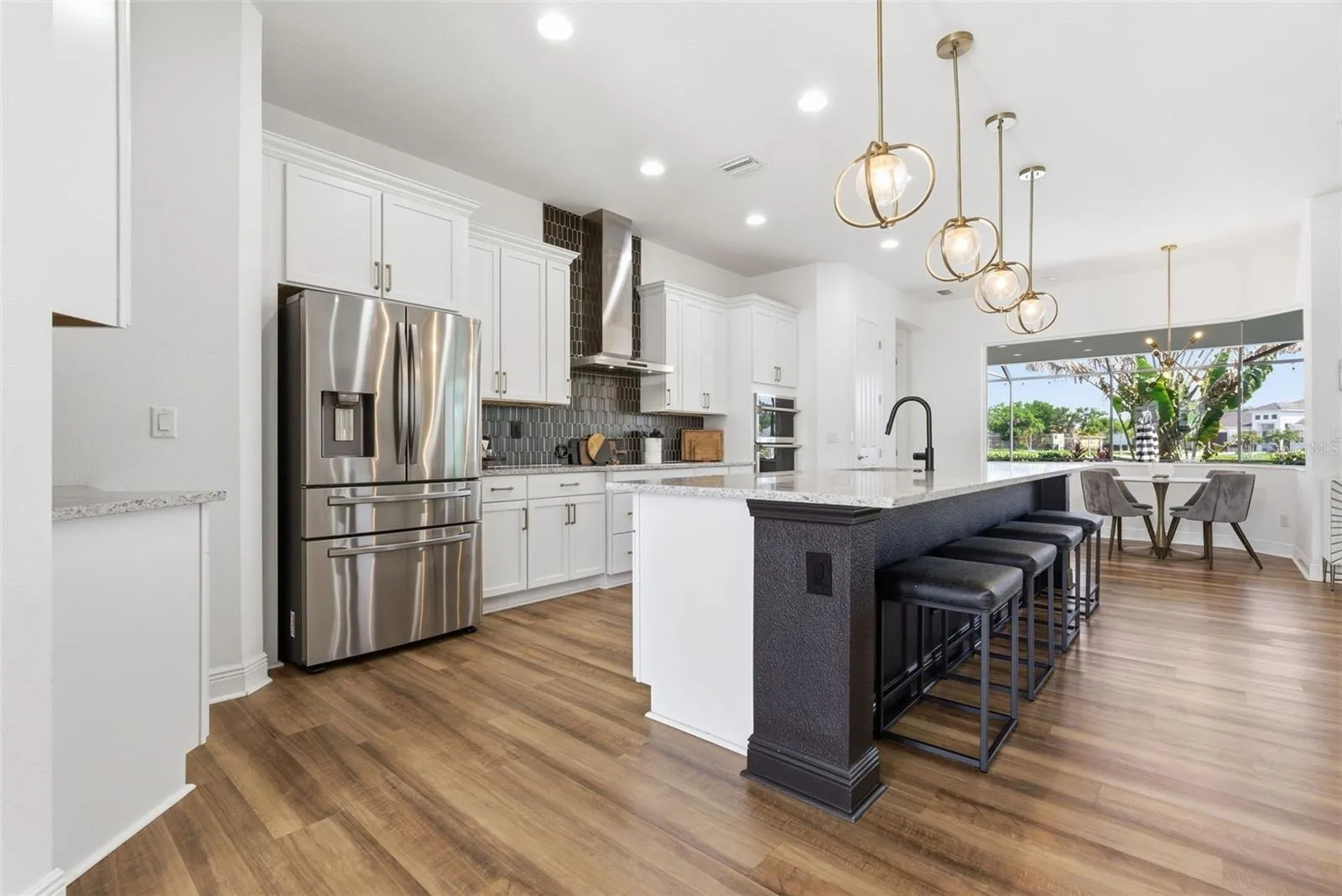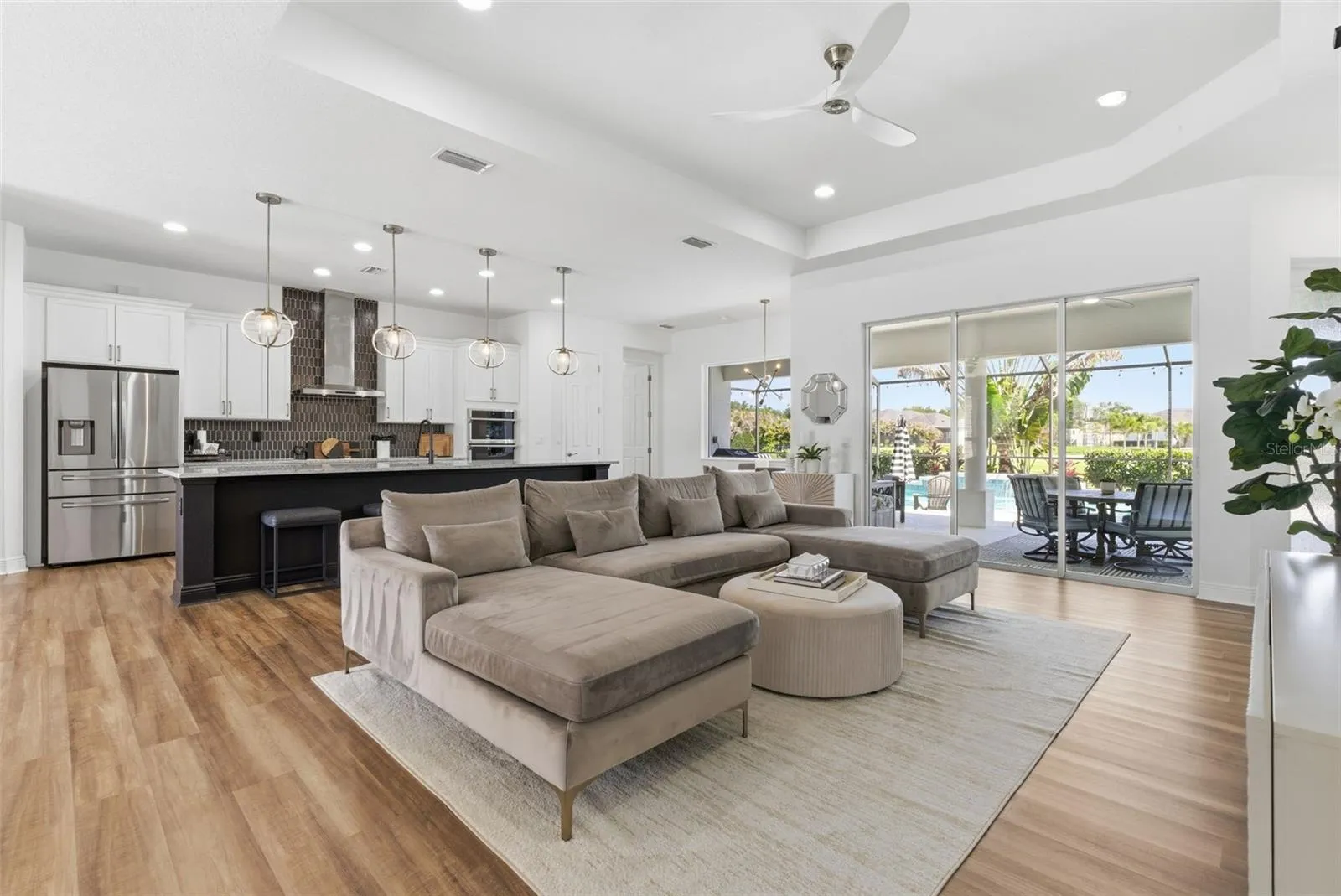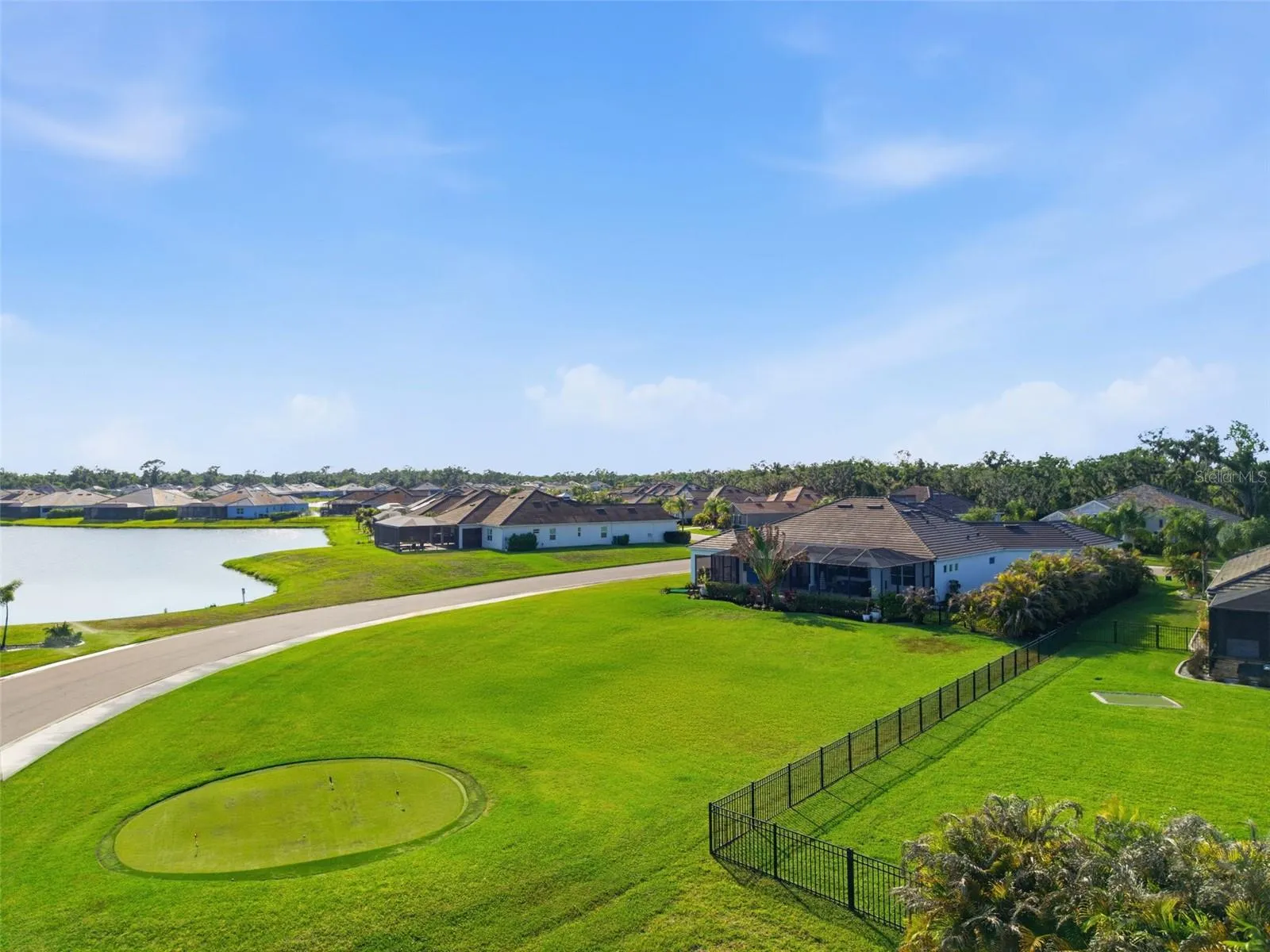 Welcome to the sought-after gated community Reserve at Twin Rivers, a serene neighborhood where luxury, space, and lifestyle come together on an expansive 0.67-acre homesite. This beautifully designed Medallion Homes “Caicos” floorplan offers 2,849 square feet of thoughtfully crafted living space, featuring 3 bedrooms, a private den/office, a dedicated media room and 3.5 bathrooms. The home showcases an open-concept layout ideal for everyday living and entertaining, with its spacious great room that flows seamlessly into the gourmet kitchen and dining areas. Luxury laminate flooring runs throughout the main living spaces, complemented by high-end lighting, and the gourmet kitchen boasts ample cabinetry and a large island. The split-bedroom design ensures privacy, with a well-appointed primary suite separate from guest accommodations. Step outside to your private outdoor retreat, complete with a large screened-in 6′ deep, oversized pool with water features and expansive lanai – perfect for enjoying Florida living year-round. The oversized 0.67-acre lot provides exceptional space and features a unique Tee Box with a 50-yard shot to your own putting green, creating a one-of-a-kind backyard experience. Additional highlights include an oversized 3-car garage, fenced side yard with secure pet/dog run, pre-plumbing for an outdoor kitchen, and built-in closets. Situated near highly rated schools, and close-proximity to shopping, dining, and I-75. Come see why this home is the perfect place to enjoy luxury living with a unique blend of privacy and convenience!