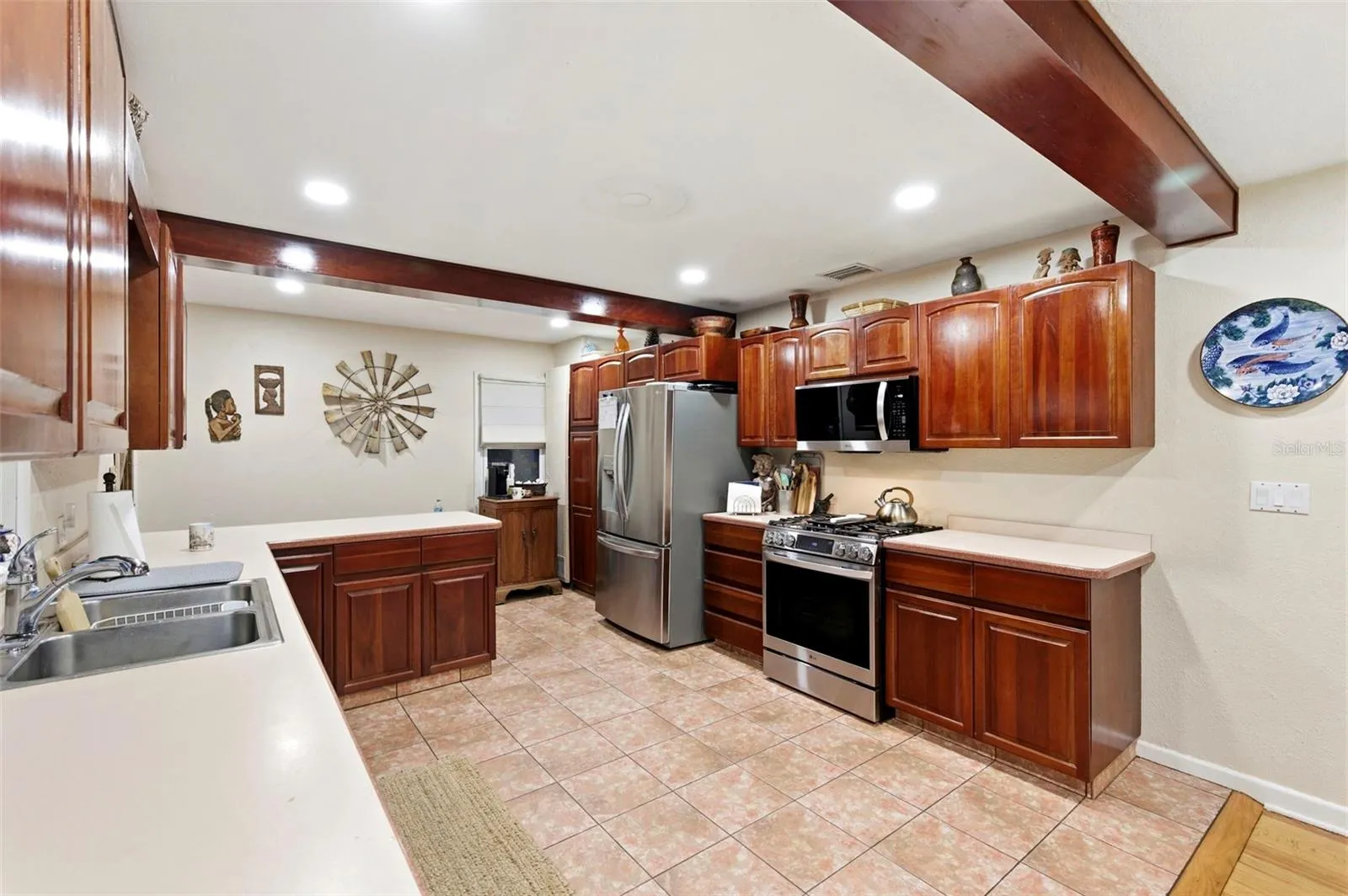 Four thousand square feet of premium pavers (2023) wrap the entire property, with room for an RV, a large boat, and up to six vehicles. The private courtyard is the showpiece: a koi pond, soaking tub, built-in bar, and outdoor TV make it an entertainer’s dream under the Florida sky. A second patio out front extends the living space into a lush garden setting.