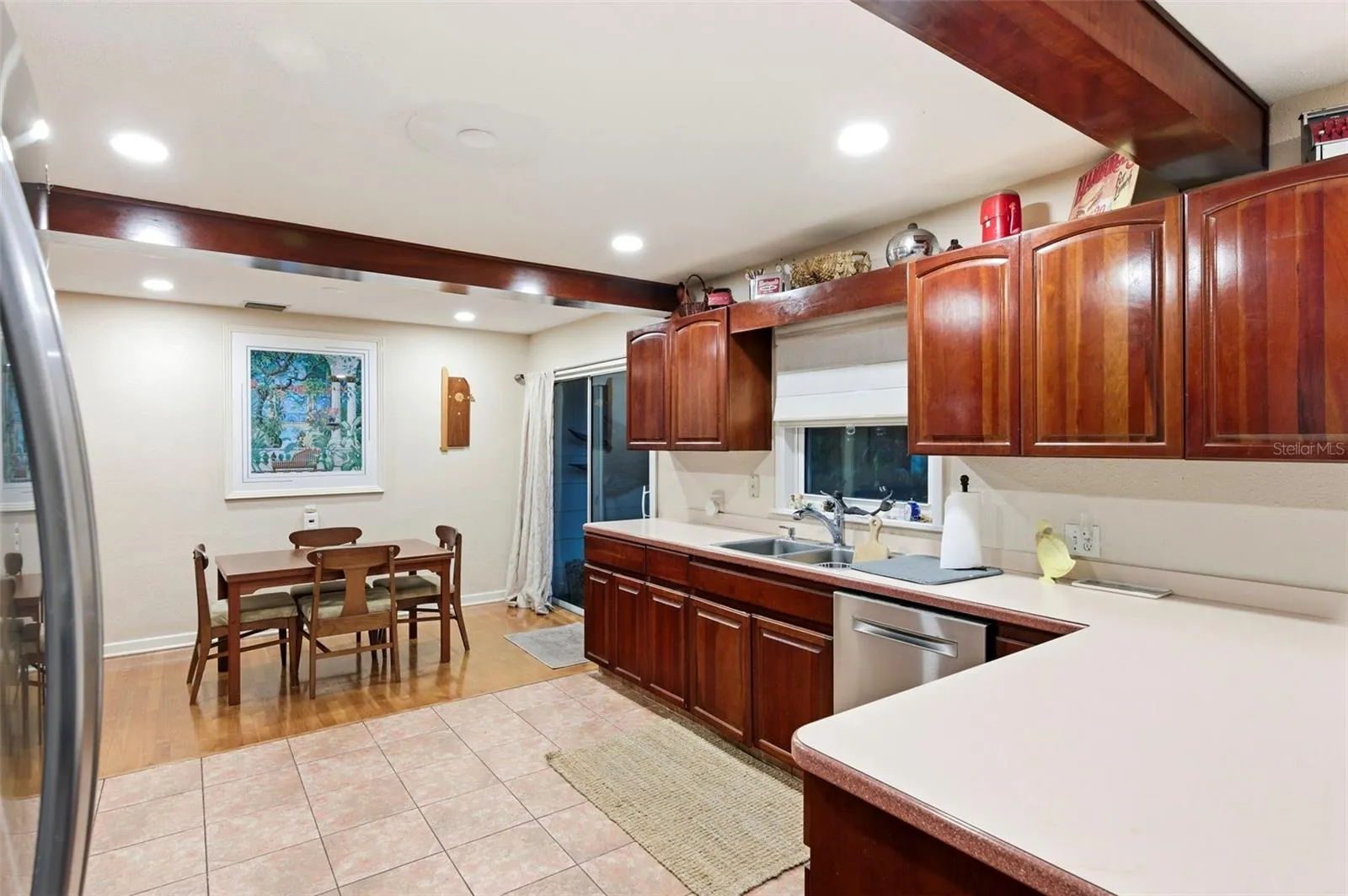 Inside, enjoy wood floors and tile throughout, plantation shutters, and a generous kitchen with solid wood cabinets and newer stainless appliances. A new roof (2023), fresh exterior paint (2024), and epoxy garage floors (2024) mean the big-ticket items are already handled.