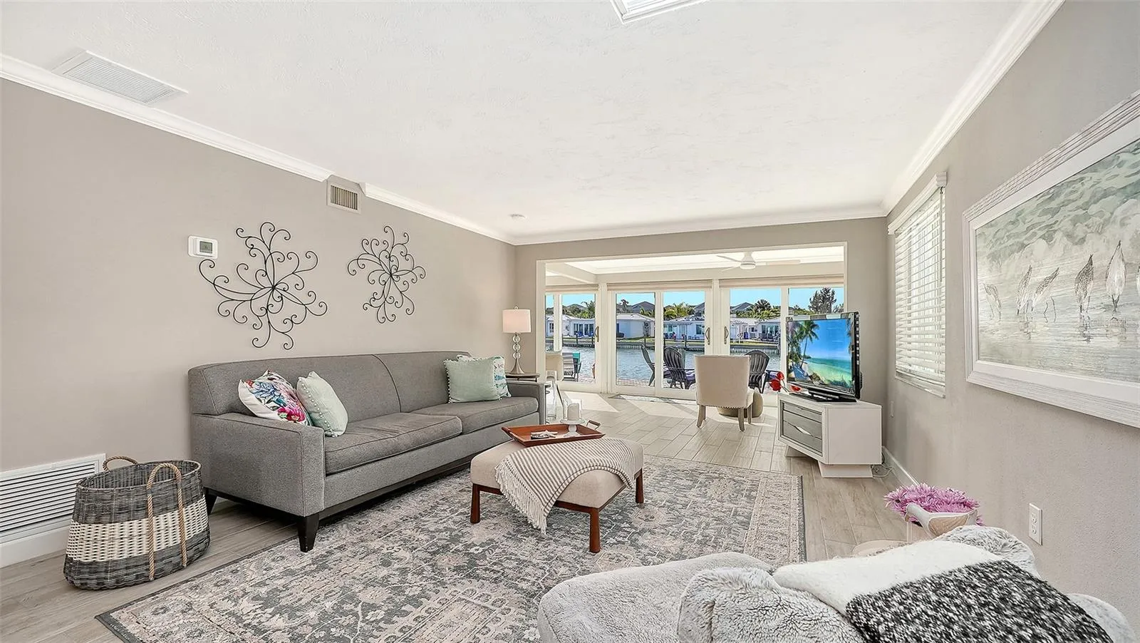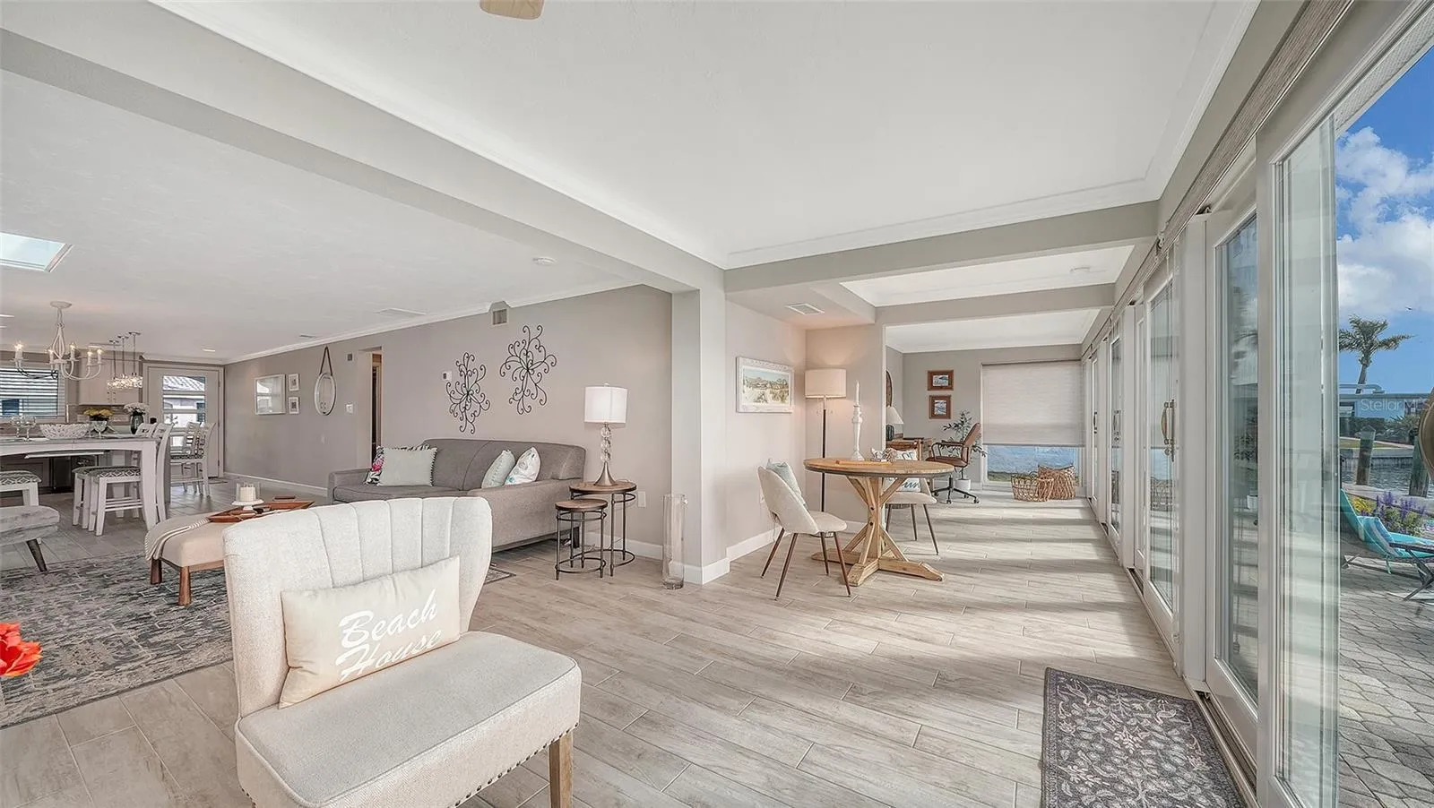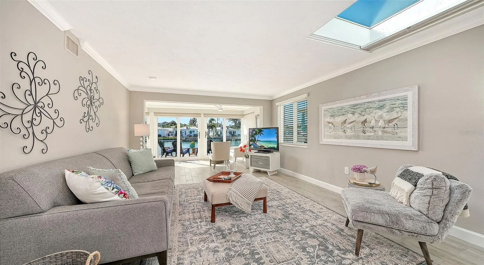 This must-see hidden gem on the north end of Longboat Key offers a quintessential Florida lifestyle. Waterview’s galore as you walk into your newly completed renovated Florida paradise home which sits on a deep-water marina and canal which epitomizes beauty and style. Boat lovers will covet the location of this totally turn-key furnished 1423 sq. ft. stand-alone 2bdrm 2bath with your upgraded composite boat dock just 15’ behind your villa. Completely remodeled, this home provides contemporary classic design features that create an open airy gorgeous living space. All new SS appliances in 2026, A/C 2025, Roof 2019 and so much more. The open kitchen design with a large island, new quartz countertops, plenty of beautiful new cabinets with roll out drawers and a contrasting white and gray classic color scheme. Great counter space makes the kitchen perfect for entertaining and enjoying the coastal casual lifestyle. Beautiful porcelain tile flows throughout the home providing continuity from room to room. An over-sized skylight in the great room with retractable shade provides lots of extra natural brightness. The large primary bedroom is complete with a fully refashioned ensuite bath with gorgeous granite countertops and custom-tiled shower. A spacious walk-in closet provides plenty of room for your coastal style wardrobe. The second bath mimics the maintained class and elegance of this home with granite counters and tiled shower. The lanai has been transformed into extra living space with a cozy study and separate office nook. The study is a perfect spot to curl up with a good book or just sit privately and watch the beautiful white pelicans float by with dolphins and manatees right alongside. This flexplace can also house extra sleepover guests. The double lanai facing the water allows a panoramic view and full access to your large, elevated brick paver patio and dock from floor to ceiling impact grade patio doors. Walk outside to a private oasis that overlooks the wide-open canal, marina and bay views. Sit, dine, entertain or sunbathe while you enjoy the abundant wildlife from the comfort of your patio paradise, or hop in your boat secured to your 5ft x 25ft dock and head out to one of the many Longboat Key restaurants by boat. Some of the best waters to explore in Sarasota for fishing, sandbar enjoyment, kayaking and swimming right in your own backyard. You have direct access to the Intra-coastal waterway and a quick boat ride to the Gulf of Mexico. Impact windows and brand new hurricane rated doors throughout. The Spanish Main maintenance free- community has a wonderful neighborhood feel with heated pool, deeded beach access, a 40 slip Marina with social events galore making every day feel like a vacation as you lounge in the sun pool side and enjoy the sea The deeded beach access is perfect for those numerous beach days and magnificent sunsets. Pet-friendly, maintenance-free, and a very active 55+ community are added benefits for your enjoyment. Located only a short drive to the fantastic shops and restaurants including Anna Maria Island plus cultural events that Sarasota and St. Armand’s Circle have to offer. This villa has been fully renovated in compliance with FEMA standards due to hurricane flooding in 2024