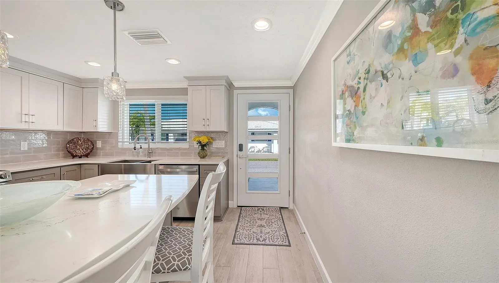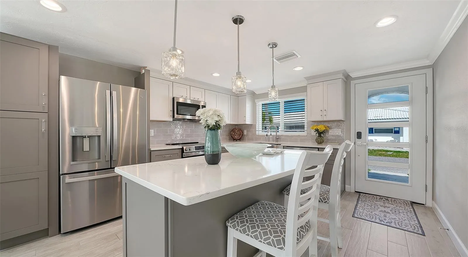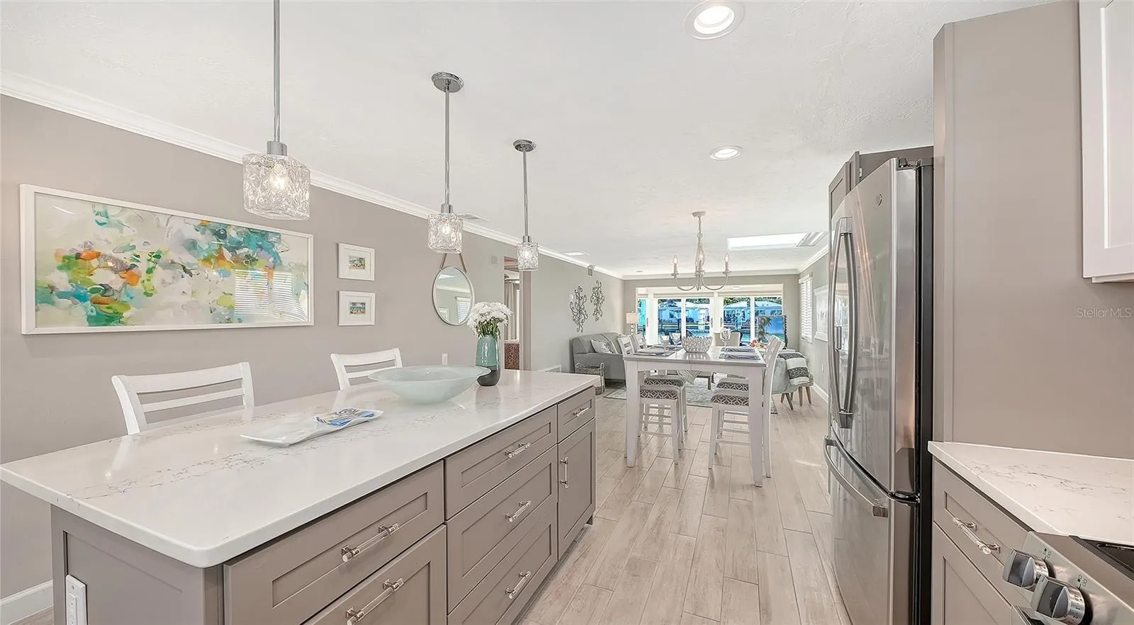 This must-see hidden gem on the north end of Longboat Key offers a quintessential Florida lifestyle. Waterview’s galore as you walk into your newly completed renovated Florida paradise home which sits on a deep-water marina and canal which epitomizes beauty and style. Boat lovers will covet the location of this totally turn-key furnished 1423 sq. ft. stand-alone 2bdrm 2bath with your upgraded composite boat dock just 15’ behind your villa. Completely remodeled, this home provides contemporary classic design features that create an open airy gorgeous living space. All new SS appliances in 2026, A/C 2025, Roof 2019 and so much more. The open kitchen design with a large island, new quartz countertops, plenty of beautiful new cabinets with roll out drawers and a contrasting white and gray classic color scheme. Great counter space makes the kitchen perfect for entertaining and enjoying the coastal casual lifestyle. Beautiful porcelain tile flows throughout the home providing continuity from room to room. An over-sized skylight in the great room with retractable shade provides lots of extra natural brightness. The large primary bedroom is complete with a fully refashioned ensuite bath with gorgeous granite countertops and custom-tiled shower. A spacious walk-in closet provides plenty of room for your coastal style wardrobe. The second bath mimics the maintained class and elegance of this home with granite counters and tiled shower. The lanai has been transformed into extra living space with a cozy study and separate office nook. The study is a perfect spot to curl up with a good book or just sit privately and watch the beautiful white pelicans float by with dolphins and manatees right alongside. This flexplace can also house extra sleepover guests. The double lanai facing the water allows a panoramic view and full access to your large, elevated brick paver patio and dock from floor to ceiling impact grade patio doors. Walk outside to a private oasis that overlooks the wide-open canal, marina and bay views. Sit, dine, entertain or sunbathe while you enjoy the abundant wildlife from the comfort of your patio paradise, or hop in your boat secured to your 5ft x 25ft dock and head out to one of the many Longboat Key restaurants by boat. Some of the best waters to explore in Sarasota for fishing, sandbar enjoyment, kayaking and swimming right in your own backyard. You have direct access to the Intra-coastal waterway and a quick boat ride to the Gulf of Mexico. Impact windows and brand new hurricane rated doors throughout. The Spanish Main maintenance free- community has a wonderful neighborhood feel with heated pool, deeded beach access, a 40 slip Marina with social events galore making every day feel like a vacation as you lounge in the sun pool side and enjoy the sea The deeded beach access is perfect for those numerous beach days and magnificent sunsets. Pet-friendly, maintenance-free, and a very active 55+ community are added benefits for your enjoyment. Located only a short drive to the fantastic shops and restaurants including Anna Maria Island plus cultural events that Sarasota and St. Armand’s Circle have to offer. This villa has been fully renovated in compliance with FEMA standards due to hurricane flooding in 2024
