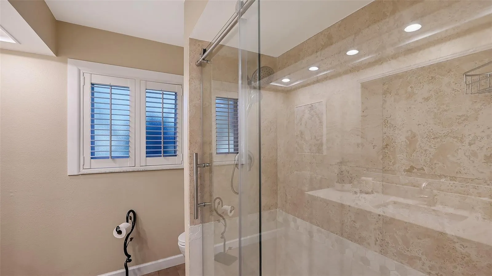 • Fully remodeled guest bathroom with new tile, glass door, and Toto toilet