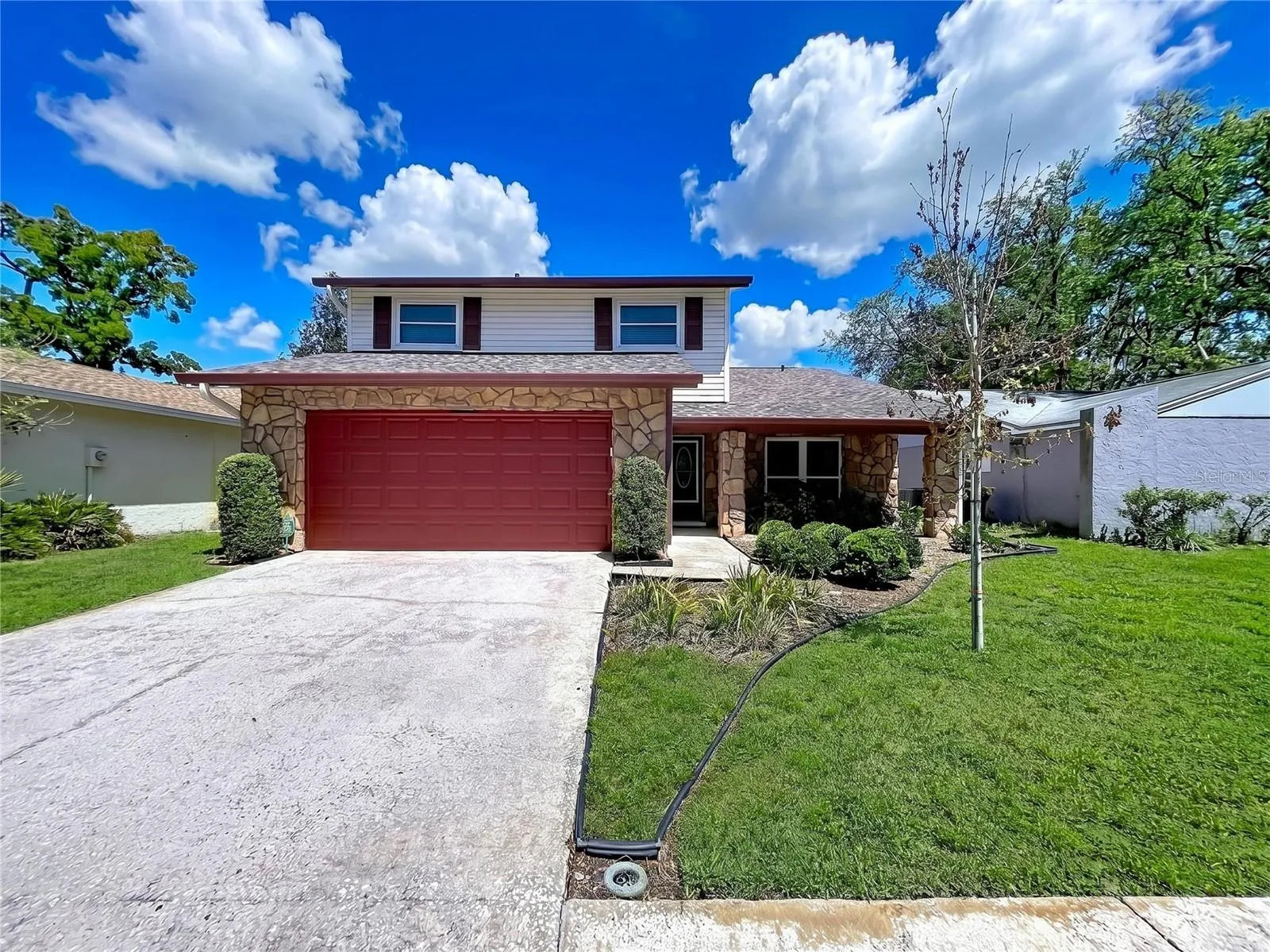 One or more photo(s) has been virtually staged. Nestled on a shady street in the desirable location of Lake Forest is this upgraded 4 bedroom + loft/2 bath home. The owner with 35 years of caring and maintenance has meticulously repaired and added features to enhance the home. Upon entering the Acacia Wood floors make a statement of quality in the living room and master bedroom. The open ceiling to the loft adds to the spaciousness of the room and emphasized by the high shelving for decorative accessories. Two sliding doors open to the AC/heated Florida Room. The adjacent hall leads to the primary bedroom, bath and 2nd bedroom/office. The stunning remodeled bathroom has shower with tiled walls and ceiling and new cabinets with granite countertop. The popcorn ceilings have been removed making the area most appealing. The second bedroom has double doors off of the foyer providing flexibility for an office. The efficient kitchen with stainless steel appliances has replaced the original cabinets adding efficient storage areas. The beautiful Silestone countertops add luxury to the U-shaped kitchen. A filter system has been added at the kitchen sink. The third and fourth bedrooms are upstairs with a remodeled bathroom including a tiled shower and granite countertops. The spacious loft can be a study/work area or super play area. The Florida Room is individually heated and air conditioned with double pane windows and tiled floors providing an additional 200 square feet of floor space. Controlled irrigation throughout the lawn with the backyard fenced. A/C-Heat Pump (2017), Roof (2018), Exterior Paint (2020). Lake Forest offers a tranquil, park-like atmosphere including an Olympic-sized pool, tennis, pickleball and basketball courts, club house, and walking trails. The lakeside views provide a serene setting. Lake Forest has easy access to USF, Moffitt Cancer Center, Mosi, I-75, I-275, and Tampa shopping, dining, and entertainment options. 14711 Tall Tree is a wonderful family home upgraded and cared for located in an ideal location is now available. Make this your Home Sweet Home.