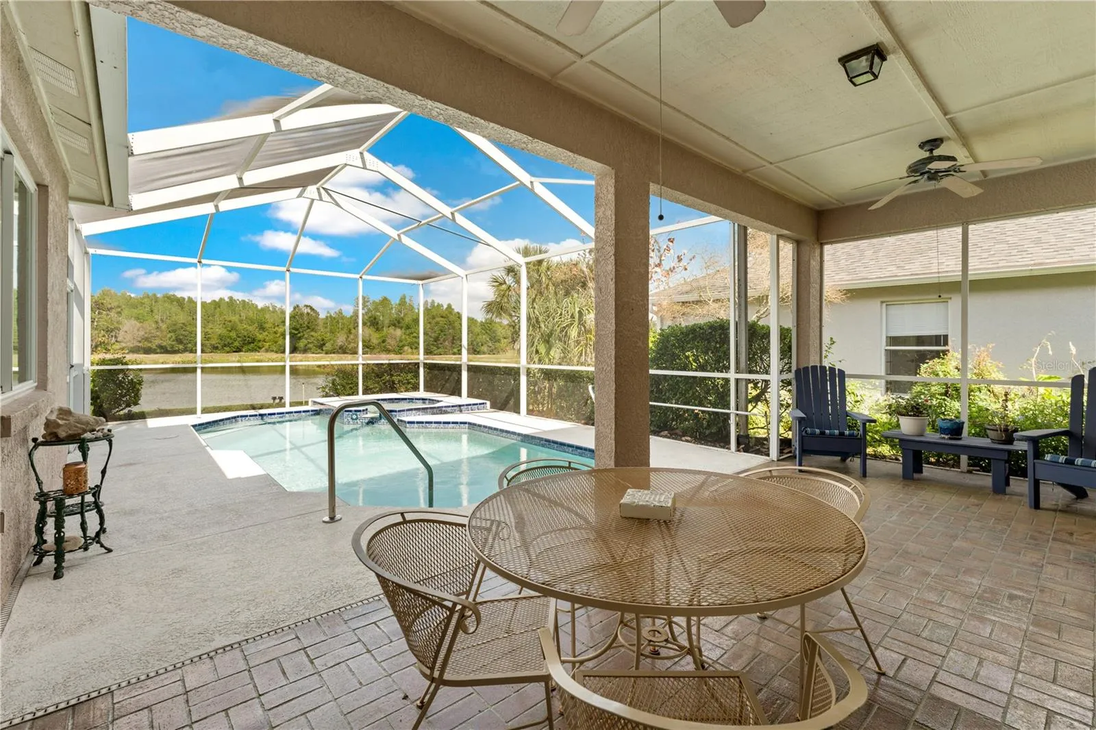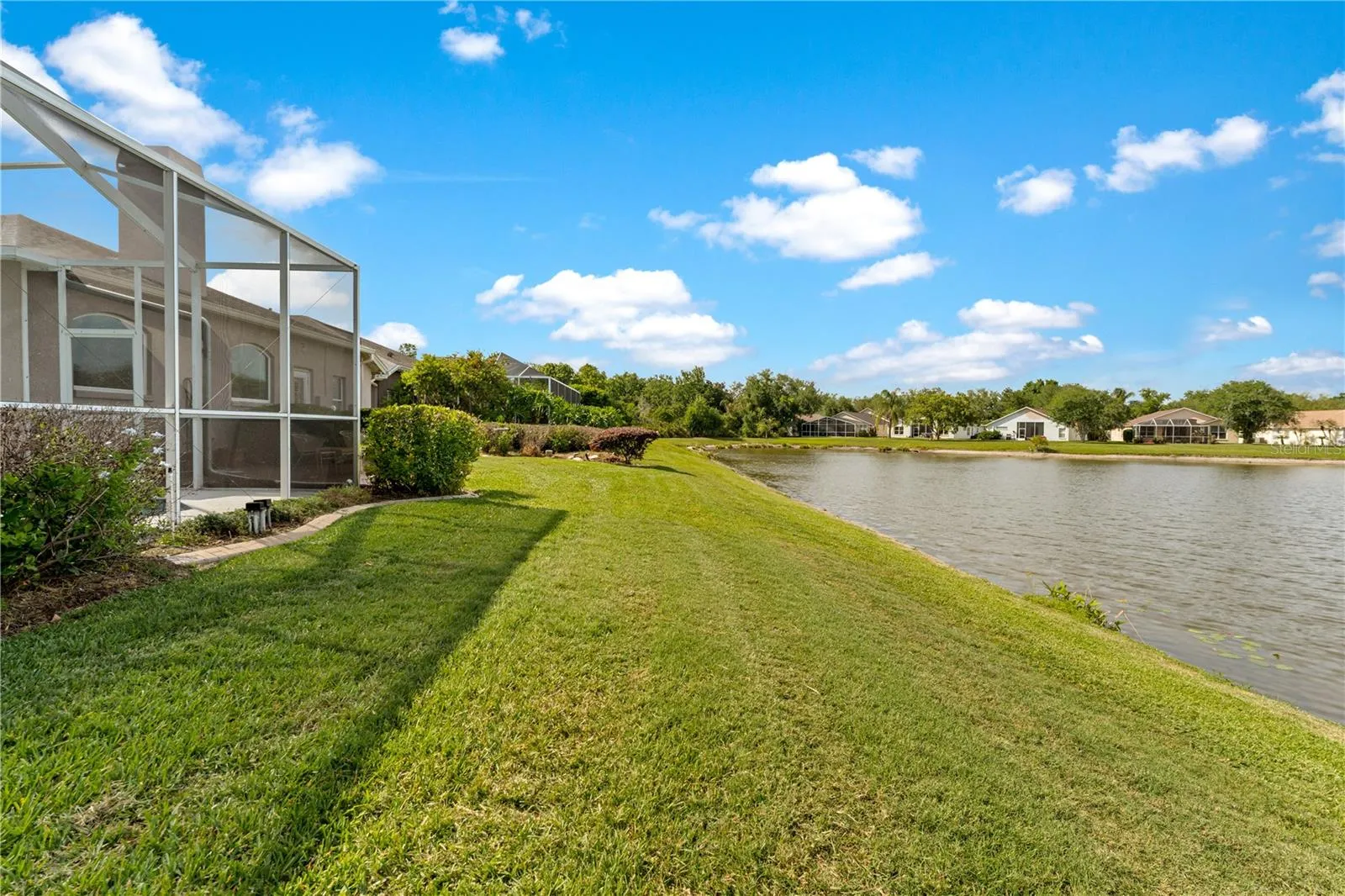 Pond views, private pool, and a backyard filled with birds and everyday wildlife set the tone for this original-owner home in Hunter’s Green offering 4 bedrooms, 3 baths, and approximately 2,255 sq ft on a pond lot chosen for its open water view. The screened pool and covered lanai overlook the pond, creating a comfortable daily routine—morning coffee by the water and evening swims with peaceful, unobstructed views. Inside, the layout includes multiple living and dining areas with a split-bedroom floor plan that gives separation between the primary suite and secondary bedrooms. The kitchen features a gas range and opens to the main living space and out to the pool, making it easy to stay connected whether you’re hosting or just enjoying a typical day at home. Over the years, the home has been well cared for and has hosted many gatherings, with the indoor-outdoor setup naturally supporting celebrations and get-togethers. The primary suite features pond views and direct access to the lanai, while the additional bedrooms offer flexibility for guests, workspace, or hobbies. Natural light fills the main living areas, with clear sightlines to the pool and water beyond. The backyard offers pond frontage with no direct rear neighbors, combining open views with a sense of space and privacy. Home also features a water filtration system, AC 2025, Outdoor lighting, Roof replaced 2016.Located within the gated Hunter’s Green community in New Tampa with access to golf, tennis courts, park space, and walking paths. Conveniently positioned about 2.5 miles to Flatwoods Park, 6.5 miles to The Shops at Wiregrass, 6.2 miles to AdventHealth Wesley Chapel, and roughly 4.5 miles to I-75 for access to downtown Tampa, Tampa International Airport, and surrounding areas. Includes private pool, lanai, and water-facing outdoor space. Come take a look and see how the pond views and pool setting come together in person.