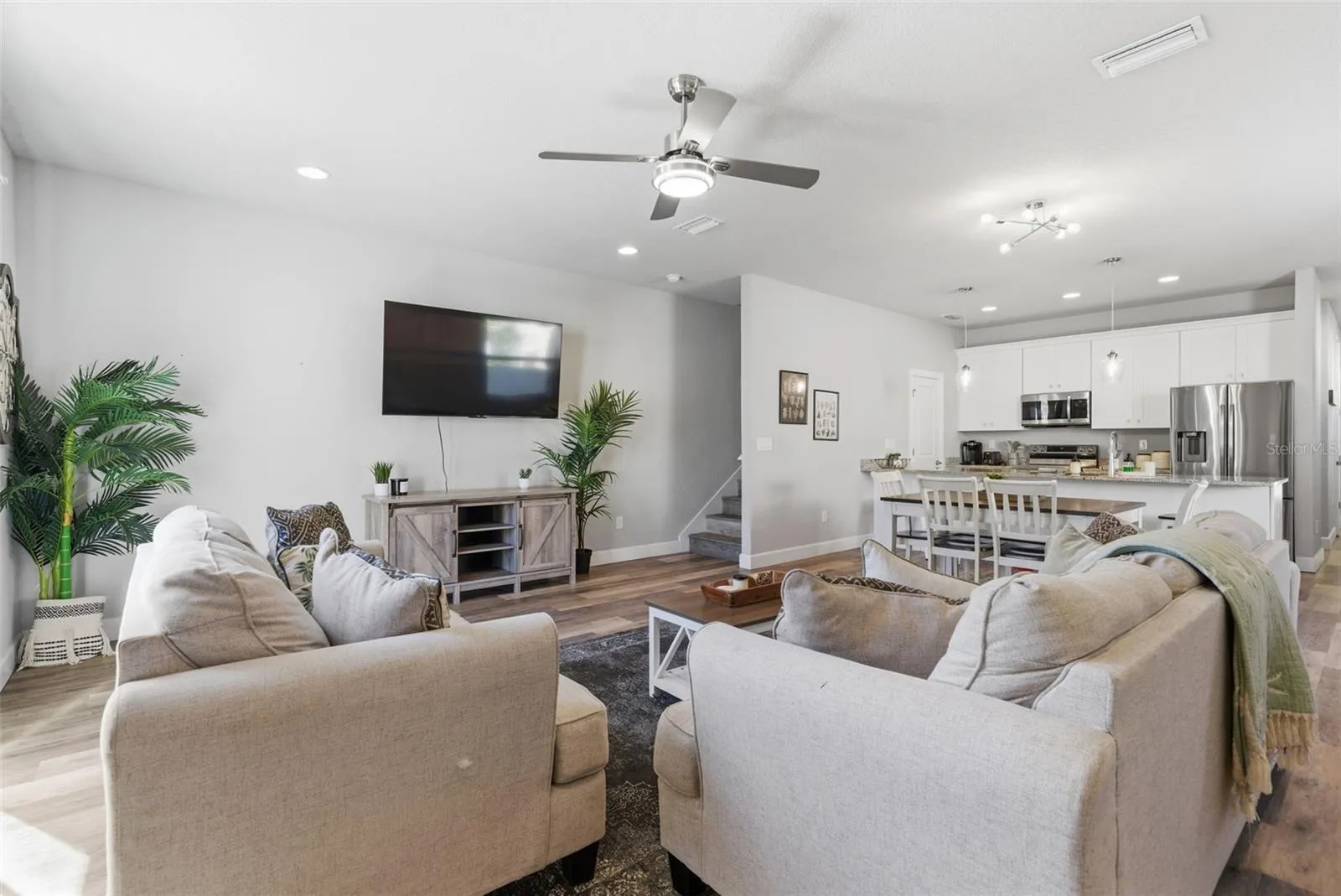 - Ceiling Fans(s), Open Floorplan, Thermostat, Walk-In Closet(s), Living Room/Dining Room Combo, Eat-in Kitchen, High Ceilings, PrimaryBedroom Upstairs