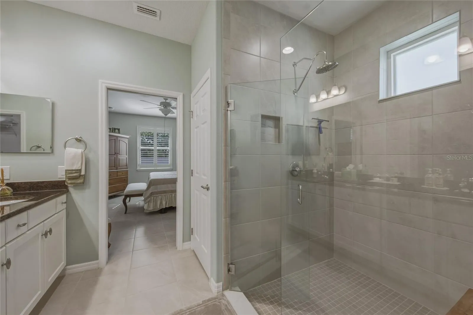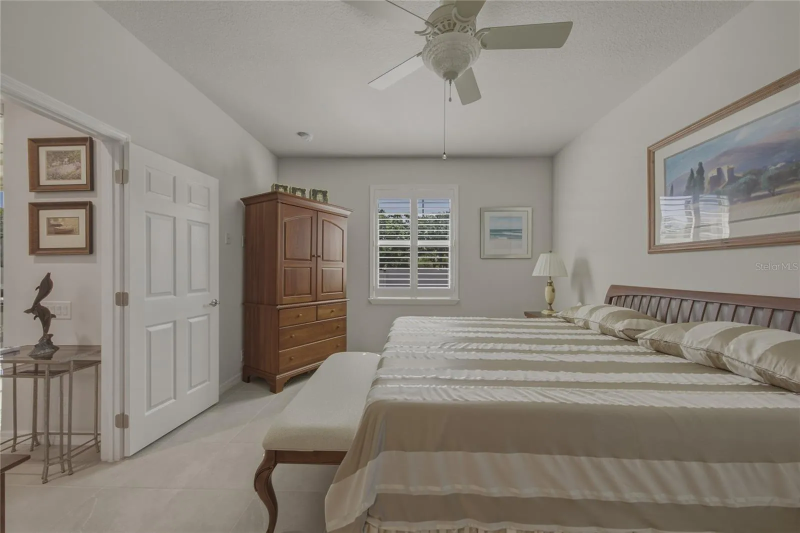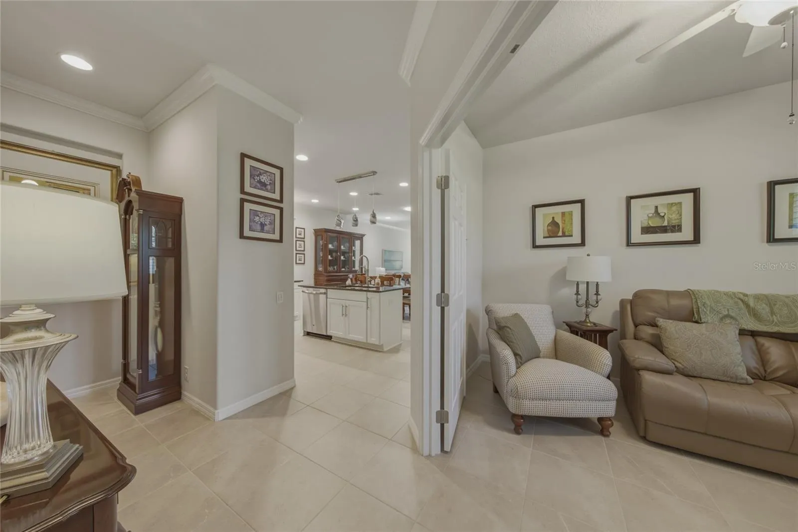 Step inside to find tile flooring throughout, creating a clean, cohesive look that’s both stylish and easy to maintain. The home features upgraded materials and finishes, including enhanced cabinetry, well-appointed bathrooms, and elegant can lighting that adds warmth and depth to the living spaces.