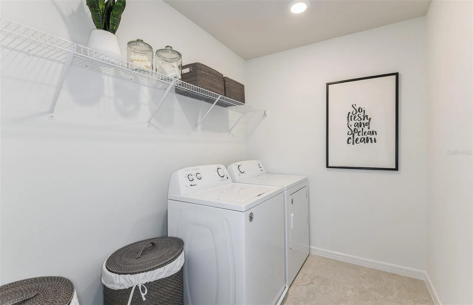 The bathrooms have matching cabinets and quartz countertops, comfort height commodes, and a walk-in shower, linen closet, and dual sinks in the Owner’s bath. There is 21”x21” floor tile in the main living areas, baths, and laundry room and stain-resistant carpet in the bedrooms and loft.