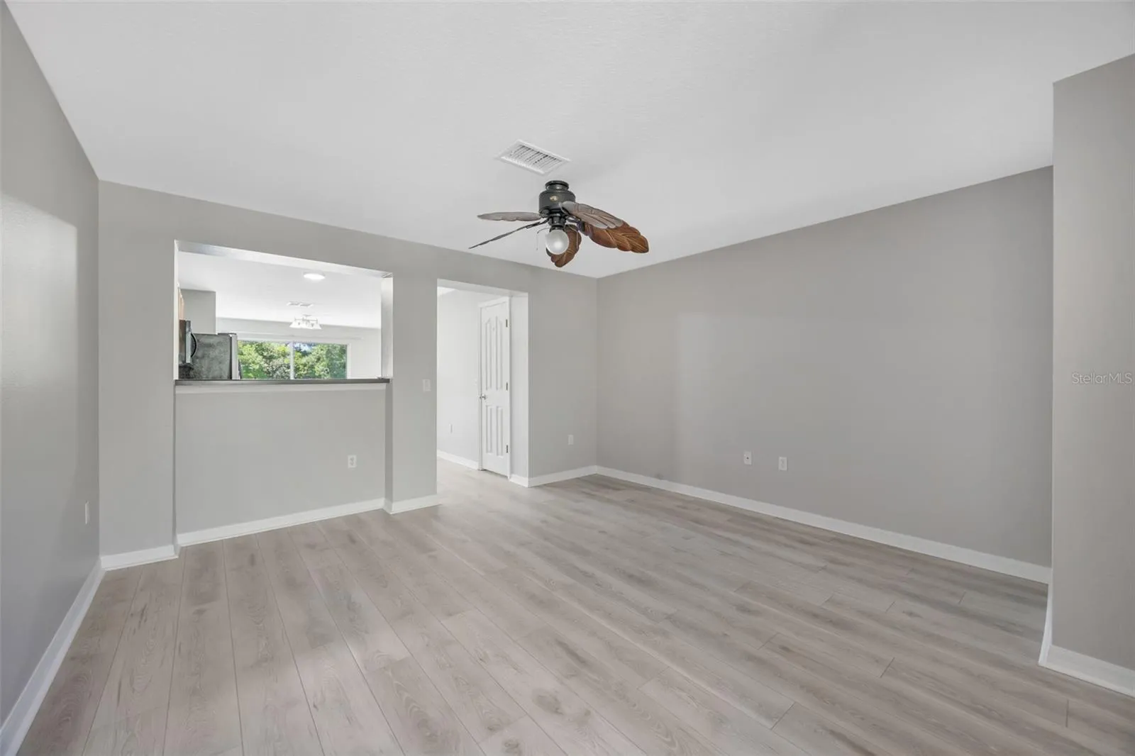 The kitchen offers ample cabinet storage, pantry space, and essential appliances including refrigerator, range, microwave, and dishwasher. Step outside to enjoy peaceful pond views from the rear patio—ideal for morning coffee or unwinding after work.