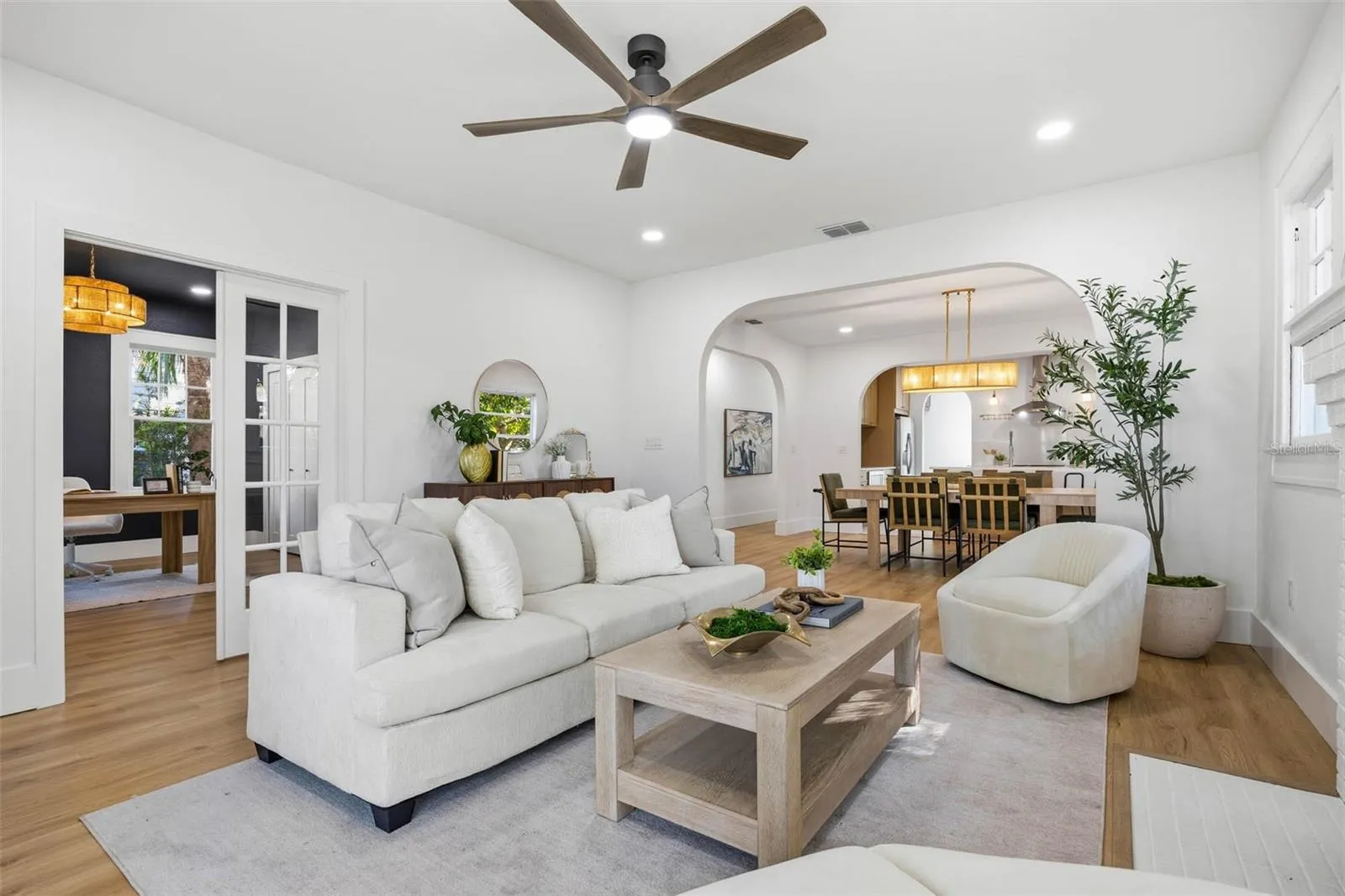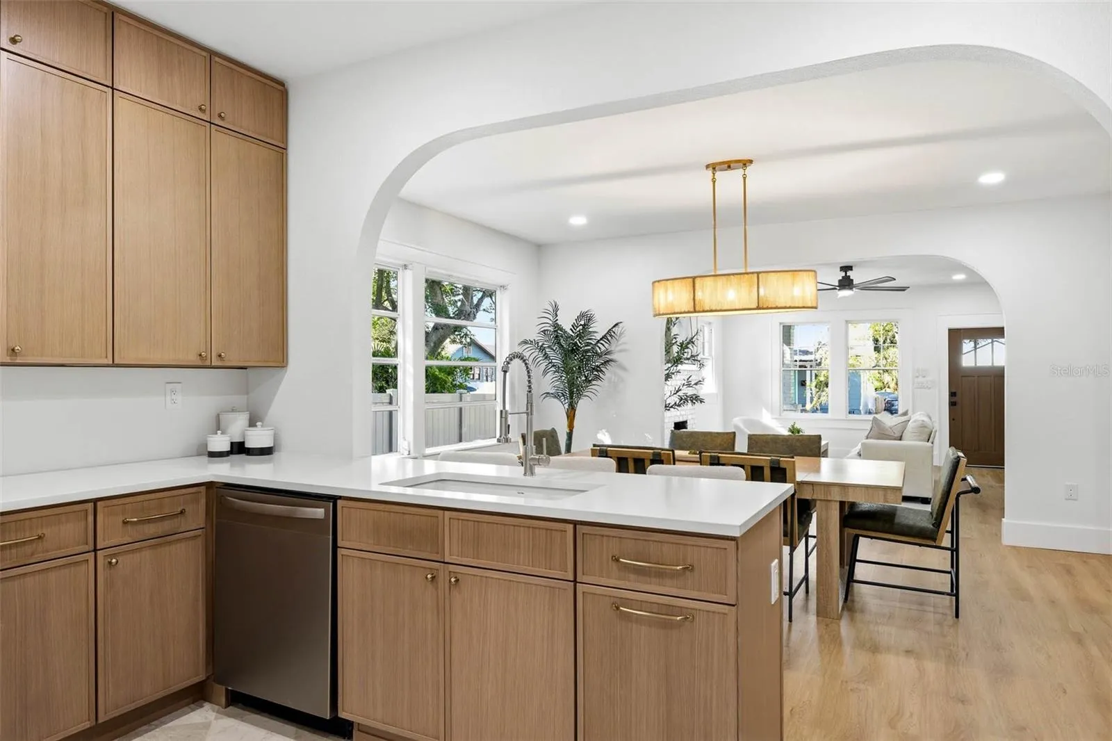 Reimagined and RESTORED in the coveted Ridgewood Park neighborhood! This historic bungalow wasn’t lightly rehabbed….it was brought back to LIFE! The floor plan was reconfigured with functionality in mind so the living room flows into the dining room which flows into the kitchen creating a space that’s perfect for entertaining, the first bedroom is perfectly setup to be a home office or playroom, and the owner’s suite is at the rear of the home with plenty of privacy. The blending of old and new is balanced with features like original brick fireplace and gorgeous archways giving way to the MOST AMAZING KITCHEN you’re going to find in one of these old homes. Speaking of old….you can enjoy the charm without worry because this house was gutted and the renovation extends beyond the pretty things and into what’s most important. The siding was all replaced with Hardie siding to endure another hundred years. The old cloth wiring was completely removed and the electrical is 100% new throughout the house including the electrical panel. The same with the plumbing….It’s had a full repipe all the way to the street and there’s a brand new tankless hot water heater. The AC system was replaced but the seller went the extra mile and replaced all of the duct work as well. We’ve also got a new roof, new insulation, rebuilt front porch, and more! The driveway offers enough parking space for 3 vehicles and there is a detached garage in the back. The backyard is large and fully fenced with a beautiful paver patio to enjoy the Florida sunshine! It’s not often that a historic bungalow renovated to this extent hits the market LET ALONE in this neighborhood where teardowns are selling for $700k so text your realtor NOW and tell them to schedule a tour to see if this is the perfect home for your next chapter.
