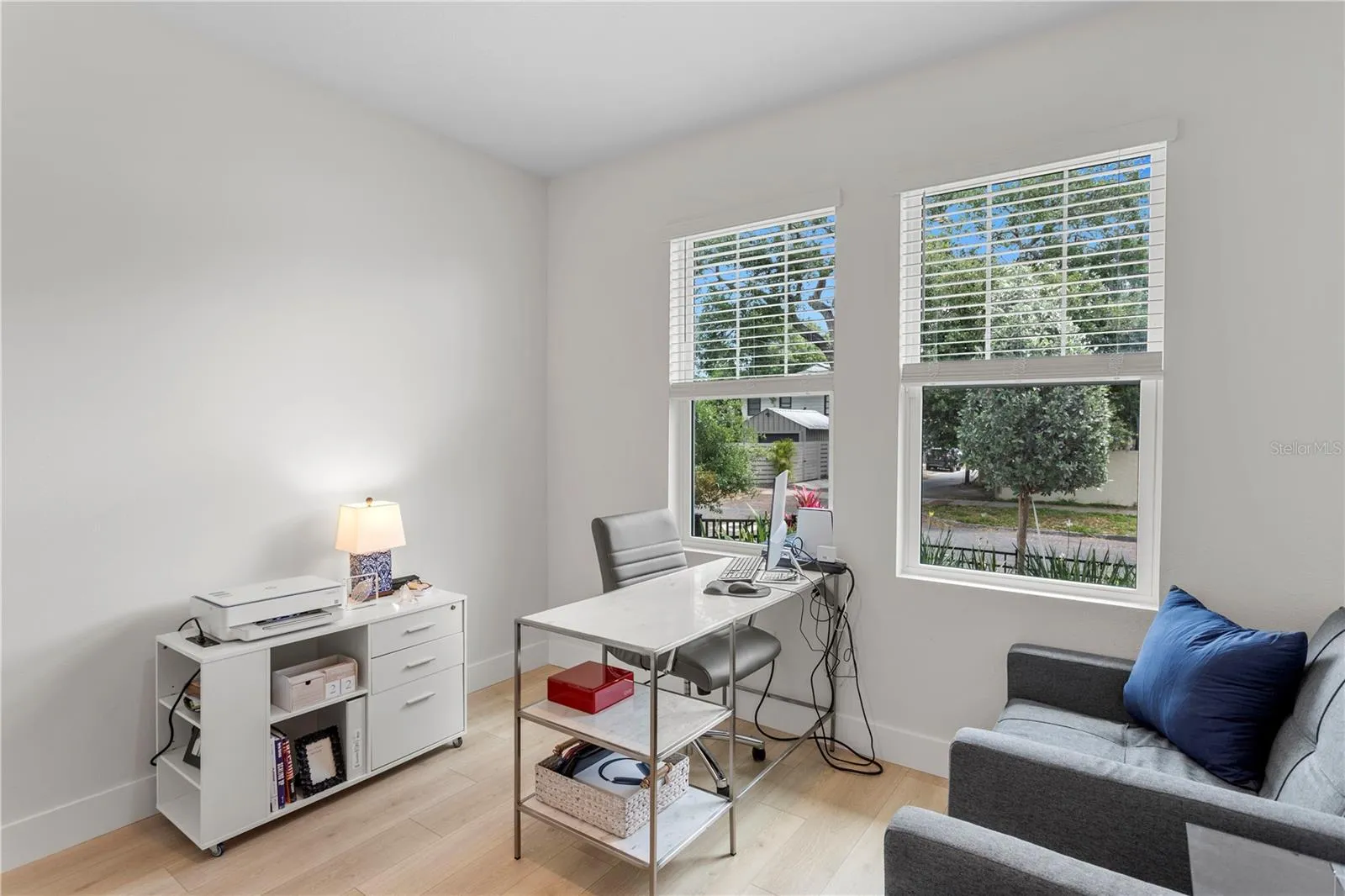 Live in the heart of St. Pete with space, style, and walkability in this beautiful 3-bedroom, 3.5-bath corner townhome with a 2-car garage. Available furnished or unfurnished, this residence offers flexibility for a 9–12 month lease. Offered at $5,000/month unfurnished or $5,500/month furnished. This thoughtfully designed layout features ensuite bedrooms on every level, providing privacy and versatility. The primary suite includes a king bed, while the upstairs guest suite offers a queen bed. A first-floor ensuite is currently configured as an office, with seating that converts to guest sleeping which is ideal for working from home without sacrificing functionality. The main living level is bright and open, extending to a private balcony with wicker seating perfect for morning coffee or evening relaxation. As a premium corner unit, the home enjoys peaceful views overlooking the charming Historic Kenwood neighborhood. Outdoor living continues with a ground-level patio featuring lounge seating and a BBQ, ideal for entertaining. Additional highlights include a full 2-car garage with remotes and generous storage throughout. While the community itself is boutique with no shared amenities, the location is everything being just moments to the shops, dining, and energy of Central Avenue, offering true walkable urban living. Minimum 9-month lease; 9–12 months preferred.