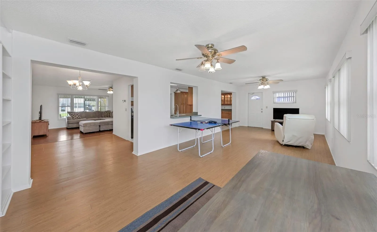 Beautifully updated home with an open floor plan and modern finishes throughout. Kitchen features stainless steel appliances (less than 3 years old), abundant cabinet and counter space, glass upper cabinets with lighting, and a pass-through to the Florida room. Major updates include HVAC (2019) and both tile and flat roof (2018, maintained by condo association).