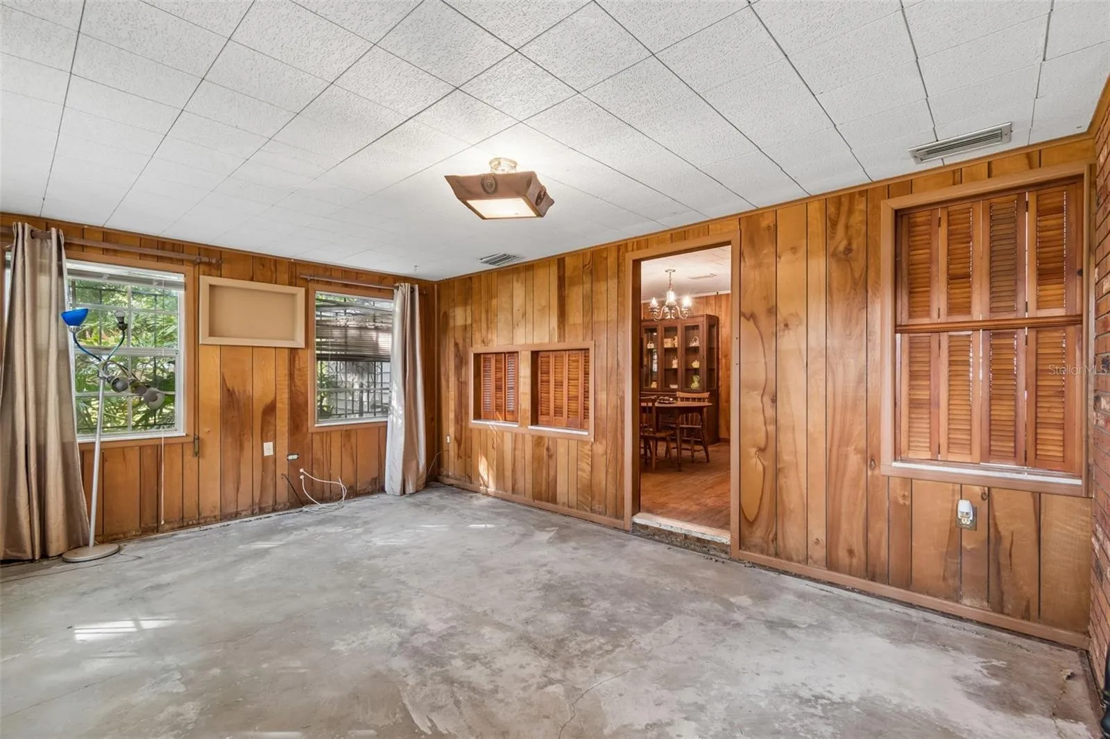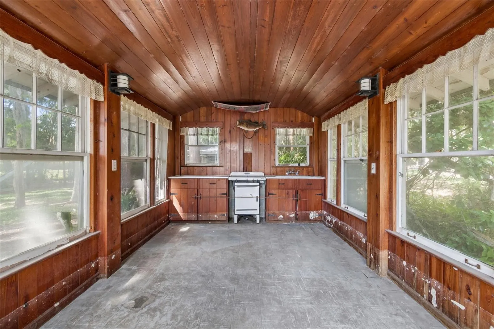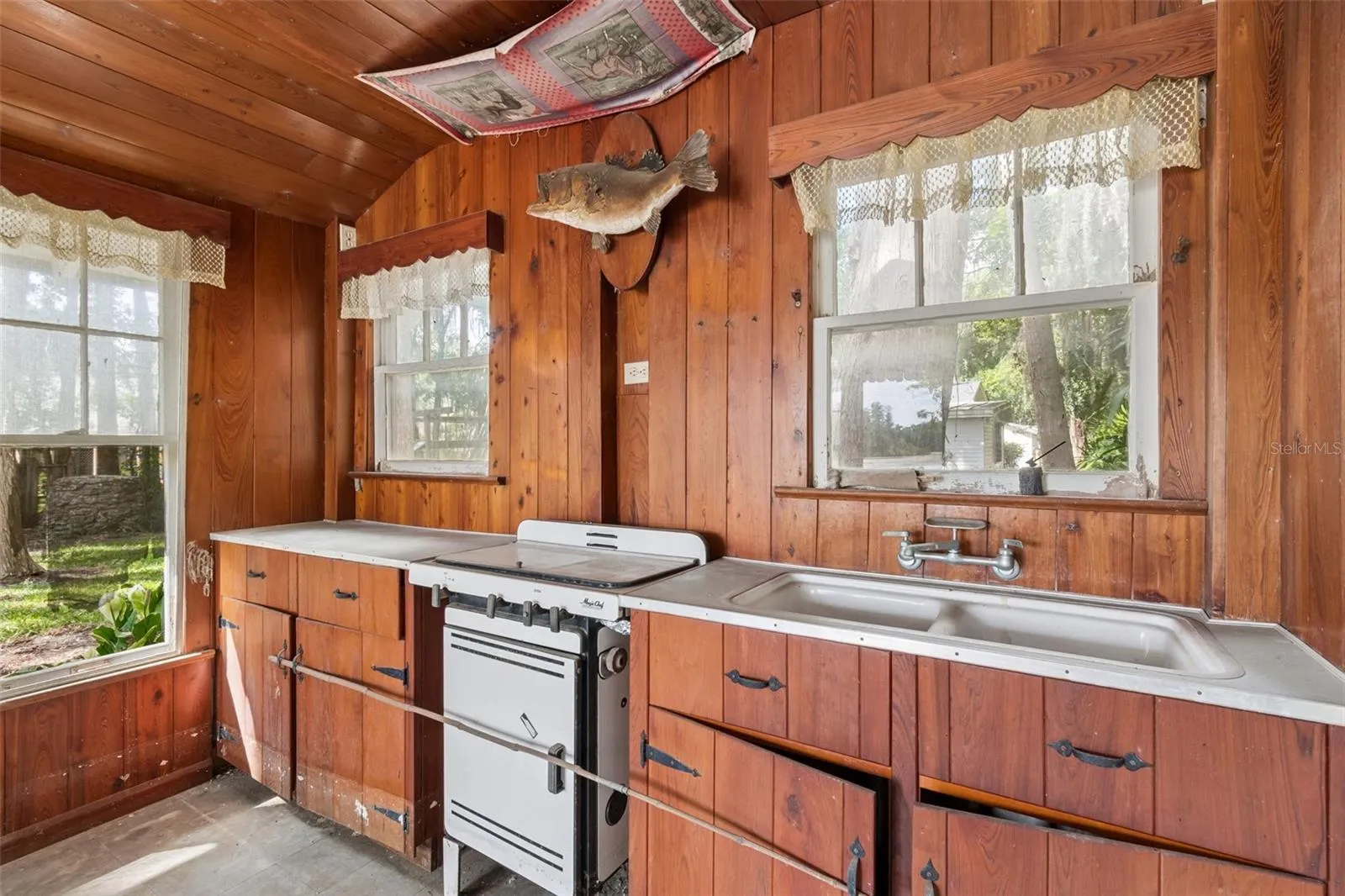 Discover the peaceful lakeside lifestyle on this 1.49-acre private lot, among the Cypress Trees, held by the same family since 1960. This 1-bedroom, 1-bathroom 1005 Sq. Ft. home exudes mid-century charm with original wood floors and a spacious kitchen featuring ample counterspace. While the home is move-in ready, it is a prime candidate for updates to bring its 1960s character back to life. A creative vision may see a tear down and new construction. Enjoy breathtaking sunset views from your private dock and lakefront fish house. Gather around the fire pit and live with nature. With three outbuildings, there is plenty of storage. This location is just just minutes from Heritage Recreation Center. schools and local dining. This property perfectly blends peaceful nature with suburban convenience. Motorized vessels are welcome!