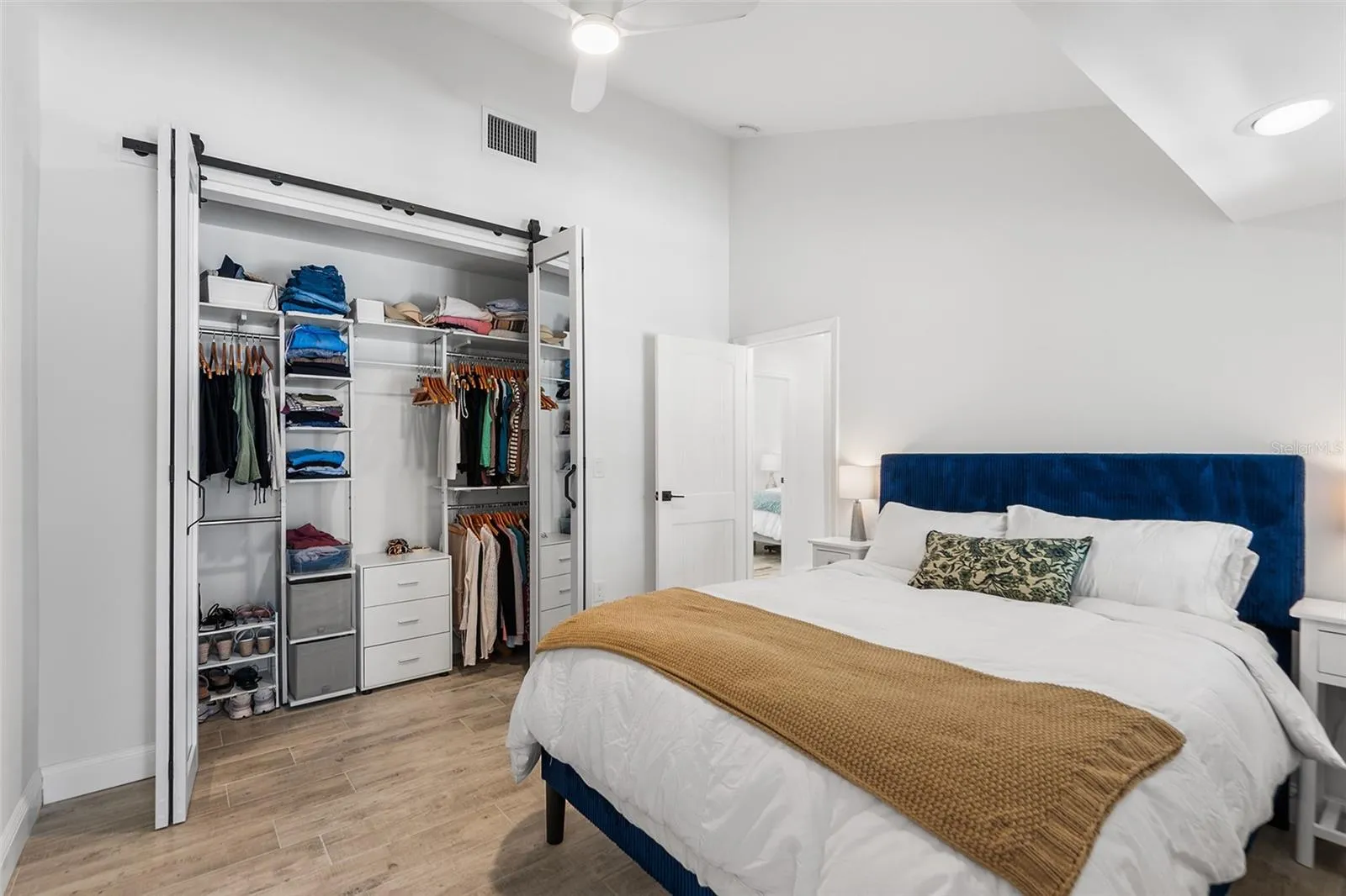 - Ceiling Fans(s), Open Floorplan, Thermostat, Walk-In Closet(s), Primary Bedroom Main Floor, Stone Counters, Solid Wood Cabinets