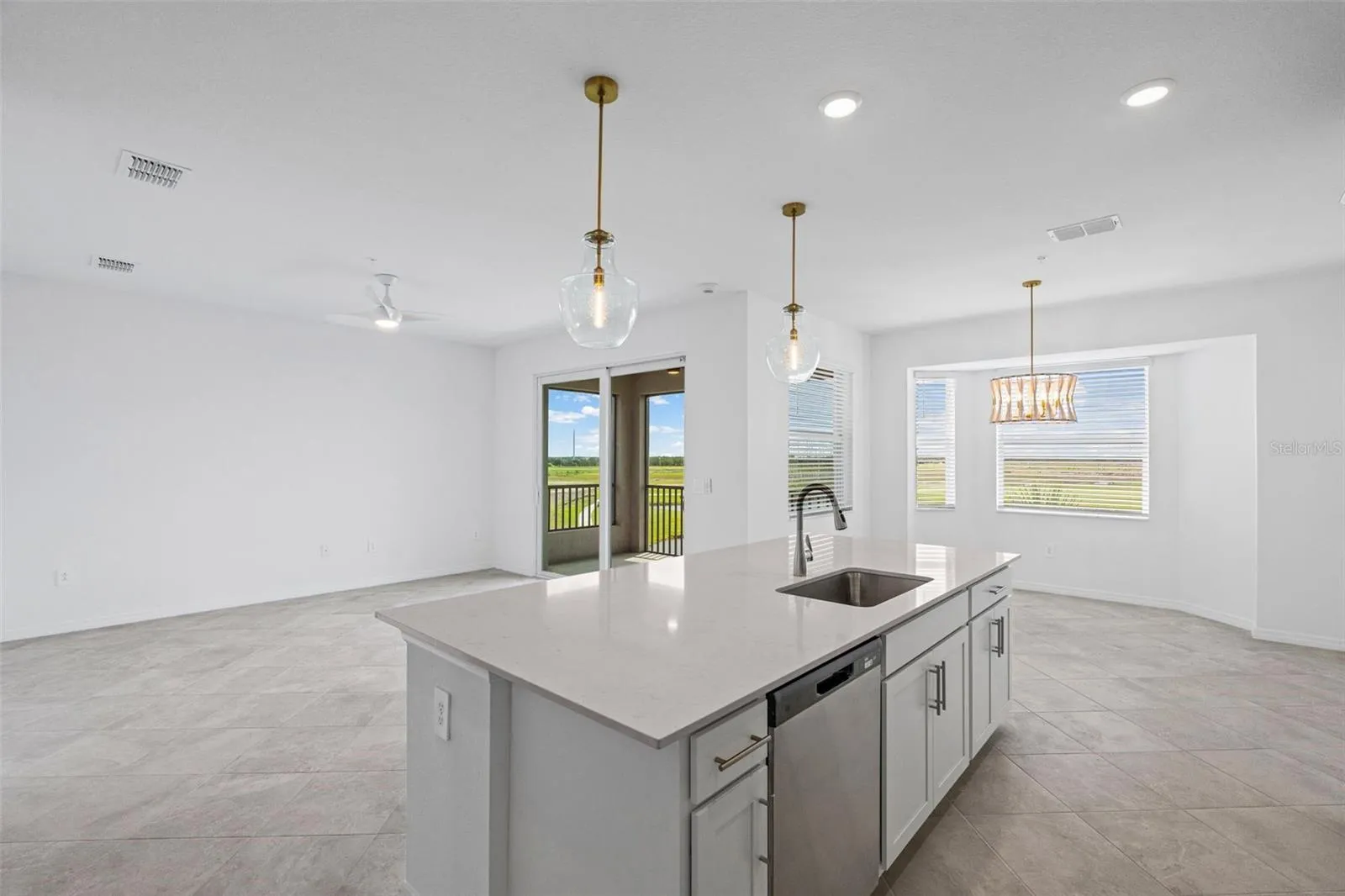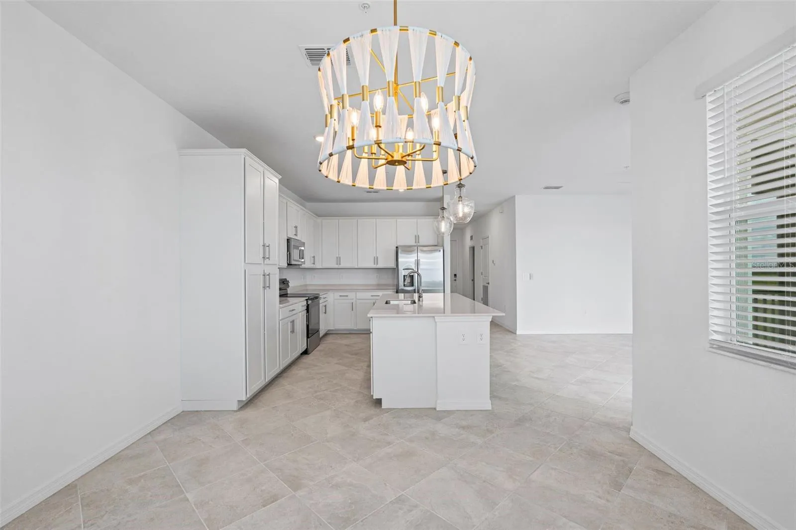 - Ceiling Fans(s), Elevator, Open Floorplan, Thermostat, Eat-in Kitchen, Kitchen/Family Room Combo, Split Bedroom, Window Treatments, Stone Counters, Solid Surface Counters
