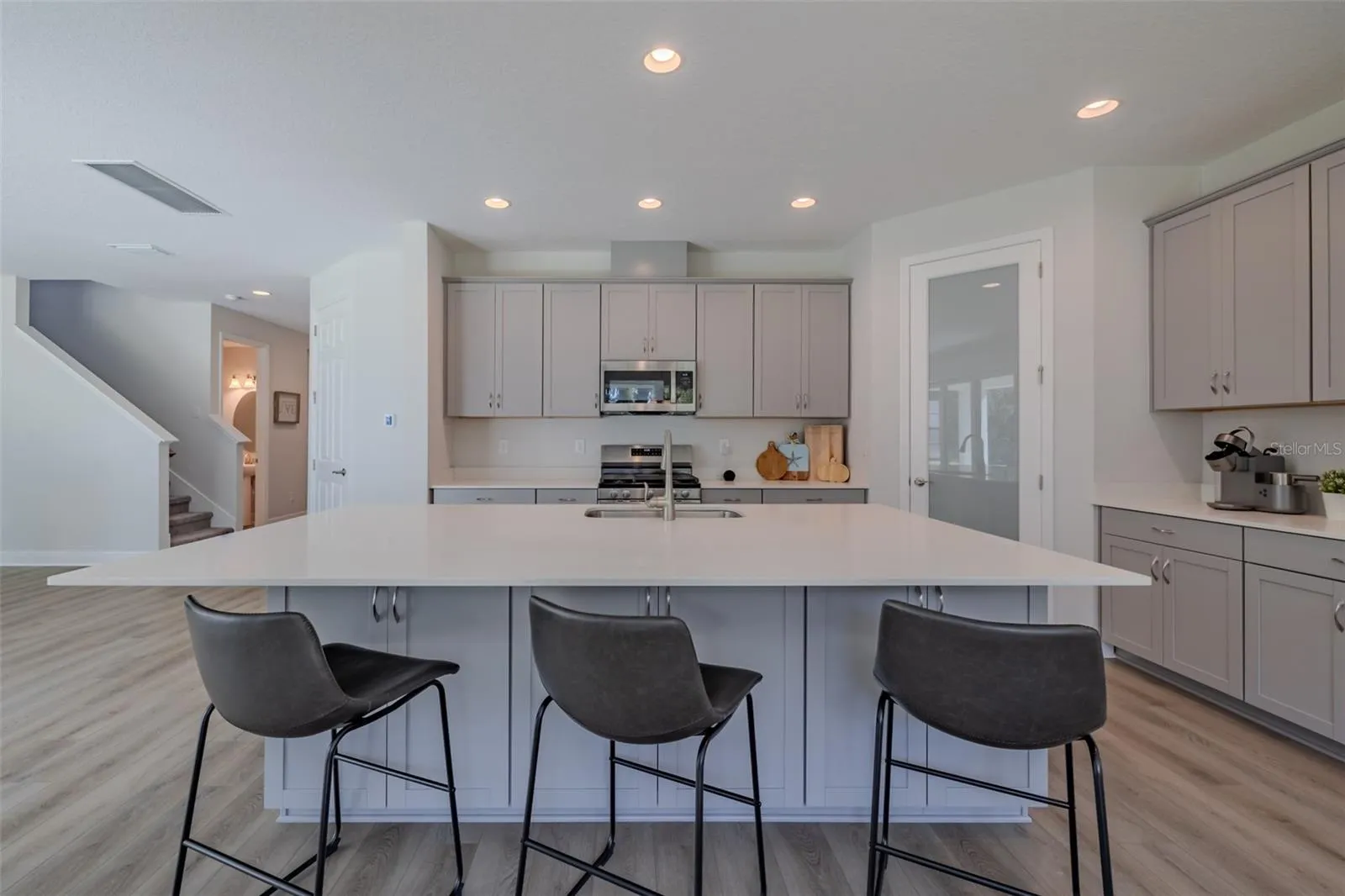Welcome to this 4 bedroom 2.5 bath home located in Hawkstone! Built by Westbay, the Kingfisher model offers an open floor plan and very little wasted space! The kitchen is designed for entertaining, featuring 42 in shaker cabinetry, quartz countertops, stainless steel appliances, including a gas range and a walk in pantry with a frosted glass door. The expansive island offers plenty of room for gathering, under counter cabinets, and a bar top for casual dining. The kitchen flows in to the dining area that is surrounded by windows overlooking the back yard. The living room is open & airy offering plenty of natural light from the quadruple glass sliders! The large office/den features glass French doors, plantation shutters and a closet with a large storage area. You will also find a powder room on the first floor. The second floor is home to 3 spacious bedrooms, a full bathroom and the convenience of a large laundry room with a storage closet. There is an open loft area that is loaded with endless possibilities. This room is waiting for you to customize to your needs. The large owner’s suite offers you a peaceful conservation and pond view. The En-Suite features a soaking tub, dual sinks, an oversized shower and a large walk-in closet. The lanai is the perfect spot for your morning coffee or evening cocktail. The backyard is large enough to add a pool. Hawkstone is a master-planned community located in Lithia. Residents enjoy the best of both worlds with resort-style amenities while staying close to top-rated Lithia schools, nature preserves, and major roadways. You can enjoy the pet-friendly hiking trails at the 969-acre Triple Creek Nature Preserve, less than 2 miles south or the bicycle motocross at Triple Creek BMX, 1 mile south of Hawkstone. Why wait to build? This home is like new and ready for move in.