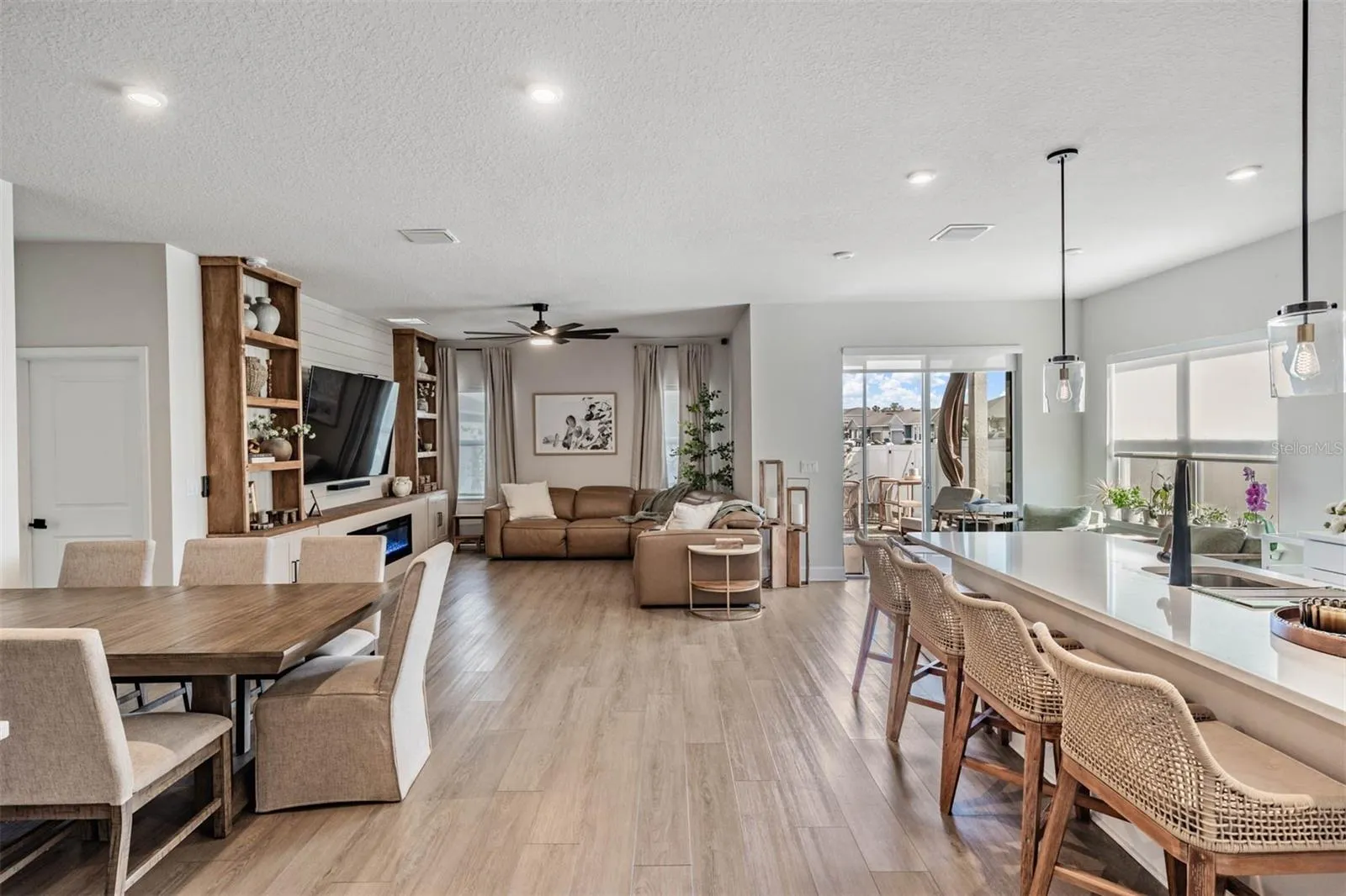 PARK MEADOWS Perfectly Upgraded home on a PREMIUM corner lot in Wesley Chapel, boasts Casual Elegance in this exceptional, move-in ready home, with ASSUMABLE LOAN 5.625% for qualifying buyers! Great Curb appeal with Stately design, Hip roof, Custom lighting, Lush landscaping, 8 Crepe Myrtles, widened driveway and brick PAVER walkway and front entry welcomes you! Beautifully designed Ryan Home, single-story residence features 4 bedrooms, 2 bathrooms, and 2,017 square feet of thoughtfully crafted living space. The sought-after Panama floor plan offers a functional three-way split-bedroom layout and open-concept design that connects the spacious great room, dining area and kitchen—ideal for living and for entertaining family & friends. The gourmet kitchen is the HUB of the home showcasing a stunning CENTER ISLAND with Quartz top & pendant lites, built-in double wall ovens, drop in smooth-top cooktop, 42-inch white cabinets, quartz countertops, Samsung French door refrigerator with computer screen front and a stylish subway tile backsplash, plus a custom coffee bar for added charm and convenience. Durable and attractive LVP flooring flows throughout the residence. The primary suite provides a peaceful retreat at the rear of the home with a large window overlooking your private backyard. Bath ensuite offers dual sinks, huge walk in closet and large shower with a seat and floor to ceiling tile. Secondary bedrooms share a full bath at the front of the home on a separate wing for privacy. The fourth bedroom, currently set up as a private office, offers flexibility for working from home or additional living space. Inside, you’ll also find thoughtful upgrades including a custom mudroom organizer in the foyer, a built-in dining hutch and a stunning great room accent wall featuring shiplap, an electric fireplace, built-in bookshelves and added storage cabinets. Bedroom 2 features its own shiplap accent wall and is perfectly suited as a nursery or guest room. Interior Laundry room with extra storage cabinets..Washer and Dryer do not convey. Extend your entertaining and relaxing space outside to enjoy Florida living at its finest, with sliding glass doors to a covered lanai & fully fenced backyard. Inviting Backyard Oasis with paver deck, BBQ gazebo, additional covered dining gazebo, raised garden beds, & double gates on the privacy fence for added accessibility. Upgraded Ceiling fans in all rooms, upgraded lighting throughout, Aroma 360 tied to AC offers purified air scent, closet organizer systems, whole house water softener, epoxy finish on 2 car garage floor & pull down attic stair access. Located in a highly desirable CDD-free community, residents enjoy resort-style amenities including a pool, cabana, dog park, and open green spaces. Ideally positioned off Old Pasco Road directly across from Cypress Creek Middle & High School, this location offers easy access to I-75 and Overpass Road entrance, for easy commute throughout the Tampa Bay area. Just minutes from The Grove, the Krate, Dueling Pianos, Pop Stroke, Premium outlets & Wiregrass Mall in Wesley Chapel, offering popular restaurants, shopping & entertainment, as well as nearby outdoor recreation at Wesley Chapel District Park. With over $30,000 in modern upgrades, functional layout and prime location near top-rated schools, shopping, dining and major highways, this home is an outstanding opportunity for buyers seeking the perfect blend of lifestyle and location in Wesley Chapel! CALL TODAY!