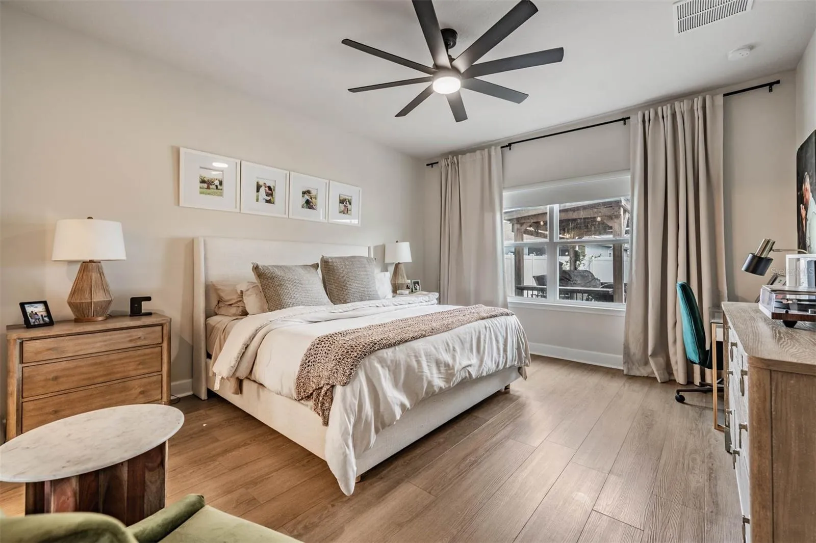 - Ceiling Fans(s), Open Floorplan, Thermostat, Walk-In Closet(s), Eat-in Kitchen, Split Bedroom, Window Treatments, High Ceilings, Stone Counters, Solid Wood Cabinets