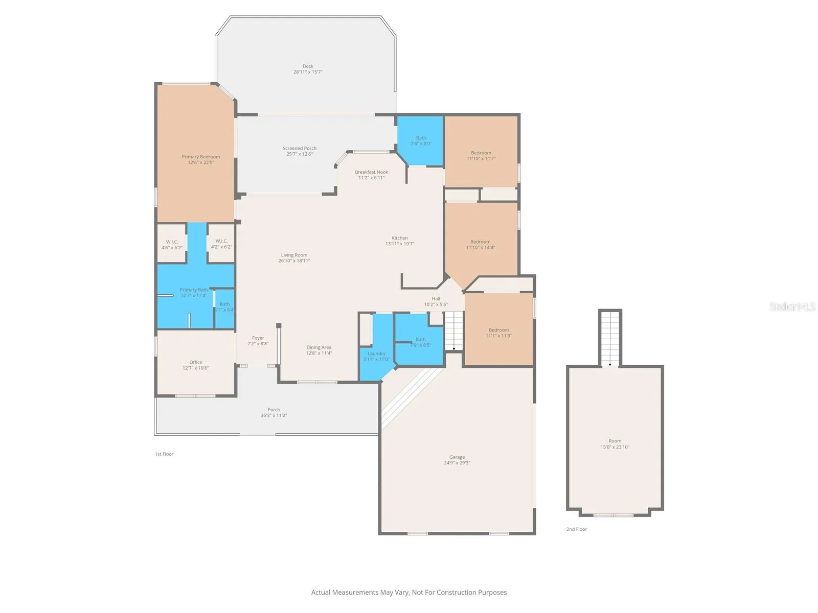 Bonus/5th: The upstairs Bonus Room, currently used as a 5th Bedroom, offers versatile space for a Media Room, Office/Den, playroom, or more. A dedicated Office/Den is just inside the front door and includes windows on two walls for great natural light, double doors, and a ceiling fan.