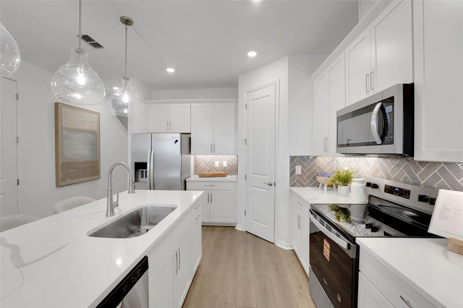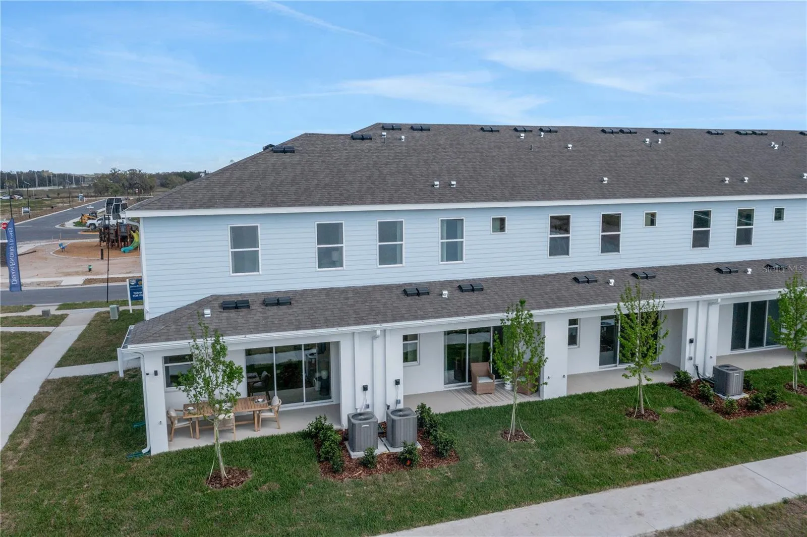 One or more photo(s) has been virtually staged. Welcome to this brand new Dream Finders townhome gated community, part of Mirada Metro Lagoons! This home, completed in March 2026, features all new appliances including washer/dryer, dishwasher, refrigerator, microwave. The view from your sliding door leading to the covered lanai is going to be facing a newly constructed pond (will be filled soon). UltraFi, cable, lawn care, and lagoon access are all included, tenant only needs to set up water and electric. There is an attached, epoxied one-car garage with door opener. Directly across the street is a playground, pickleball court, and tennis court. There is also ample guest parking nearby. All shops and the highly anticipated Double Branch downtown are all 5 minutes away. This unit is smoke-free. 1 year lease required with option to renew.