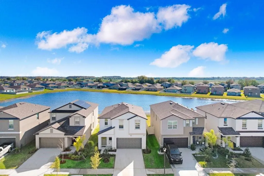 **RENT INCLUDES LAWN SERVICE & USE OF RESORT STYLE POOL IN WALKING DISTANCE TO HOUSE!!** This beautiful 4 bedroom, 2.5 bathroom, 2 car garage home in the vibrant community of Berry Bay is NEARLY NEW (just built in November 2022) and has a BRAND NEW Luxury Vinyl staircase & BRAND NEW LVP flooring throughout the upstairs (no carpet at all!) As you approach, a charming front porch extends a warm welcome. Step through the foyer, and your gaze is immediately captivated by soaring ceilings, creating an expansive ambiance that opens to the second floor. A hallway just beyond leads you to the open concept & oversized living room, dining room, and kitchen, with the spacious kitchen overlooking a roomy formal dining area. Your modern kitchen includes gorgeous granite counters, a stainless steel single bowl sink, all stainless appliances, flush mount LED lighting, dedicated corner pantry, and plenty of cabinet and counter space. A counter height breakfast bar on the island offers additional seating, ideal for casual dining or entertaining. Sliders just off the dining room lead to your HUGE backyard overlooking a large peaceful pond, and a small patio with overhang, perfect for peaceful relaxation at the end of your day. A convenient half bath for guests is also located on the first floor, and the entire first floor includes ceramic tile flooring throughout. Upstairs, a versatile loft provides the perfect flex space for a home office, study area, fitness room, or cozy den. Just beyond, the spacious Primary Suite offers peaceful views of the backyard and tranquil pond, creating a relaxing retreat. The en-suite bath features a granite-topped dual-sink vanity, walk-in shower, private water closet, and a generously sized walk-in closet. Down the hall, you’ll find three ample-sized secondary bedrooms and a full bathroom with an oversized granite vanity. For added convenience, the second-floor laundry room – complete with washer and dryer – is located just across the hall, making everyday living effortless. No need to worry about mowing – rent INCLUDES lawn service as well as basic pest control! The idyllic Berry Bay community offers a large resort-style swimming pool, clubhouse, pickleball & basketball courts, playground, picnic area, and dog park. Conveniently located just off of US-301 with easy access to Sun City Center Blvd, Big Bend, and I-75. Close to hospitals, shopping, restaurants & entertainment, and less than a 15 minute drive to the Moccasin Wallow corridor/North River Ranch area in Parrish – one of the area’s newest hotspots for dining, shopping, and entertainment. At time of move-in, a $125 tenant processing fee will be due along with any rent and deposit(s).
