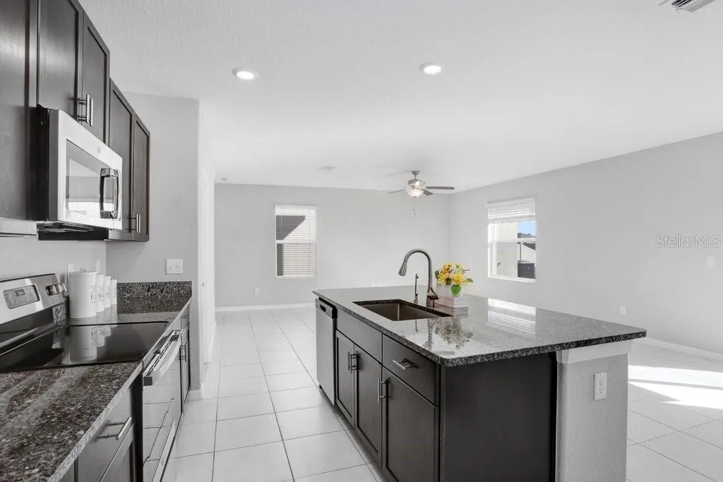 - Ceiling Fans(s), Open Floorplan, Thermostat, Walk-In Closet(s), Living Room/Dining Room Combo, Eat-in Kitchen, Kitchen/Family Room Combo, High Ceilings, Stone Counters, In Wall Pest System, PrimaryBedroom Upstairs