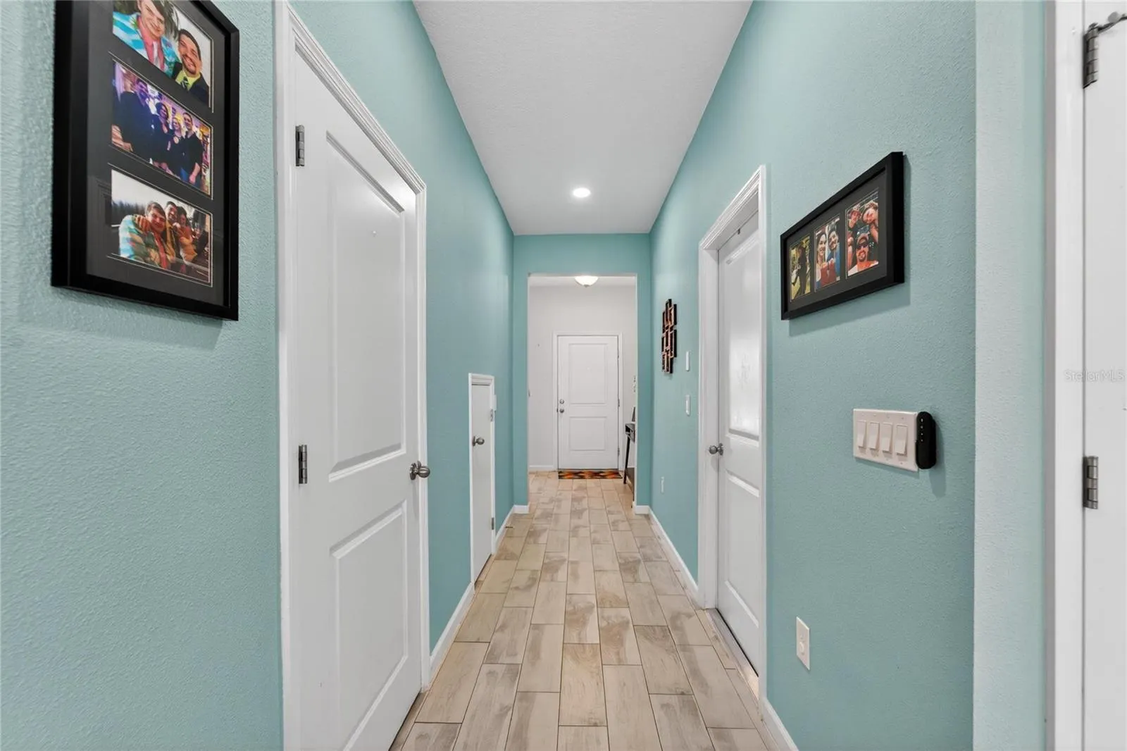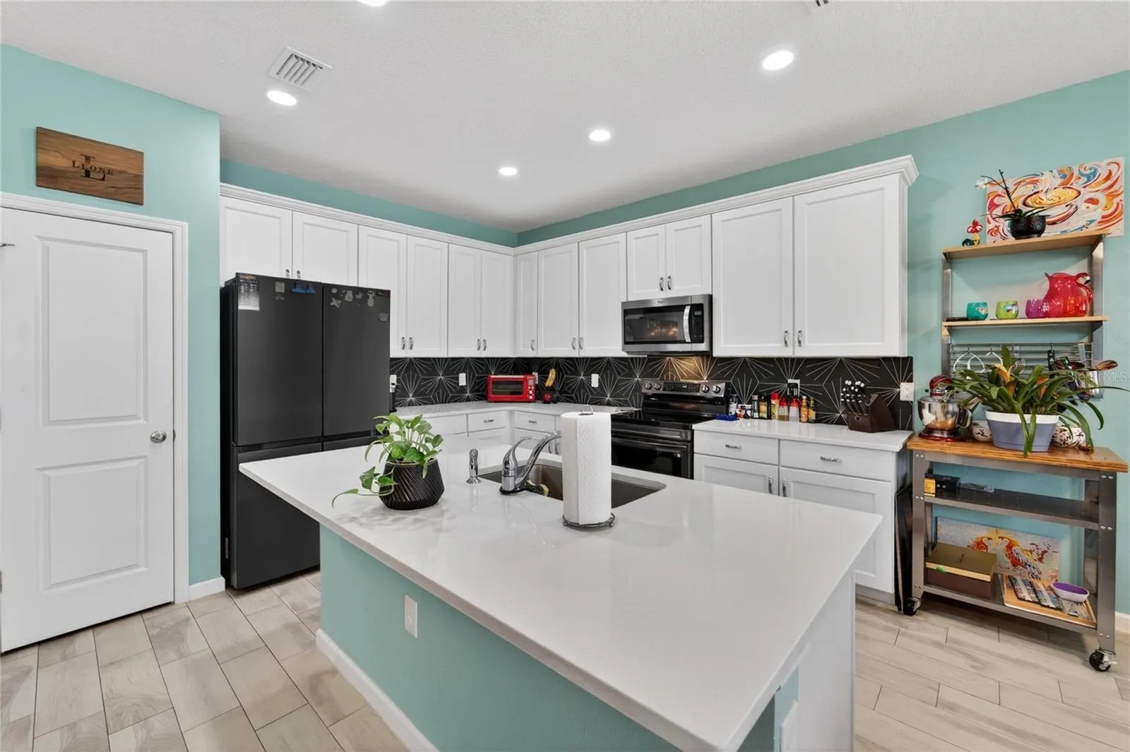 This bright and tastefully updated 3-bedroom, 2.5 bath townhome is located in the Riverview community of Calusa Creek. This home boasts beautiful wood-look tile flooring through-out the first floor, recessed lighting and modern fixtures, powder room with updated vanity, extra storage closet extending deep under the stairs, which also makes for a perfect space to be creative with. In the kitchen you will find gleaming quartz countertops, a stylishly tiled backsplash, large kitchen island, deep stainless-steel sink, and modern stainless-steel appliances. Located upstairs, the private owner’s retreat comes with a large walk-in closet, an en-suite with a dual-sink vanity, gleaming granite countertop, and an elegantly tiled walk-in shower. Down the hall is a loft space, a second full bathroom with matching granite countertop, and 2 additional spacious bedrooms. Laundry is also conveniently located upstairs. The charming curb appeal, low maintenance landscaping, screened-in lanai with pond views, and community pool provide for easy living and more relaxing family time. Calusa Creek is conveniently located near major commuter routes, schools, local shopping, and restaurants.