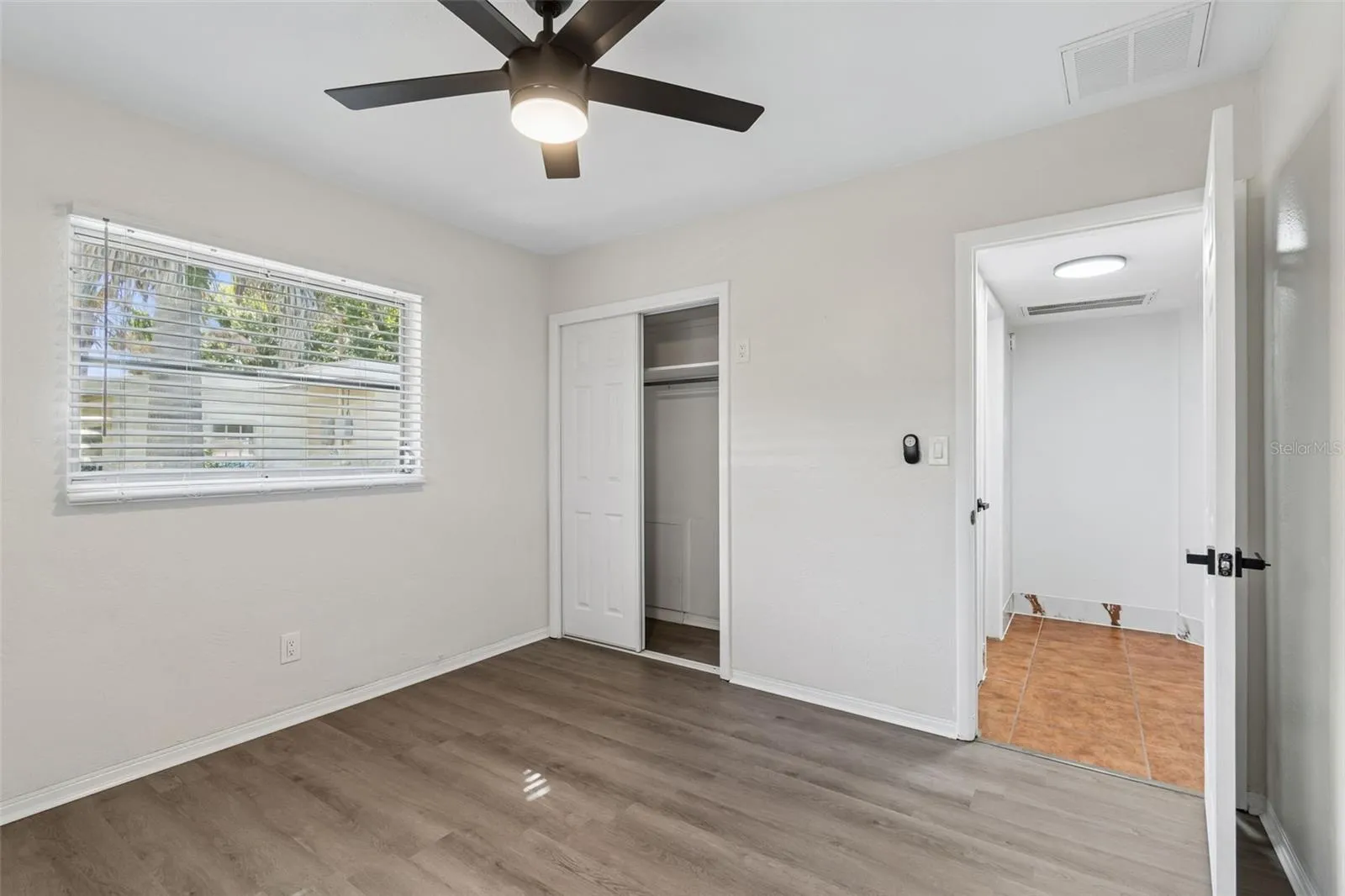 - Ceiling Fans(s), Thermostat, Living Room/Dining Room Combo, Primary Bedroom Main Floor, Stone Counters, Solid Wood Cabinets