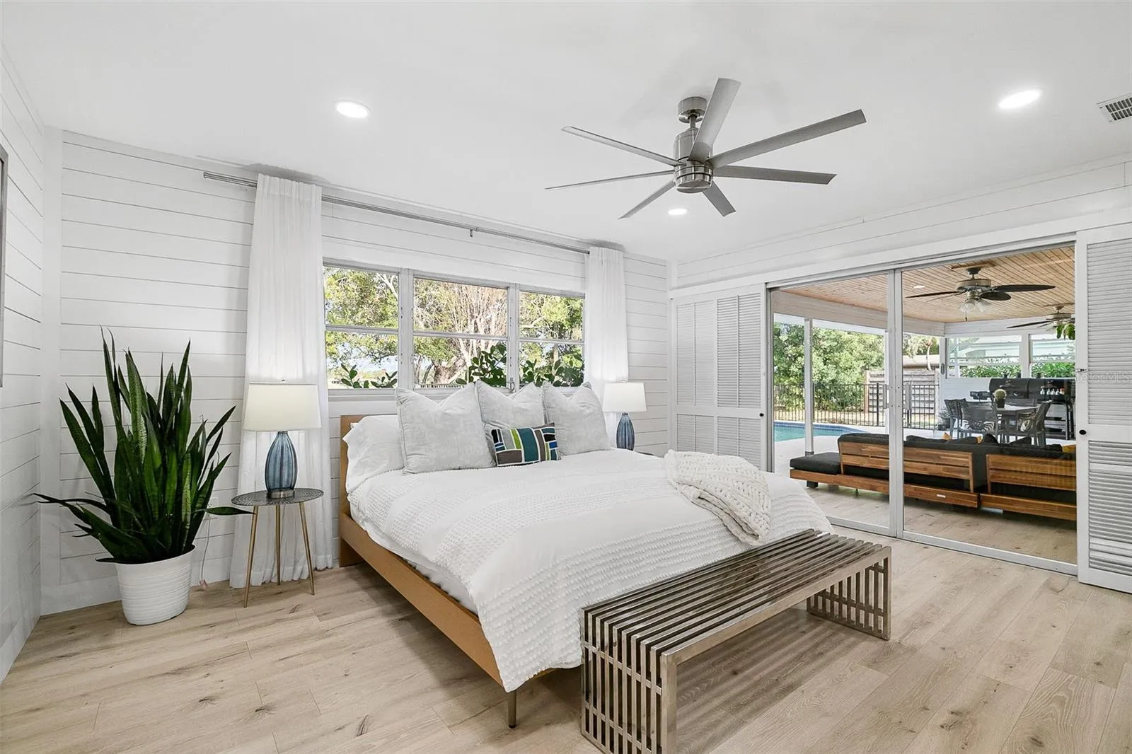 This completely remodeled home over 375k spent up to an exceptional standard with expansive views of Sara Bay Golf Club. The home sits on a .38-acre lot and has a large completely enclosed swimming pool. Outdoor entertaining is a breeze with the indoor-outdoor patio accessed through expansive sliding doors. The kitchen designed for the chef of the family has stainless steel appliances along with Cambria quartz countertops with waterfall edges. Adjacent to the chef’s kitchen is a separate wine and coffee area with built in wine fridge for your evening glass. The Primary bedroom features a huge his and hers closet along with a primary bathroom that has a soaking tub and dual outlet steam shower for your relaxation. The guest bedroom also has a contemporary feel along with walk in shower. All landscaping has been professionally installed and water for the exterior is fed from underground well water. There is also a new exterior shed for your belongings. The roof was replaced in 2023 and the attic completely insulated with closed cell foam insulation in the roof. Quick and easy access to Lido Beach, St. Armands Circle and downtown Sarasota, with UTC, Longboat Key and Anna Maria Island close by as well! Only one mile to Sarasota Bay but not in flood zone (Zone X). This house must be seen it will not disappoint. Bedroom Closet Type: Walk-in Closet