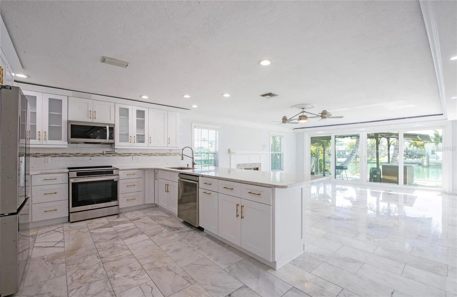 Sailboat water and over 2,400 square feet of living space in desirable Madeira Beach! This spacious waterfront home features three full bedrooms, each with its own private ensuite bathroom, and a desirable split floor plan for added privacy. The primary suite offers a walk-in closet and beautiful water views, creating a relaxing retreat. The open and airy layout is perfect for entertaining, with floor-to-ceiling water views from all main living areas, allowing you to enjoy the waterfront lifestyle from nearly every room. A formal dining room showcases a unique built-in stone dining table with seating for up to 12—ideal for hosting family gatherings and special occasions. Step outside and take advantage of true sailboat water access, complete with a 20,000-pound boat lift included, making this property perfect for boating enthusiasts. Enjoy the best of Florida waterfront living with space, comfort, and direct access to the open water. AC 2025 and Roof 2015.