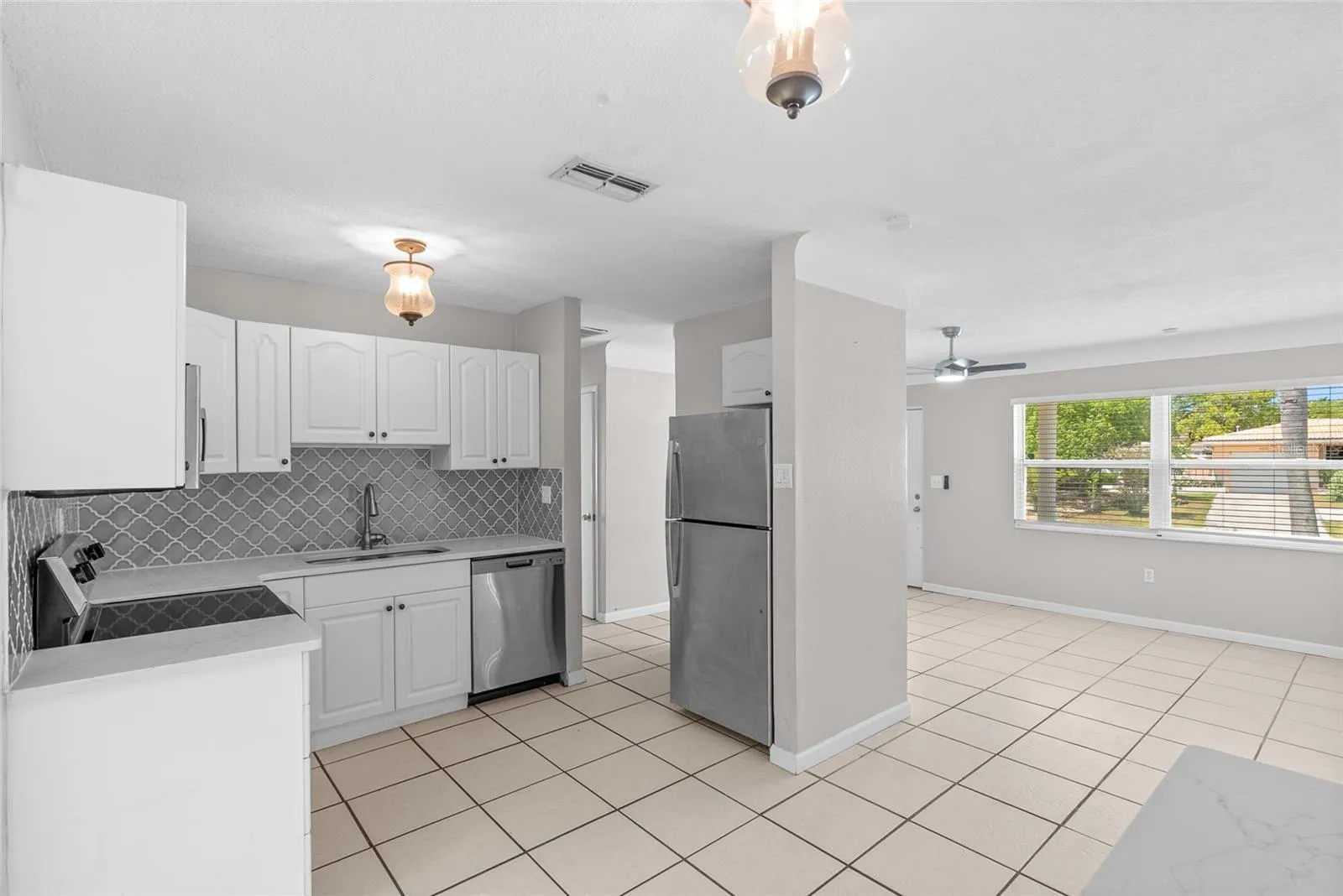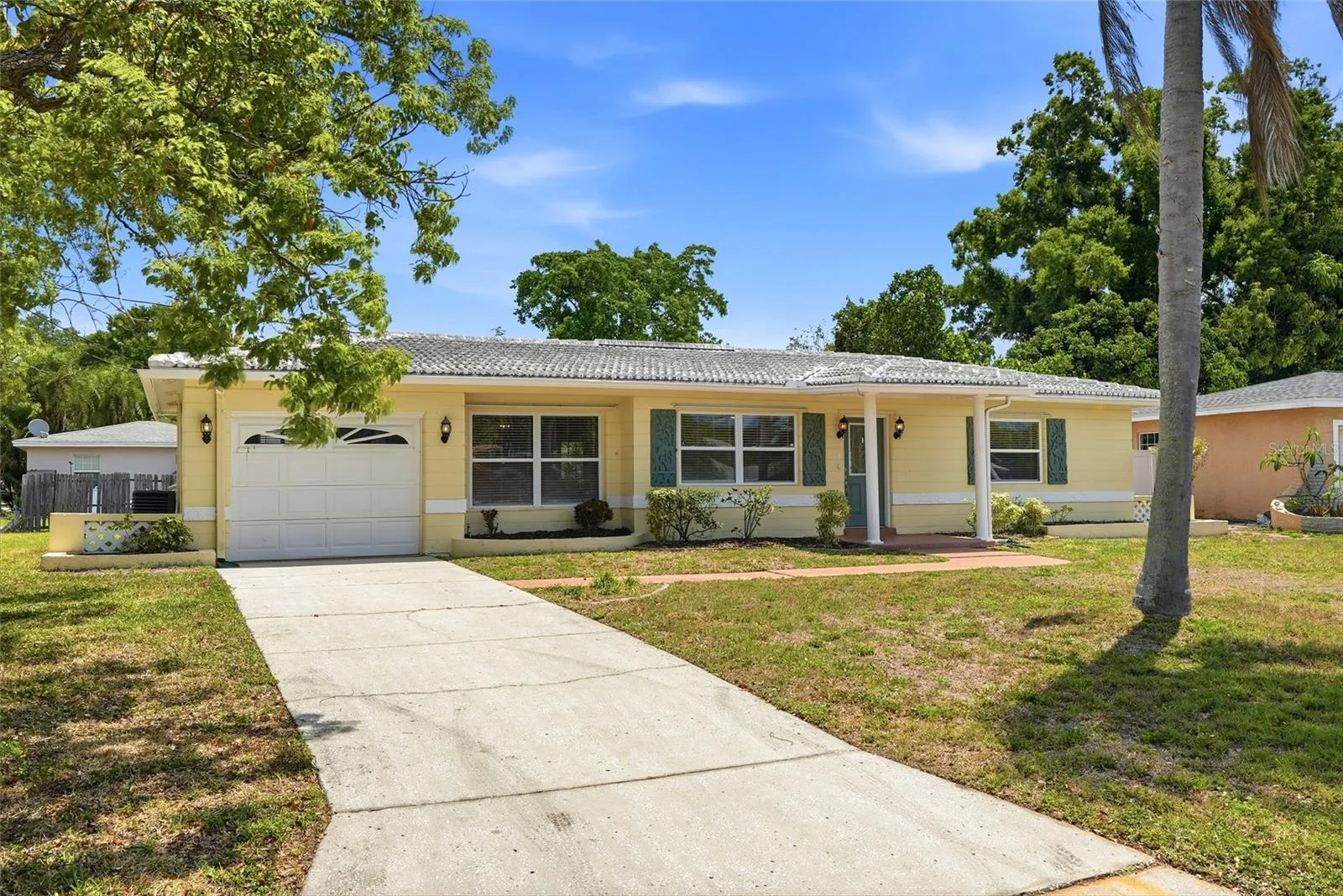 Charming two bedroom, one bath home with an attached one car garage, set on a generously sized beautifully landscaped lot. The home has been thoughtfully updated with newer windows and a refreshed kitchen featuring custom white cabinetry, stone countertops and stainless steel appliances. Bright and functional layout with a versatile bonus room off the living area ideal for a family room, home office or flex space. Interior has plenty of natural light. Well maintained and move-in ready for immediate occupancy. Enjoy the outdoors year-round from the spacious screened patio, perfect for relaxing or entertaining while enjoying the large backyard perfect for BBQs and gatherings. Conveniently located in a quiet friendly neighborhood near shopping, dining and schools, with an easy drive to the Gulf Beaches and Downtown St Petersburg. Come and see this amazing home today and make it yours tomorrow!