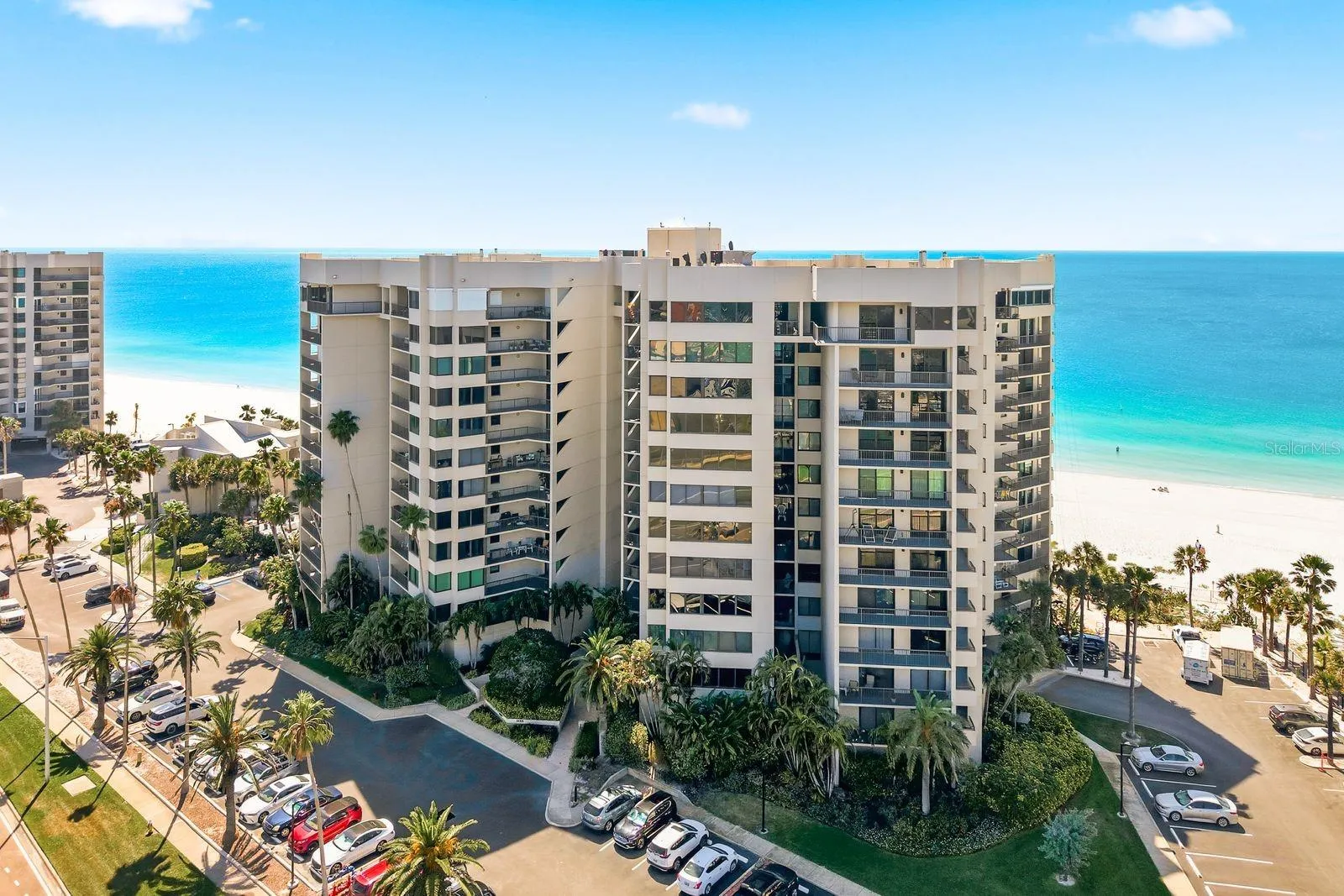 Welcome to coastal living at its finest — an exquisite beachfront condo nestled along the pristine shores of Sand Key, where the sugar sand meets the sparkling Gulf waters just steps from your door.