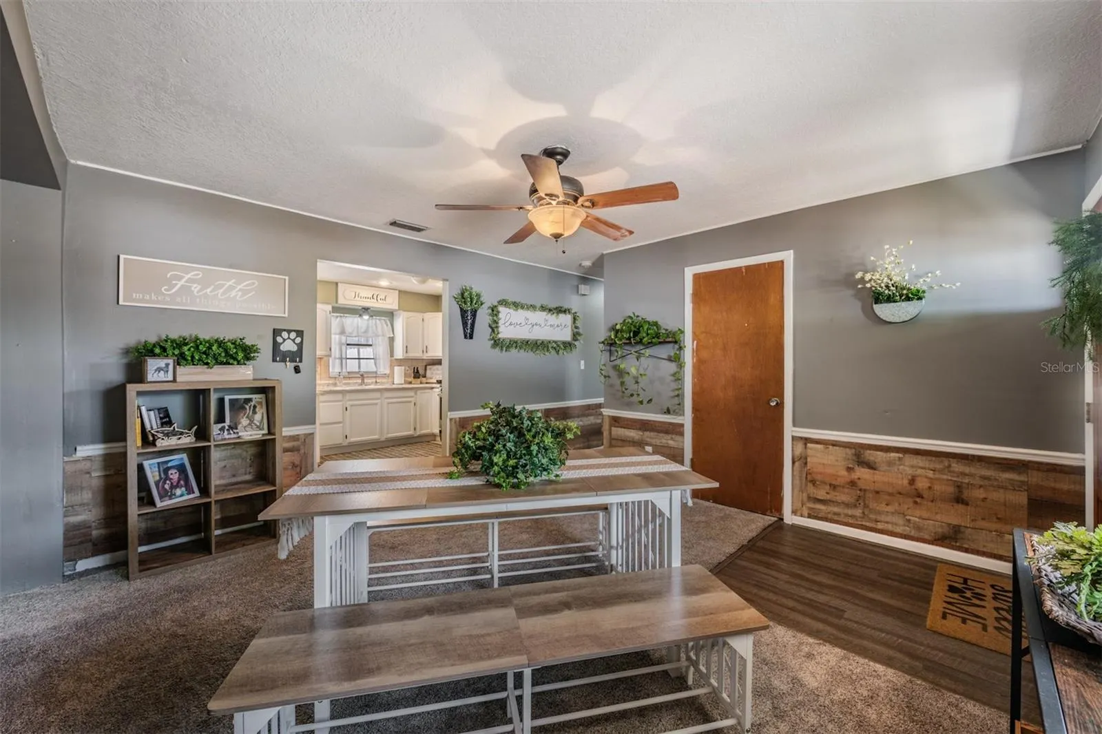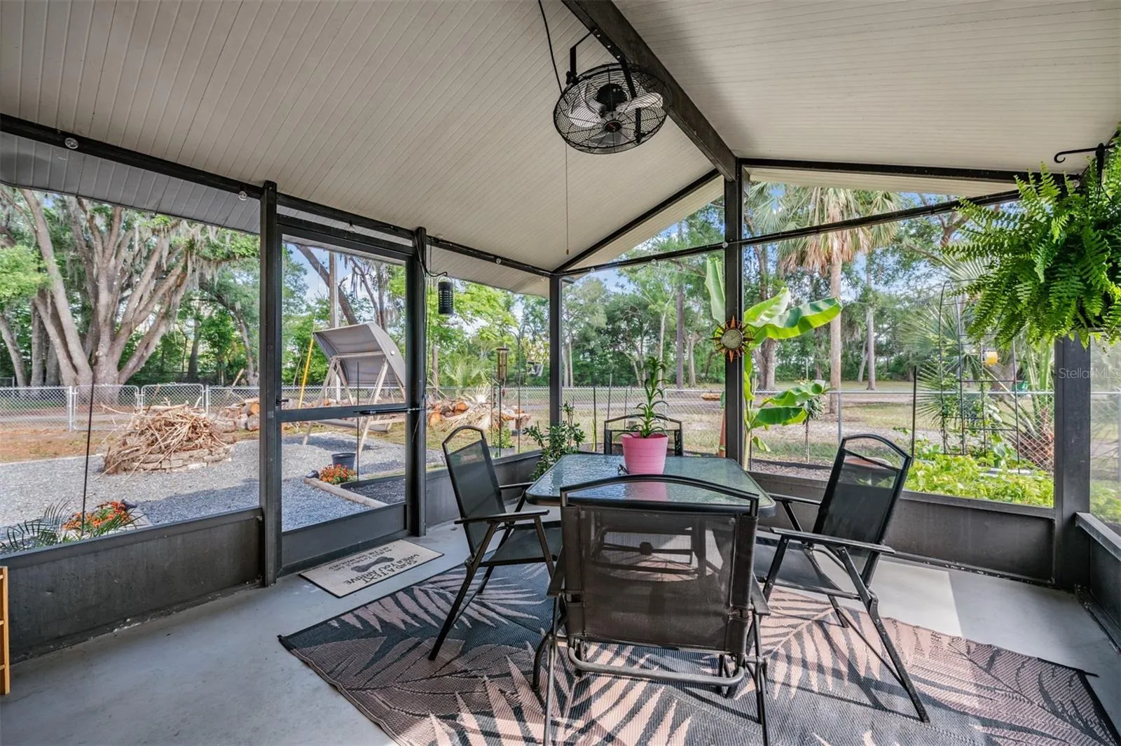 Welcome to a CHARMING, special, move-in-ready concrete block home that blends character, modern upgrades, and an unbeatable LOCATION in the heart of Zephyrhills! Situated on a generous .28-acre fenced lot directly across from Zephyrhills Depot Park, this property offers exceptional walkability to the charm of historic downtown, along with easy access to playgrounds, walking trails, and the local museum. Once inside the home, notice the remodeled interior featuring durable LVP flooring throughout the main living areas, tile in all wet spaces and the sunroom, and fresh interior paint that creates a bright, welcoming feel. The unique sunken living room flows into the open dining room, highlighted by a stylish shiplap accent wall—perfect for both relaxing and entertaining. The light, bright, kitchen is equally impressive, showcasing white cabinets, upgraded beveled-edge countertops, breakfast bar, stainless steel appliances, a convenient coffee bar and a reverse osmosis system for clean, filtered water. Cooking is a delight with a gas range fueled by an owned propane tank, paired with a gas water heater for efficiency. Comfort and peace of mind come standard with a $30,000 upgraded HVAC system complete with humidifier, air purifier, UV light, and all-new ductwork. Additional interior features include a glass screen/storm door, a functional interior laundry room with utility sink, window, stackable washer/dryer, and even an added commode for convenience. The home offers three spacious bedrooms and 1.5 baths… hall bath is updated with modern vanities, mirrors, and lighting. Just off the kitchen is the spacious, bright, ceramic tiled sunroom with glass windows, two A/C vents, and a cozy potbelly stove—providing year-round enjoyment and leads to a screened back porch with a soaring cathedral ceiling and Edison lighting for the perfect evening ambiance. Step outside and you’ll find your own private outdoor oasis. The expansive backyard is designed for enjoyment and relaxation, featuring raised garden beds, a cozy firepit, above-ground pool, bird baths, and charming swings. Covered carport adds convenience and with no CDD fees and no HOA restrictions, you’ll enjoy both freedom and affordability. This one-of-a-kind property offers the perfect combination of location, upgrades, and lifestyle—an opportunity you won’t want to miss… CALL TODAY!