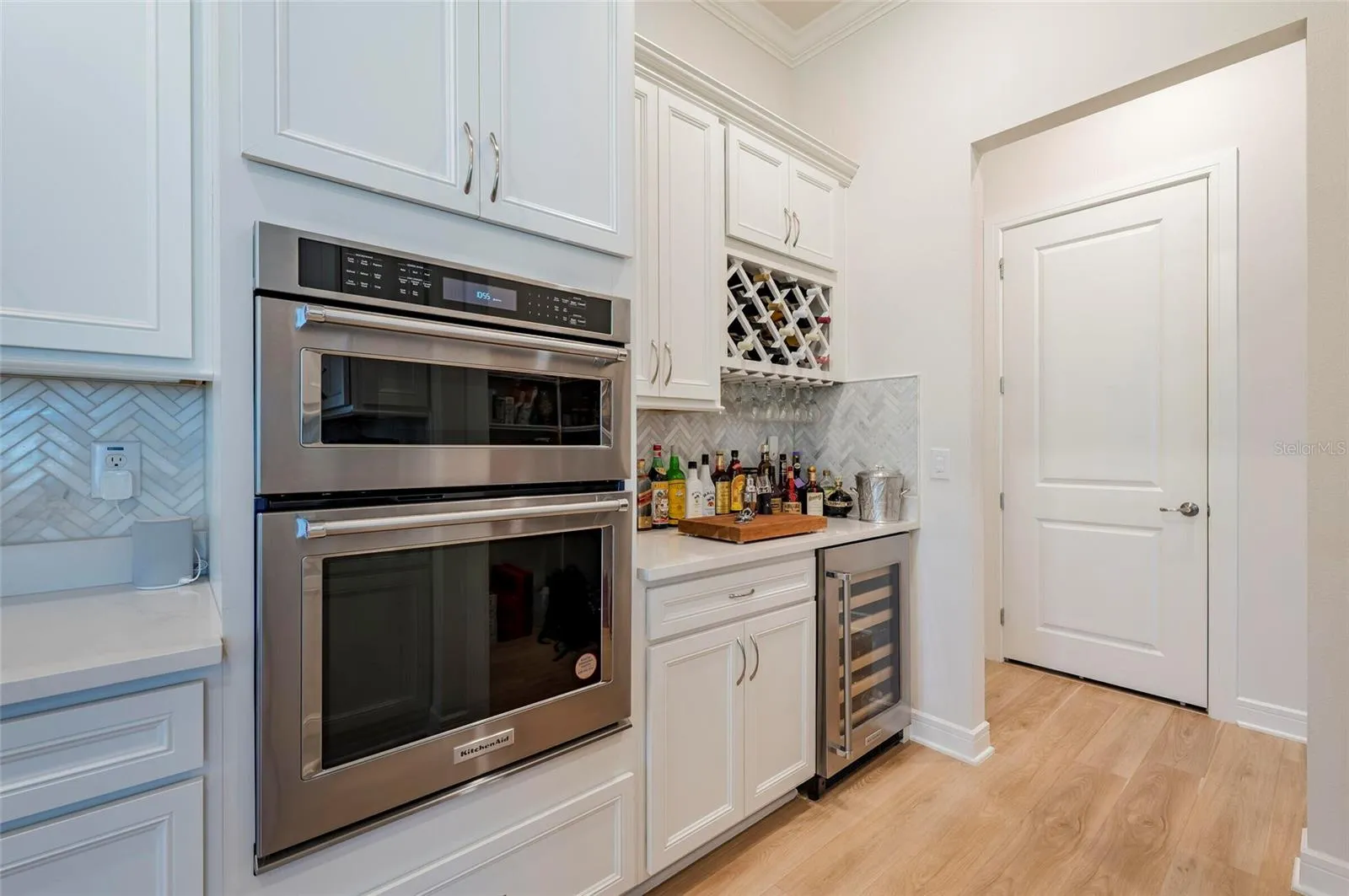 This gem of a home is powered by Synergy Florida’s Control4 advance ecosystem with theater-grade surround sound and motorized shades. A chef’s dream kitchen boasts a 10ft Silestone Quartz island, built in KitchenAid double-oven suite, microwave, and full-height herringbone backsplash, plus an upscale home bar with wine fridge.