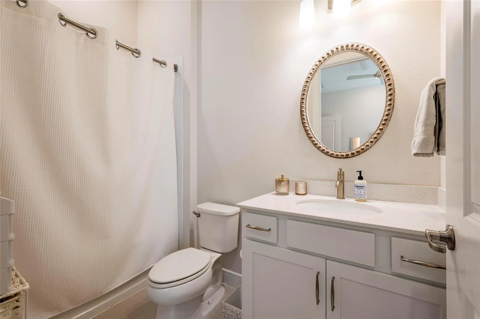 The Owner’s Suite presents a serene retreat featuring plantation shutters and TWO walk-in closets, including a custom dressing room and a secondary tech-hub closet. The master bath provides a zero-entry seamless glass shower. Two additional ensuite bedrooms both with walk-in closets. A versatile flex room with CAT6 ports provide ample space.