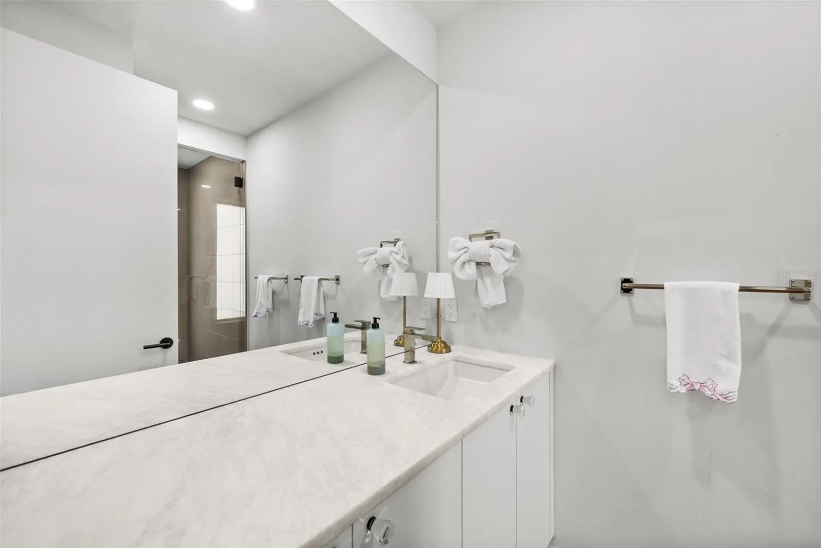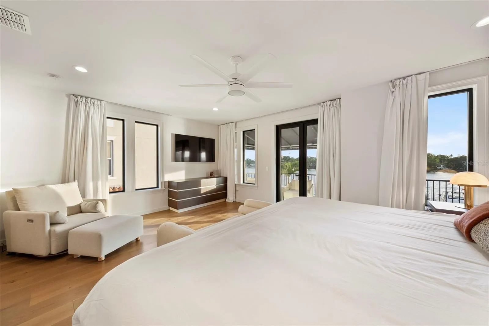 poolside lounging, and direct boating access. First floor includes a private guest suite or fitness room with adjacent full bath. Upstairs offers three additional bedrooms, three full baths, laundry