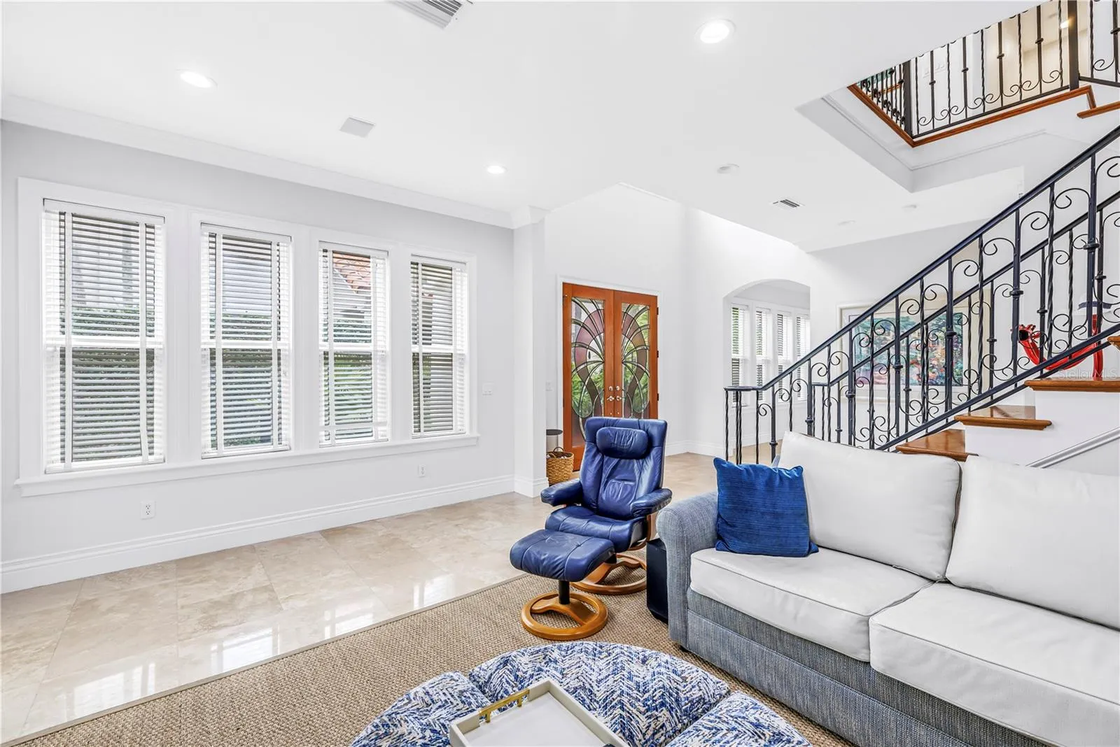 • Open & Elegant Interiors — Soaring ceilings, travertine and hardwood flooring throughout, abundant natural light, and an expansive open-concept living/kitchen/family area ideal for entertaining.