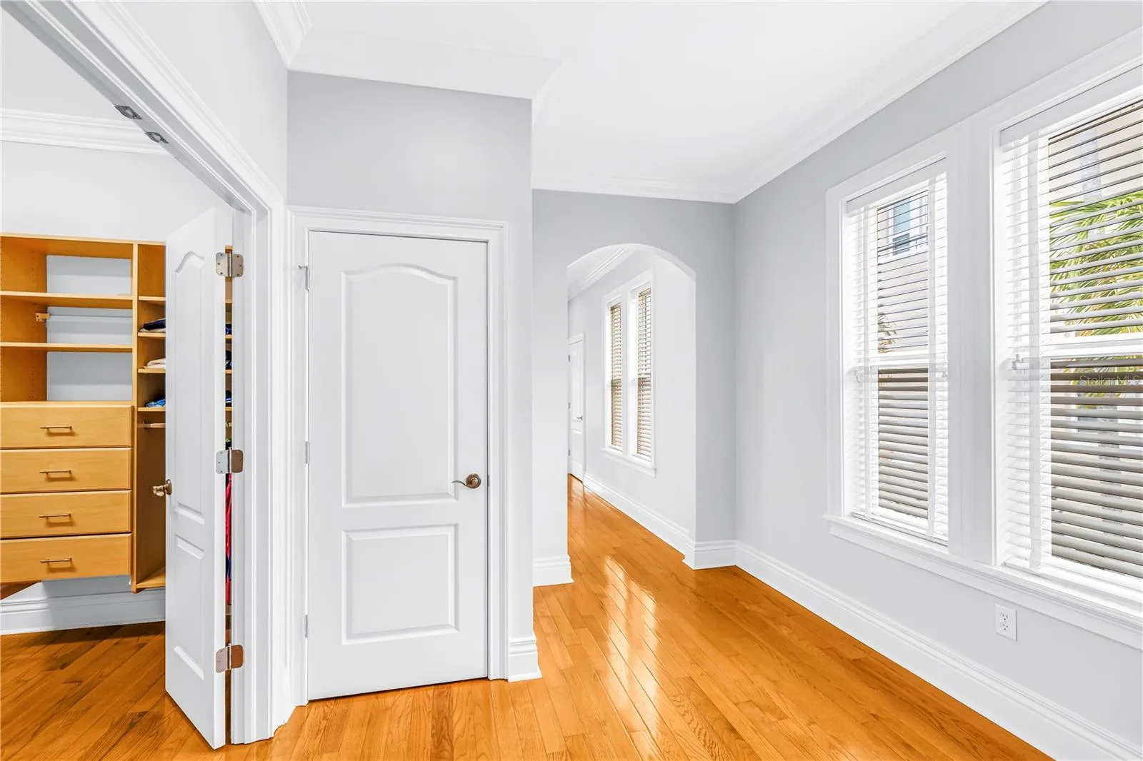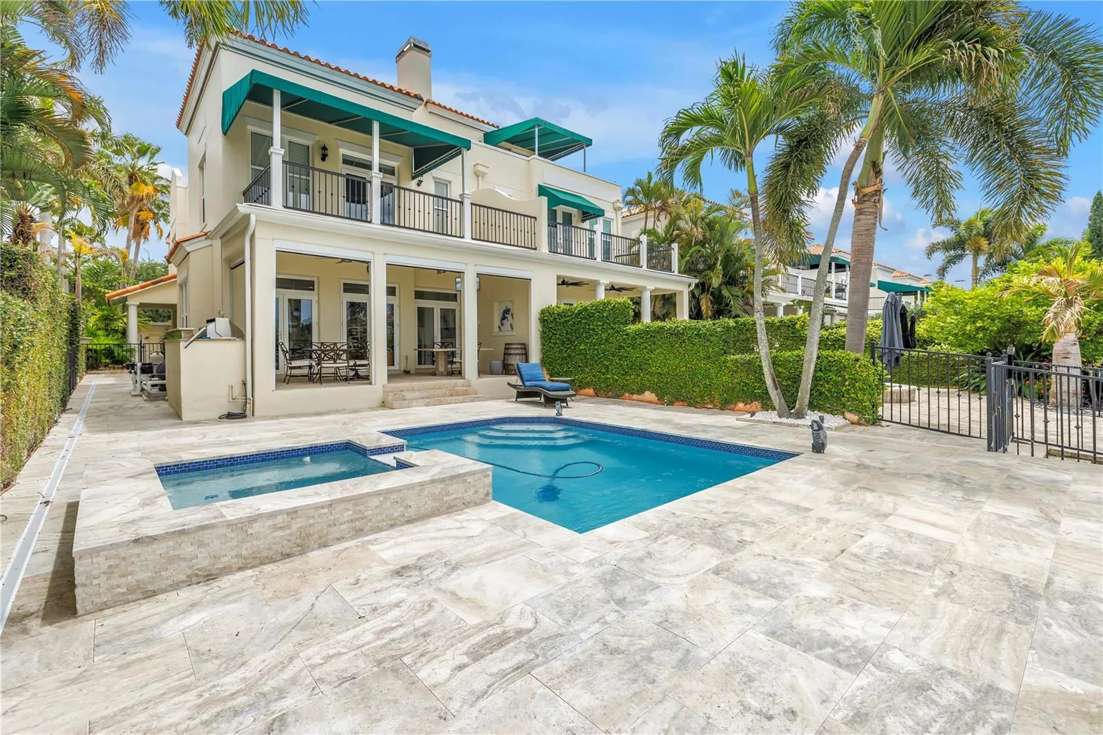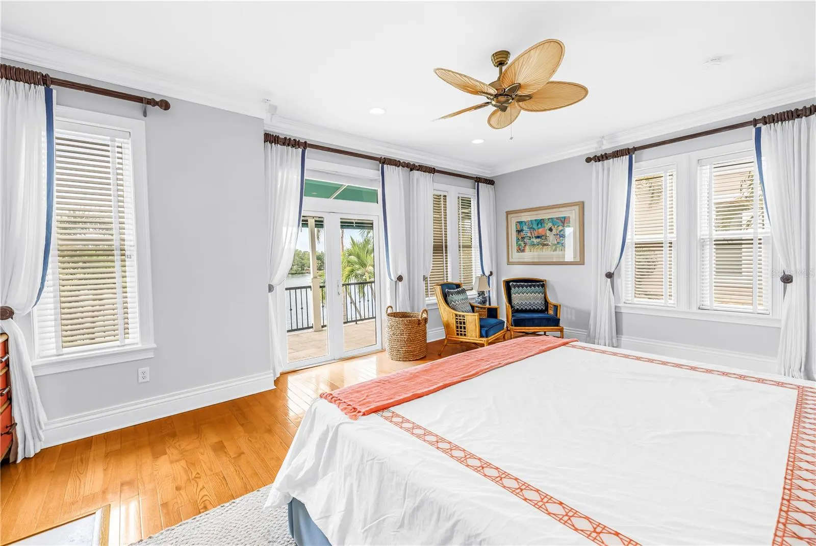• Luxurious Primary Suite — Second-floor primary bedroom with spa-like bath and generous walk-in closet a well as a large balcony overlooking the pool and water.